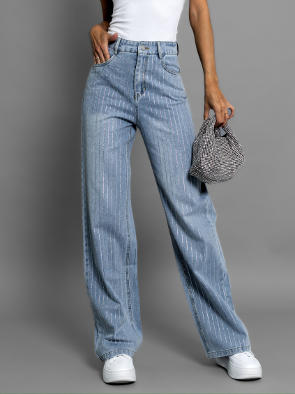 Modré trblietavé wide leg široké džínsy MIRKO s kamienkami