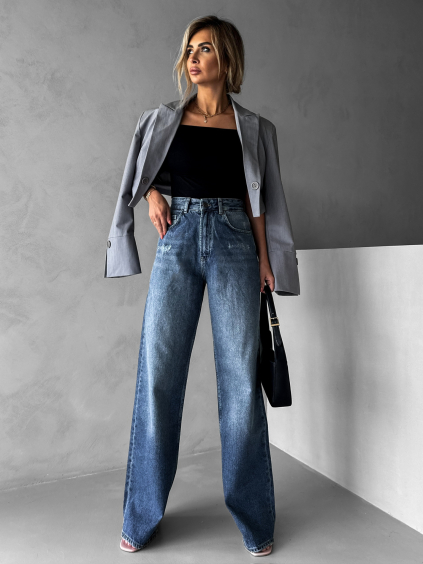Modré široké wide leg džínsy EVALOTTA s prehybom