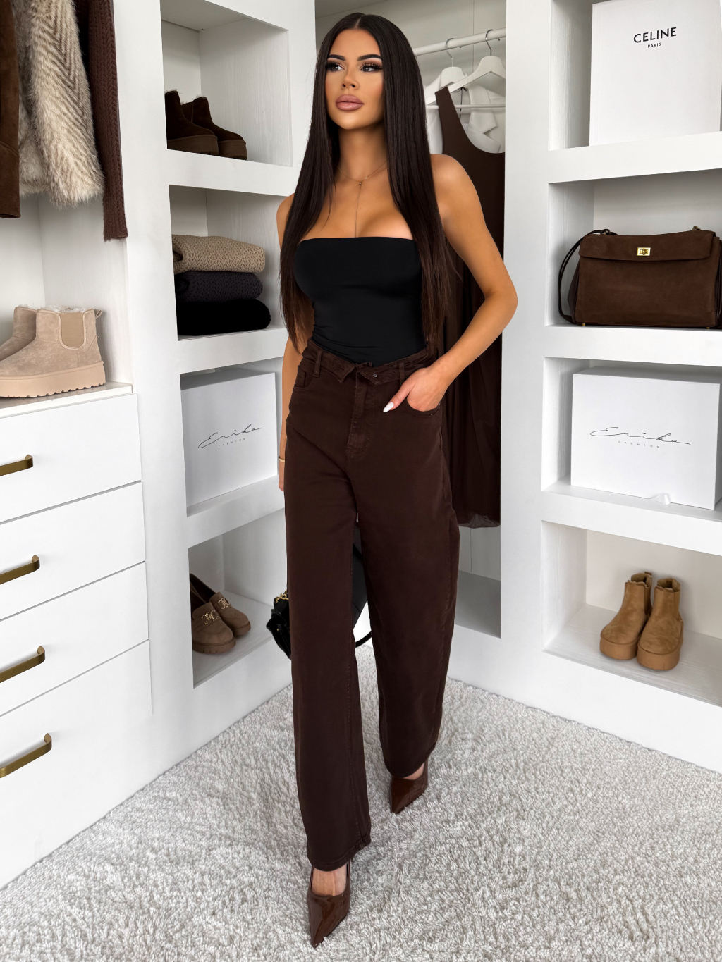 Tmavo hnedé wide leg džínsy CEVORA