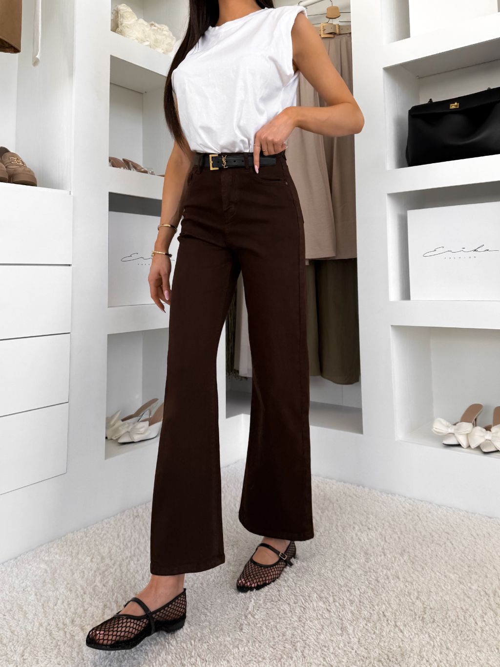 Tmavo hnedé wide leg široké džínsy CALYDRA