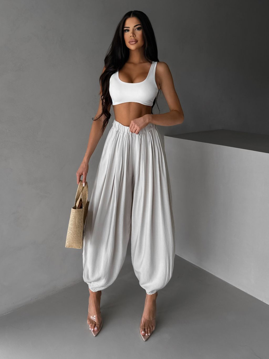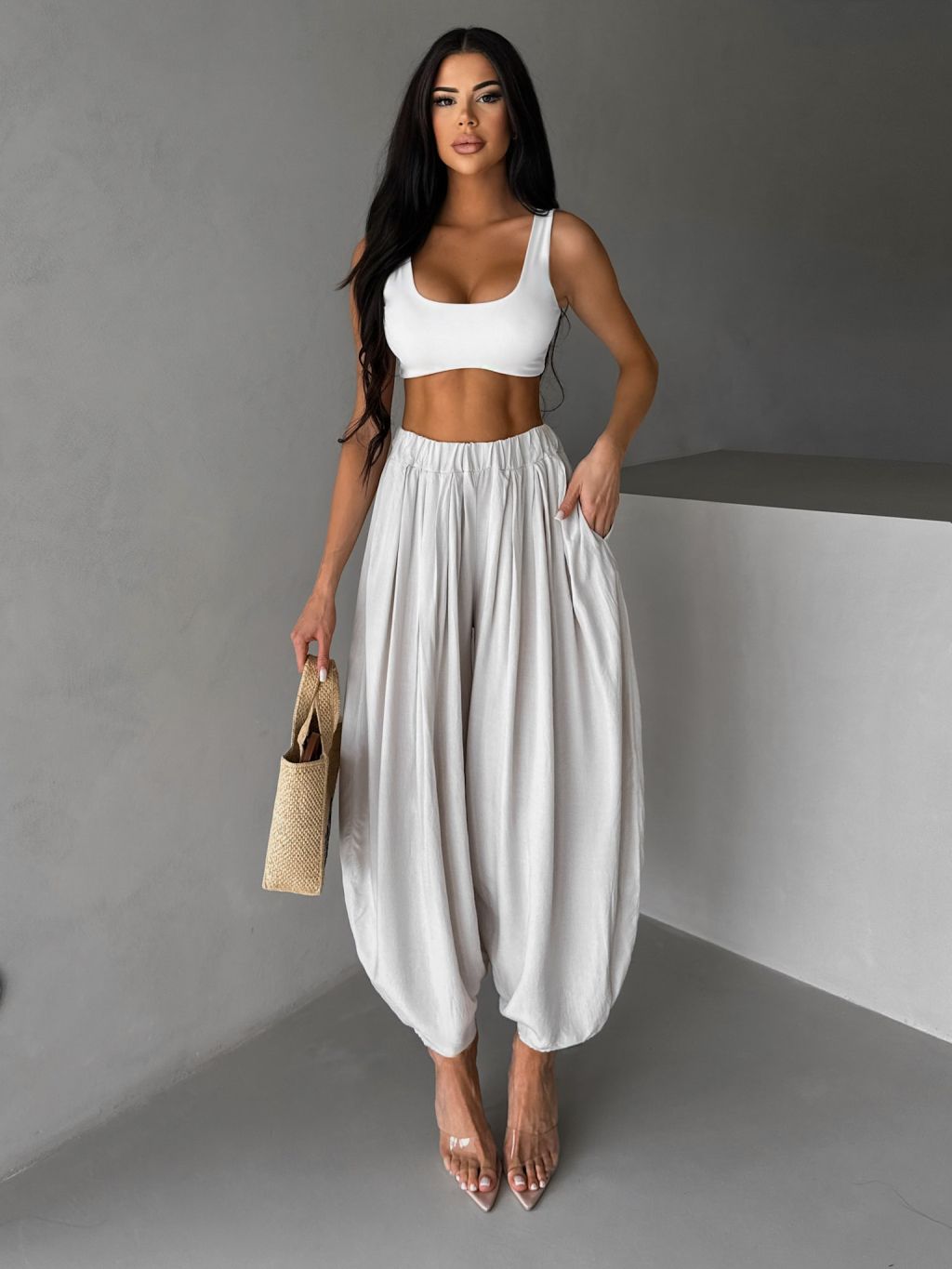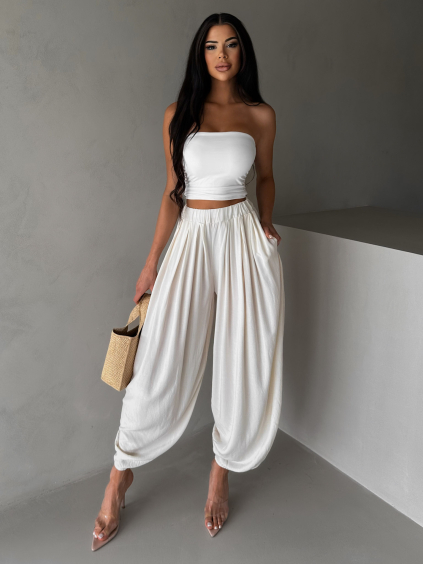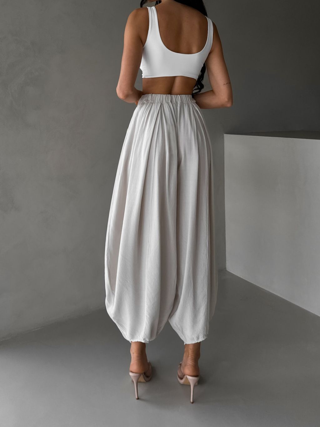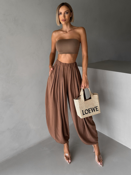 Béžové široké háremky vzdušné nohavice MYRAEL