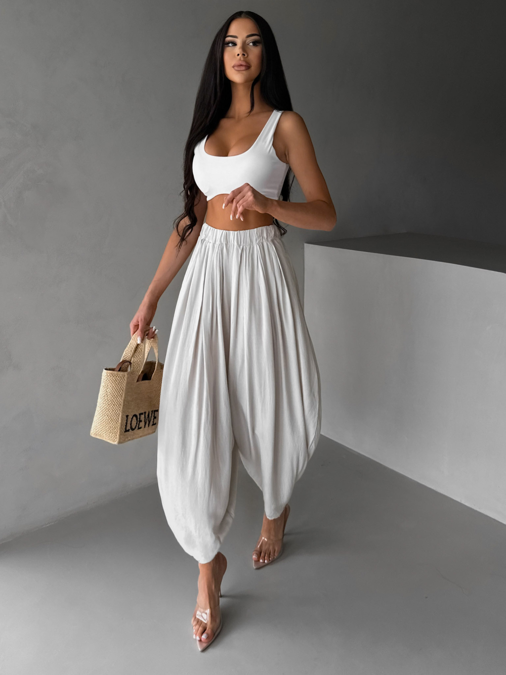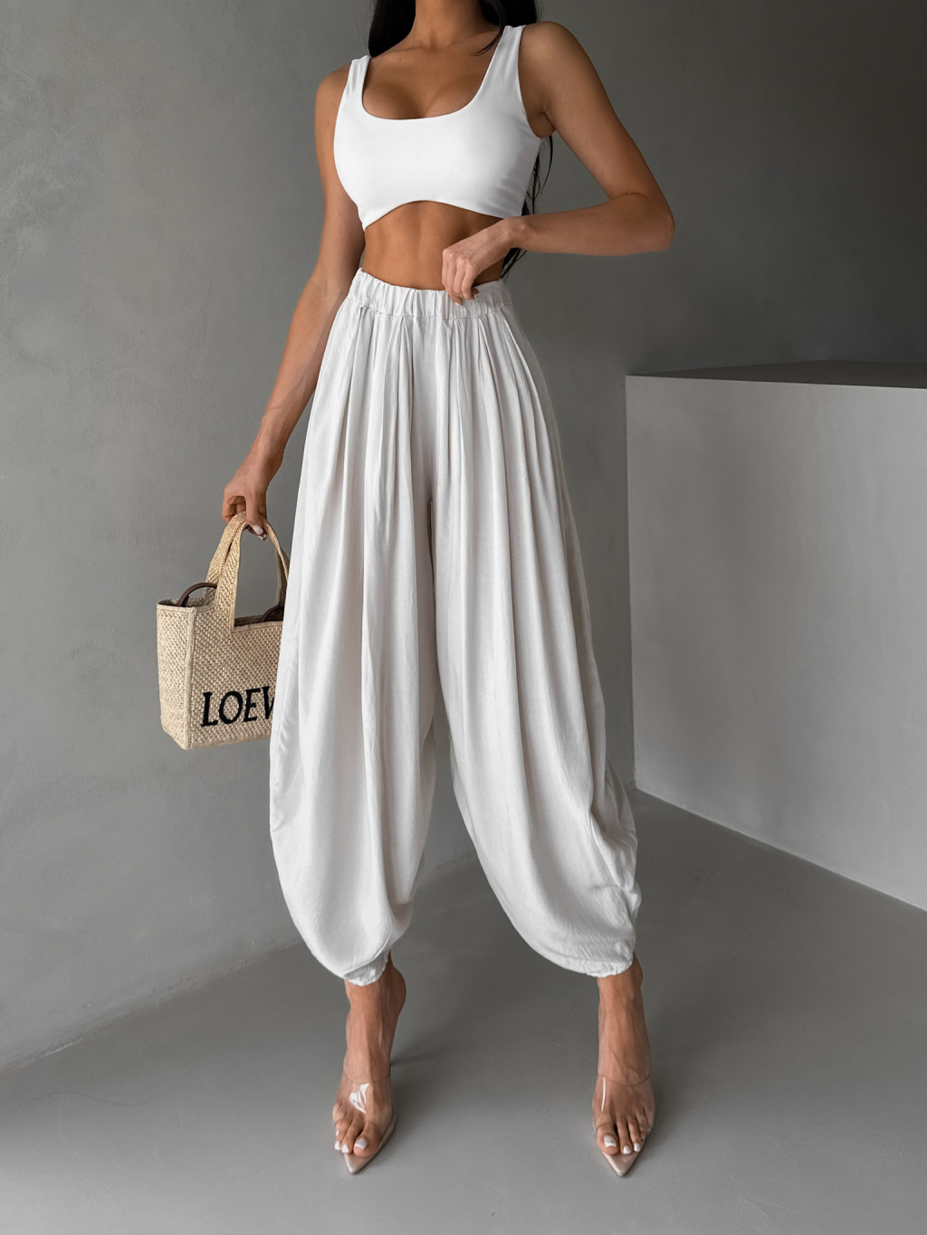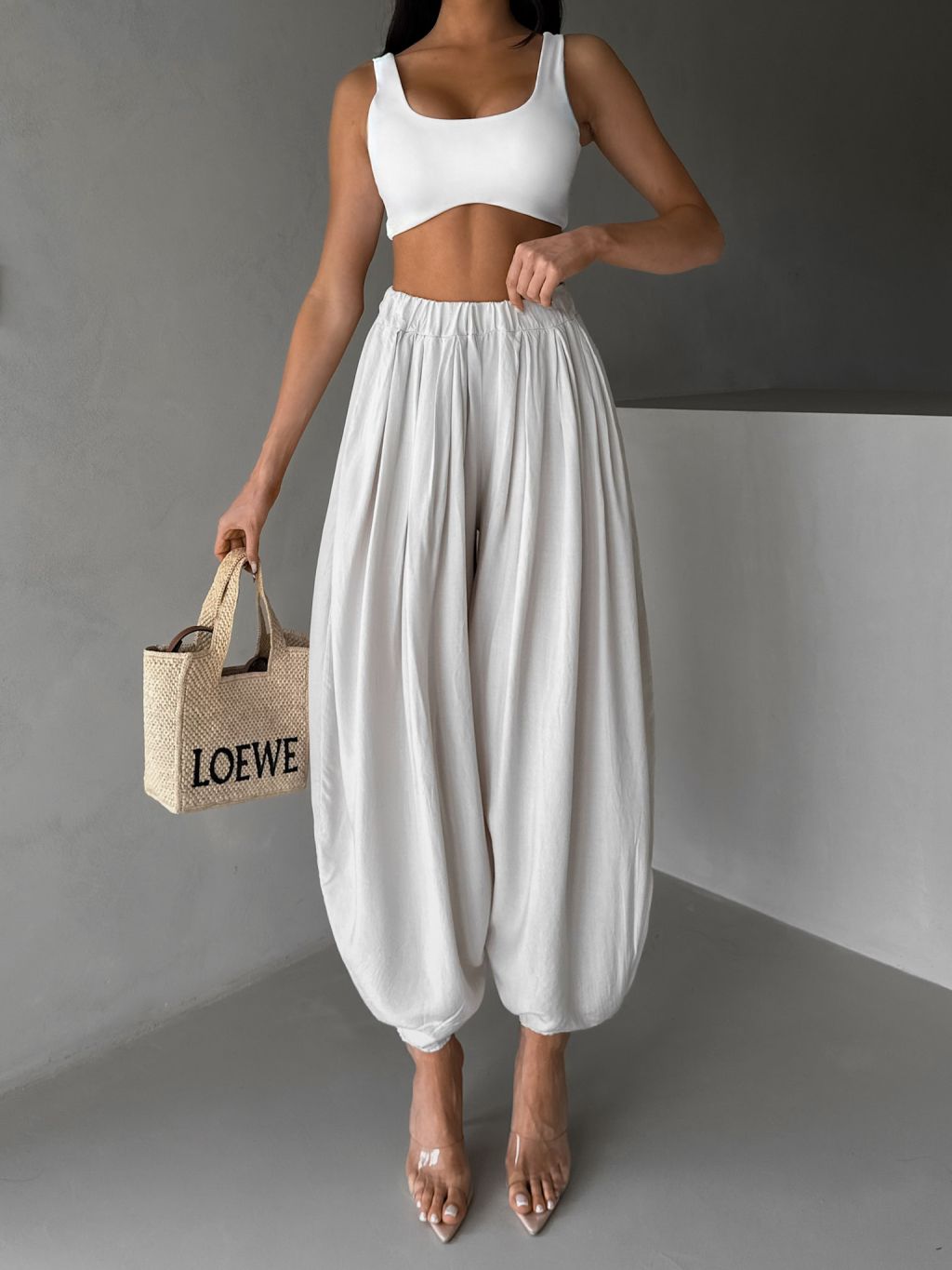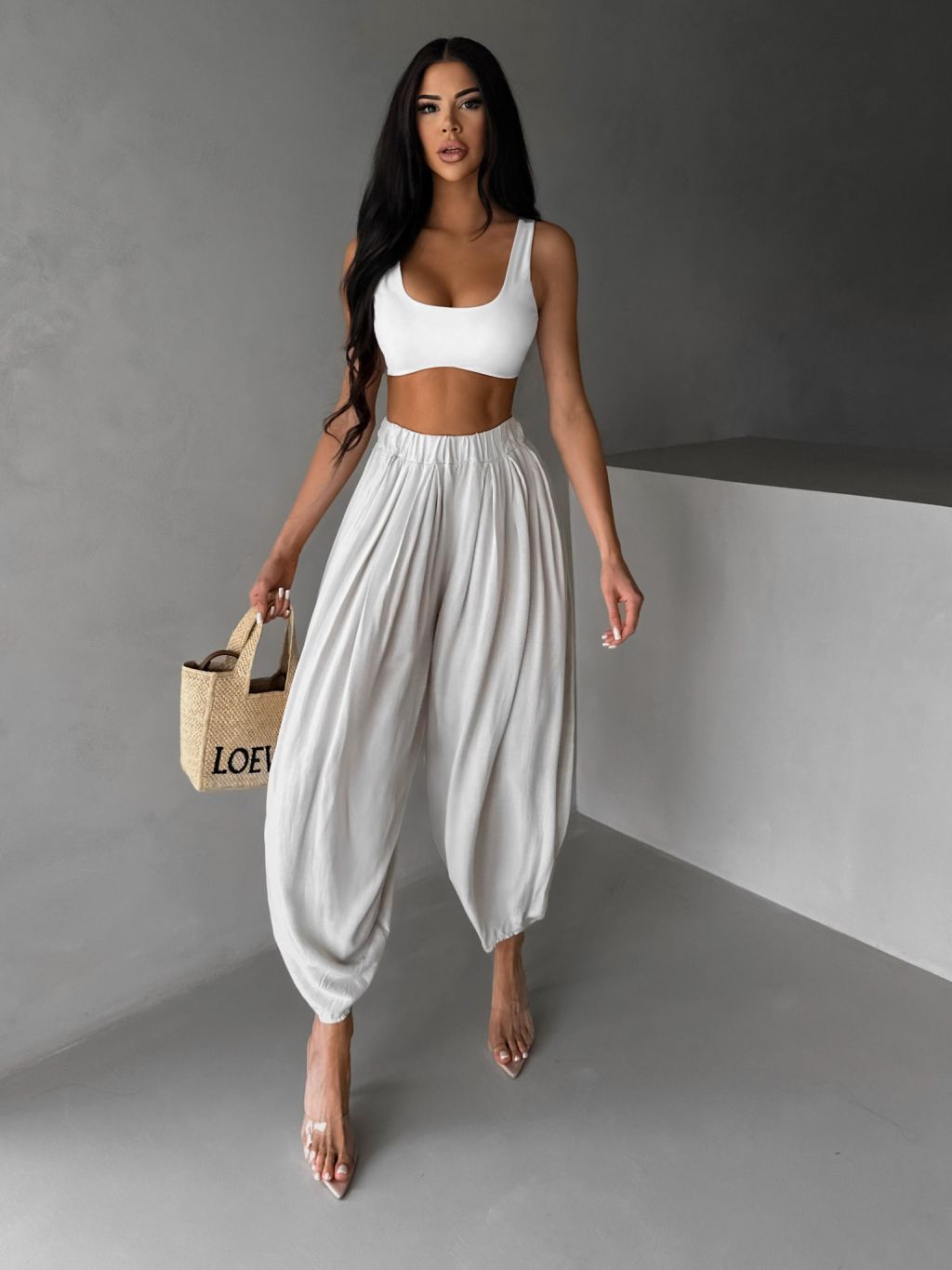 Béžové široké háremky vzdušné nohavice MYRAEL