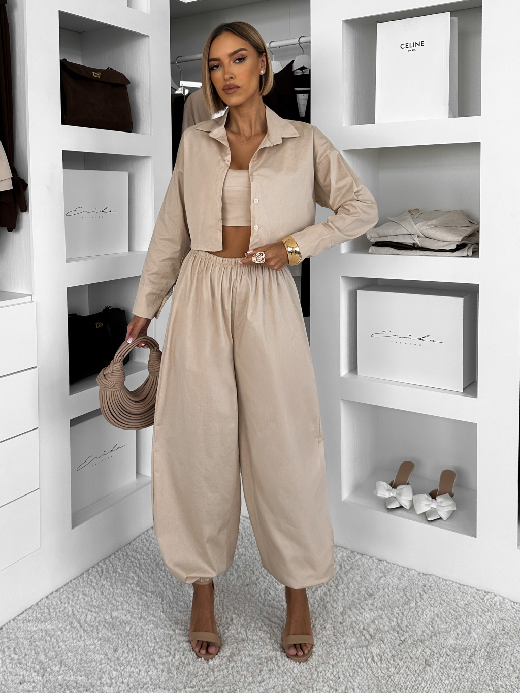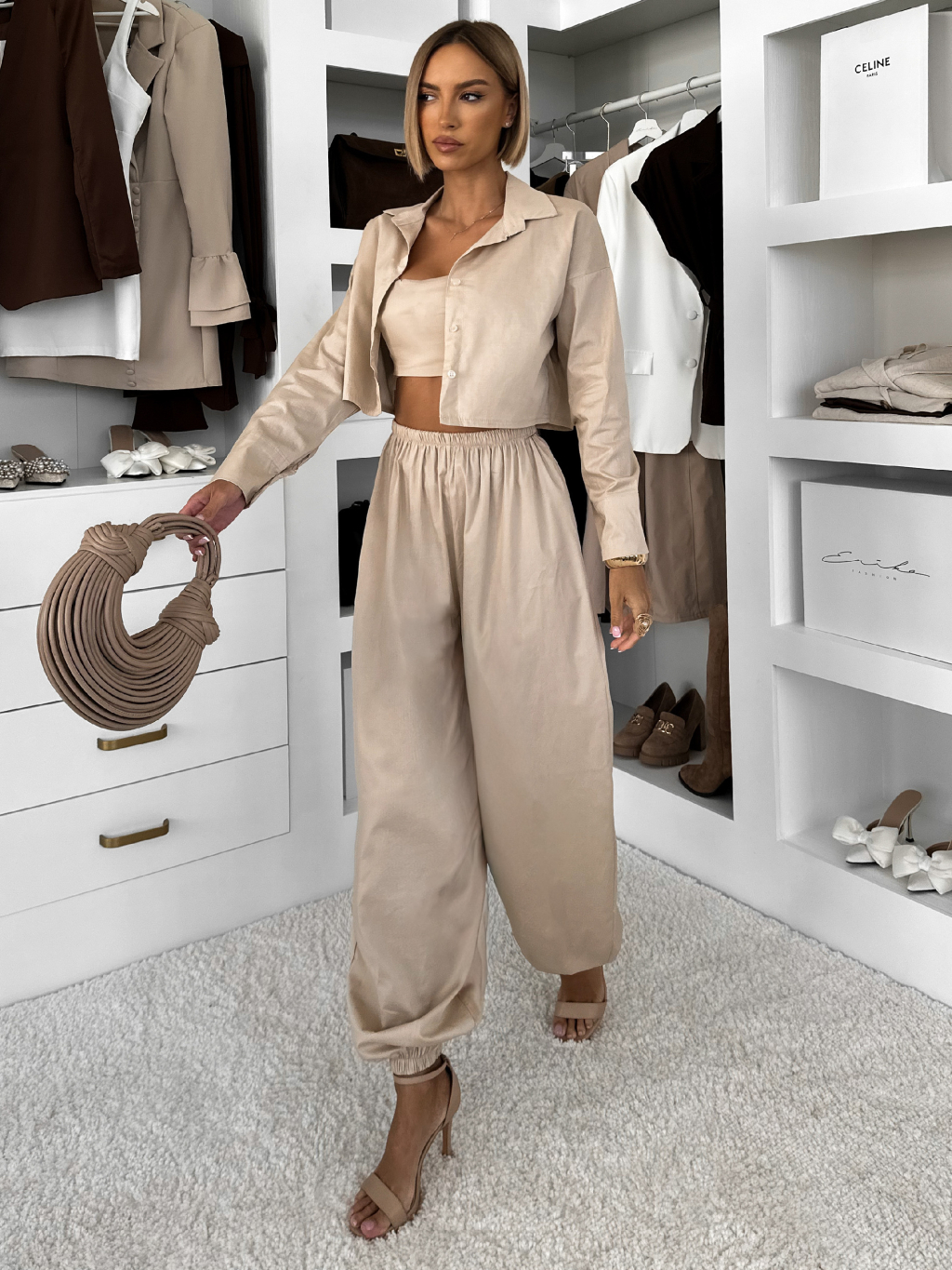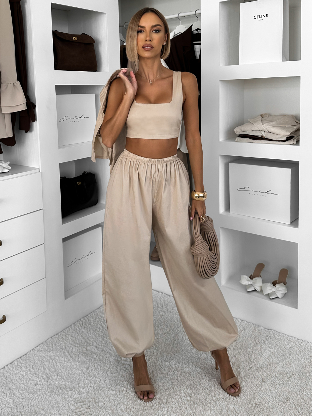 Béžový bavlnený nohavicový komplet MOCHACA