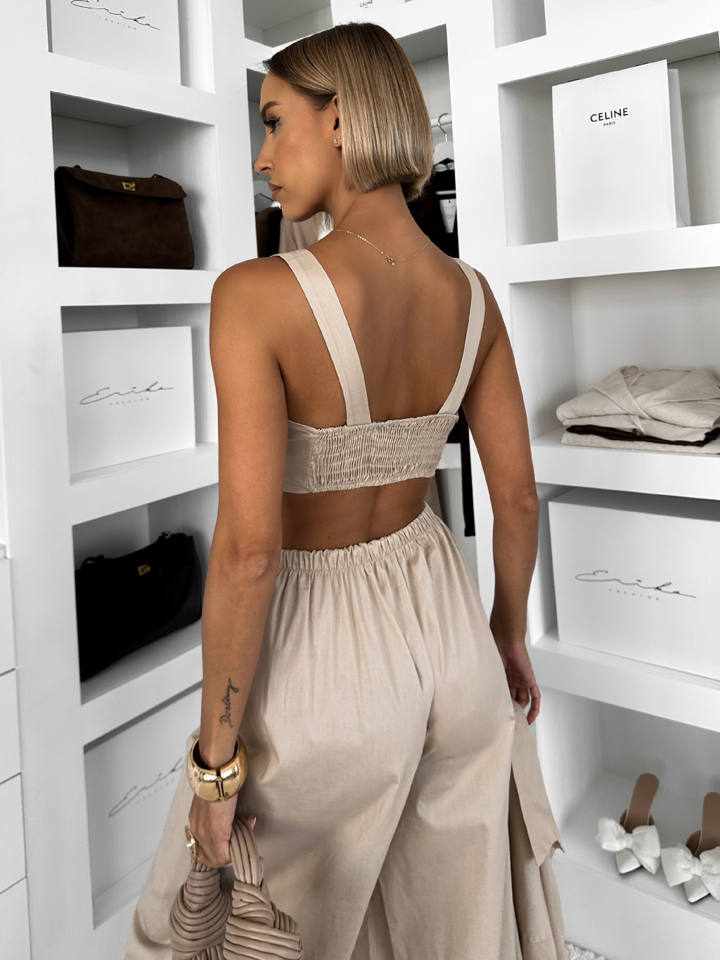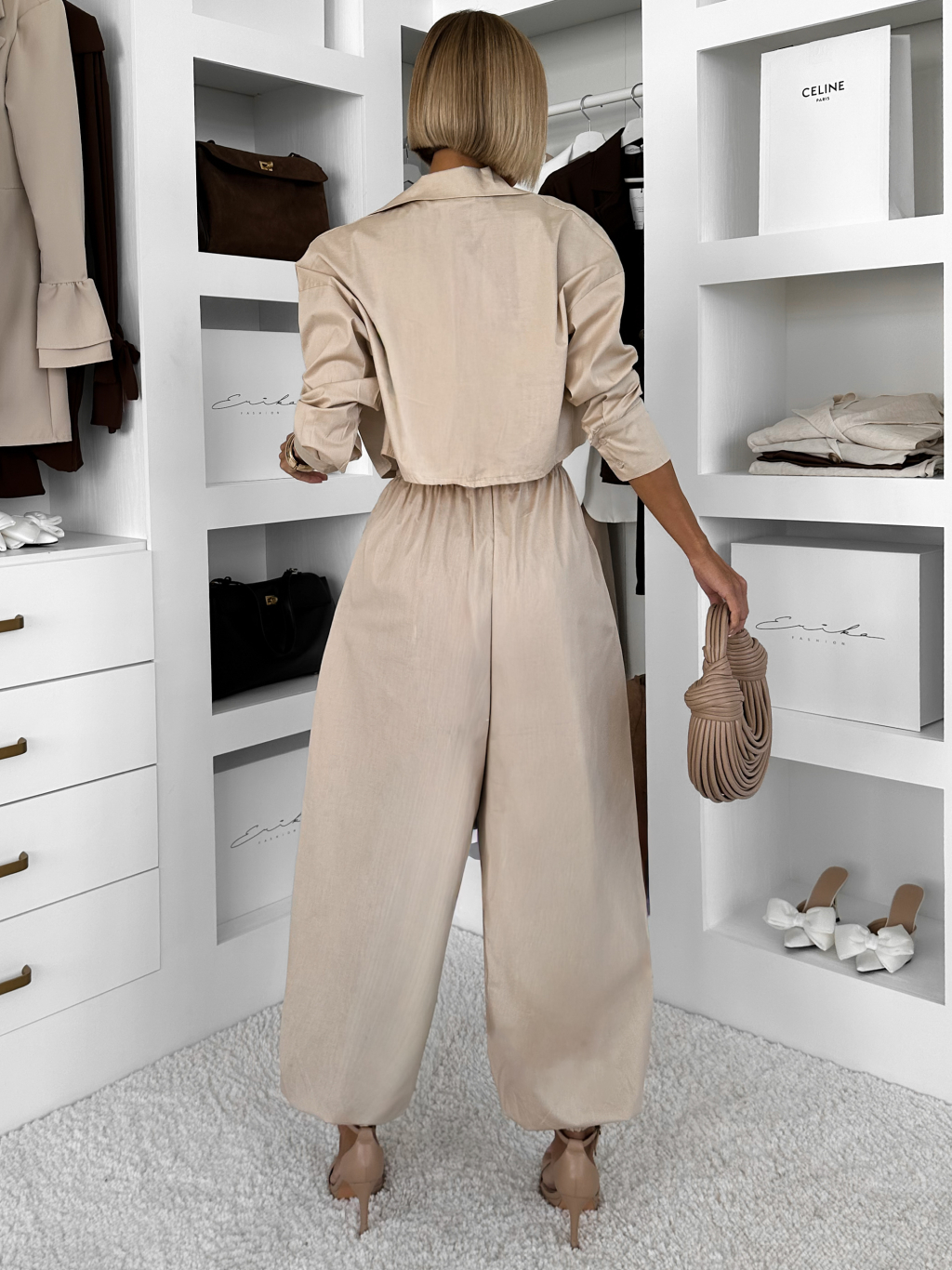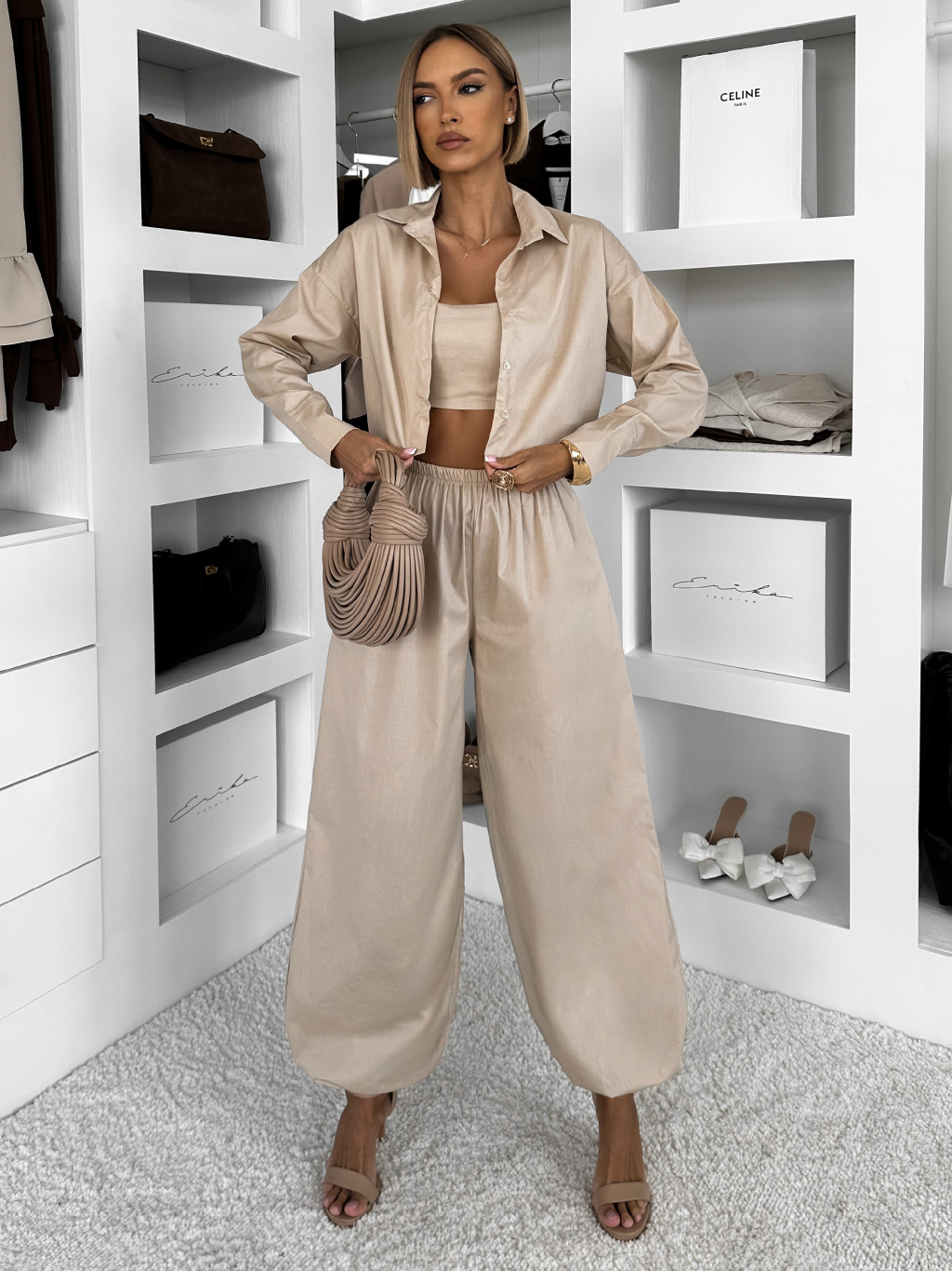 Béžový bavlnený nohavicový komplet MOCHACA