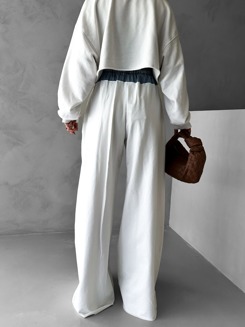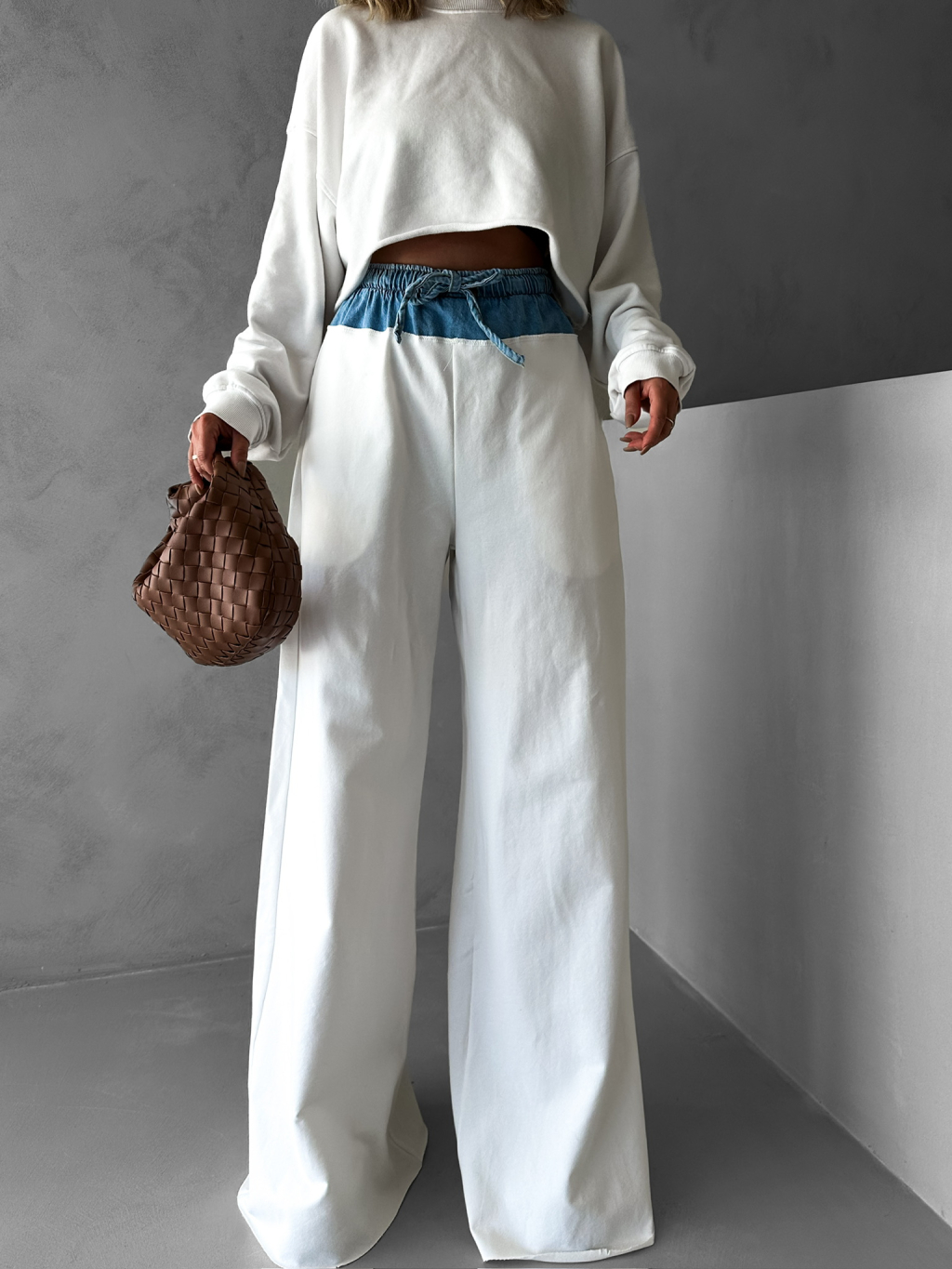 Biele teplákové nohavice ZIXIT s džínsovinou
