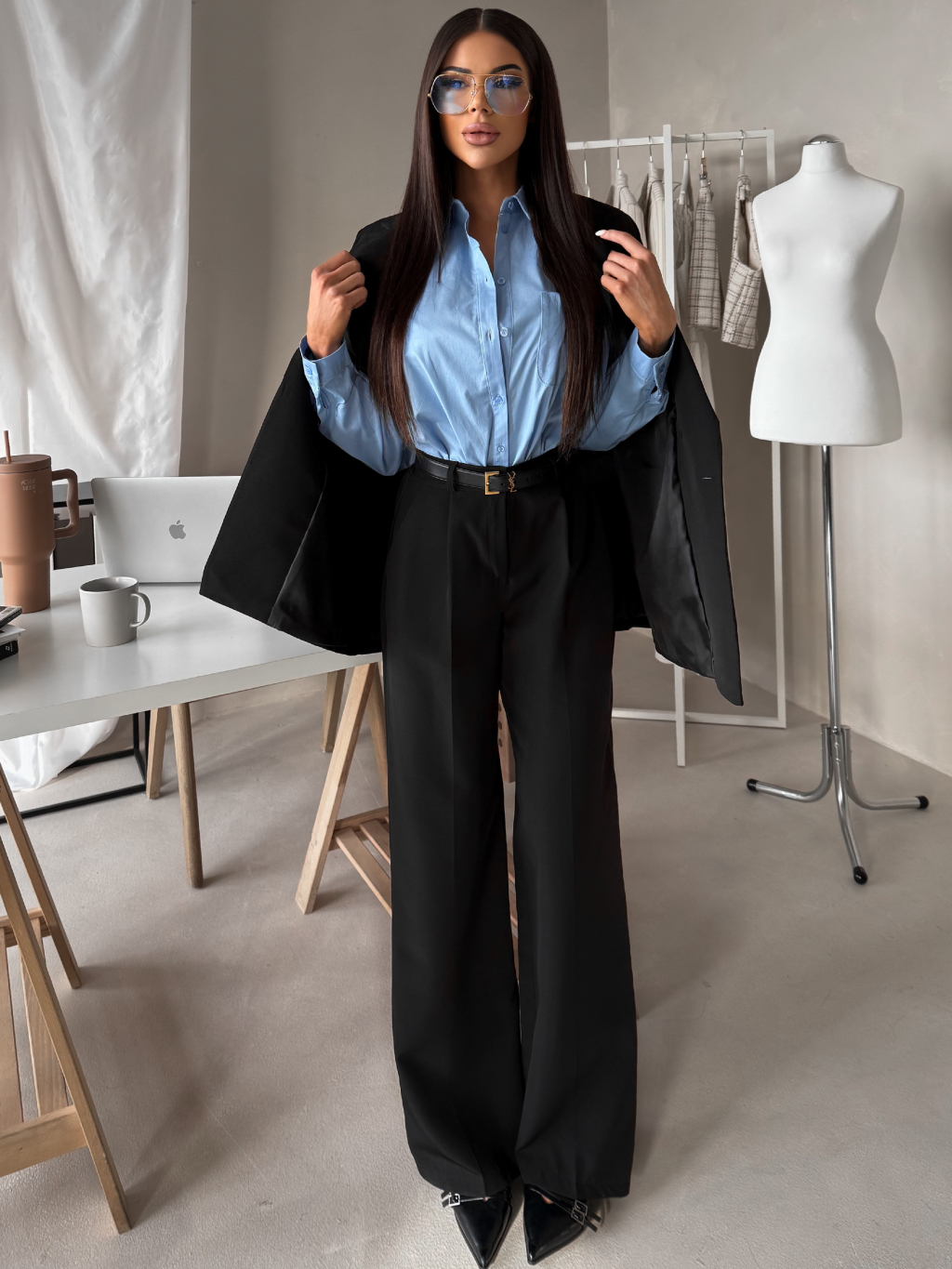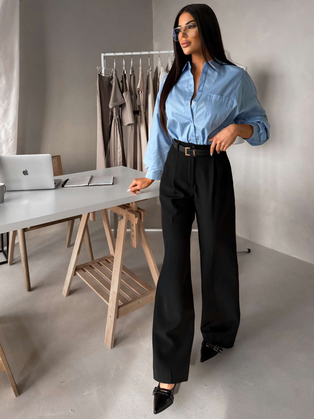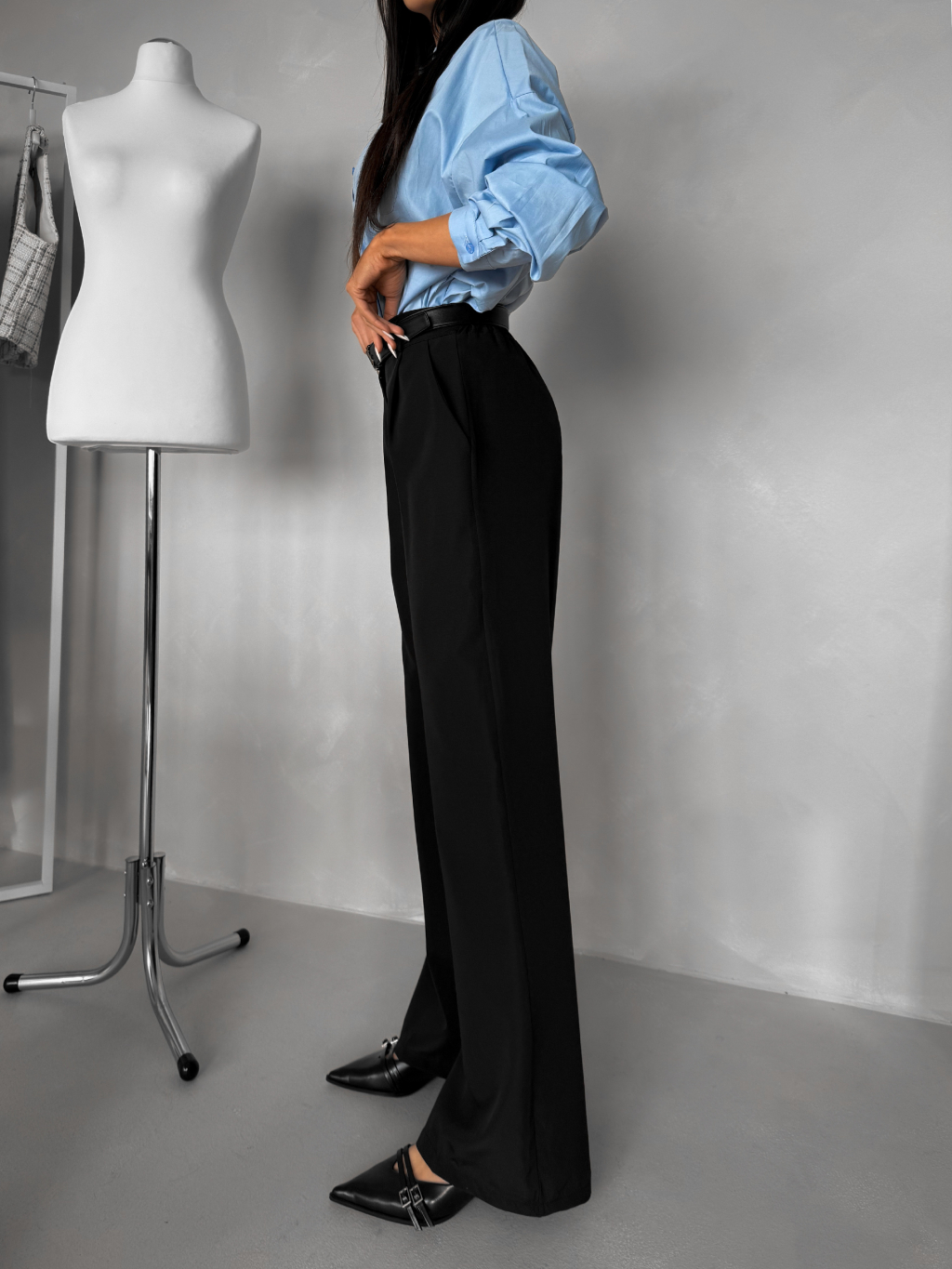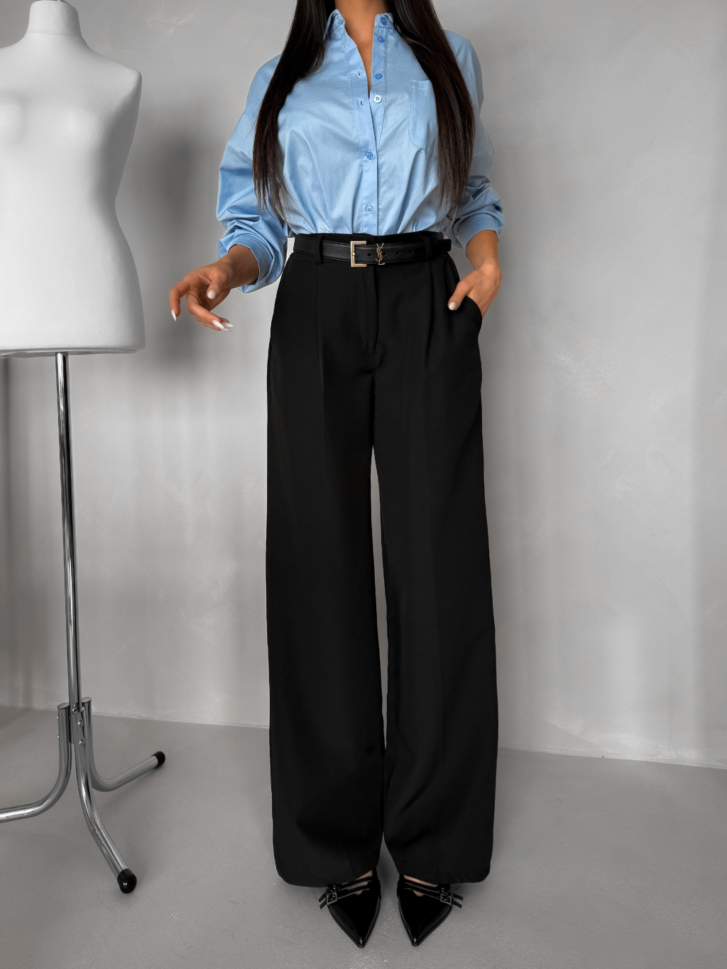 Čierne elegantné široké nohavice OMNIRA