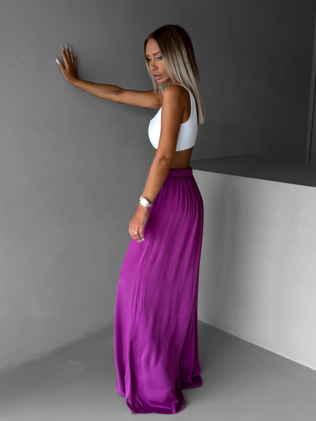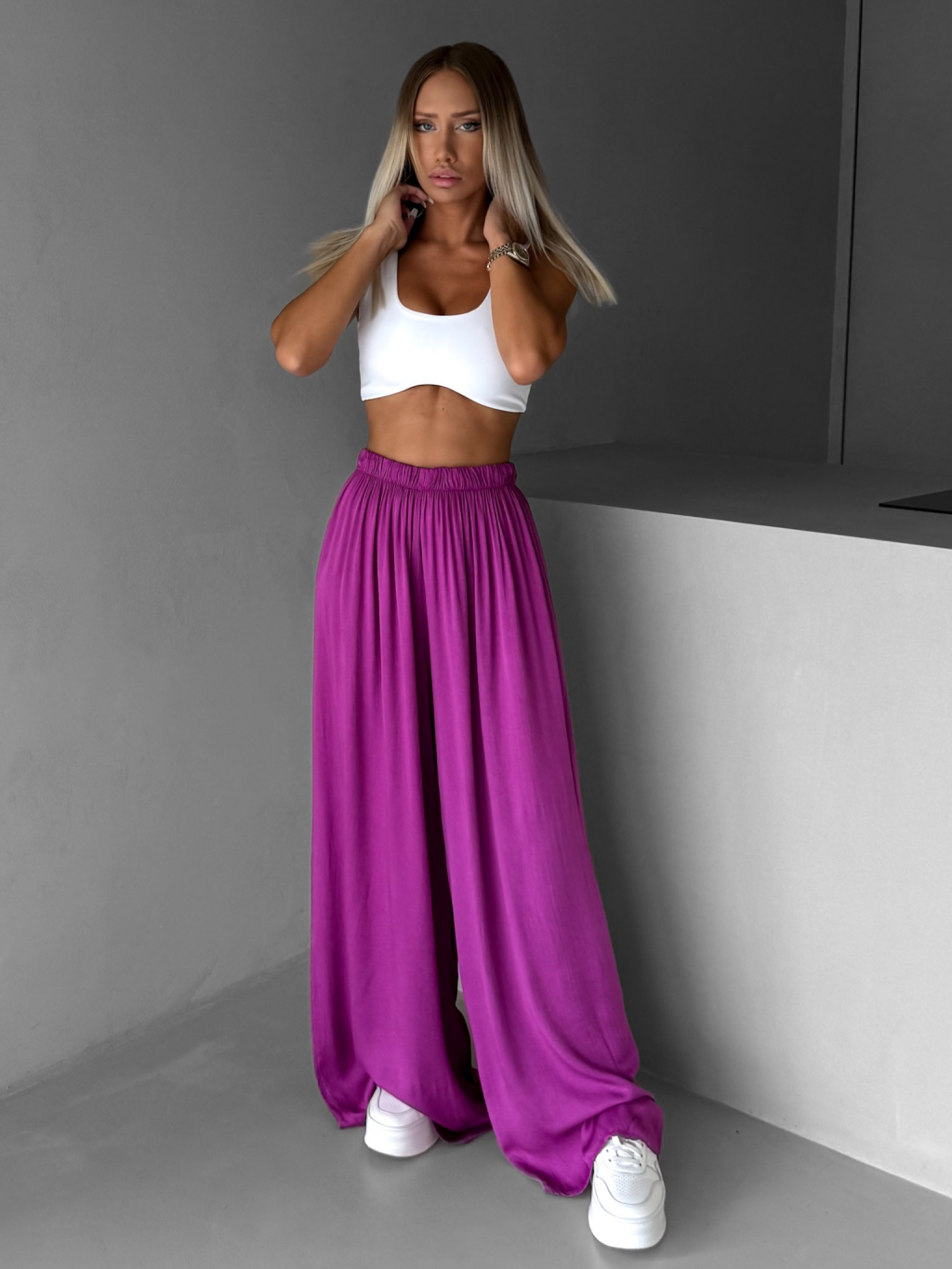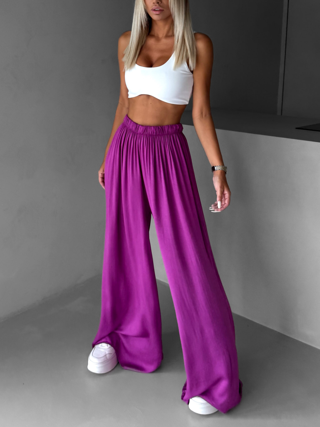 Fialové široké voľné dlhé nohavice OLVIRA