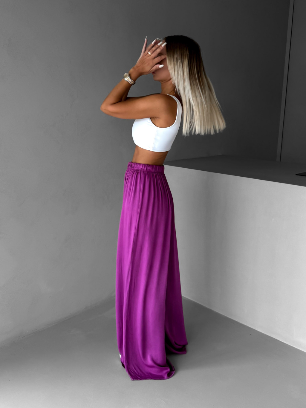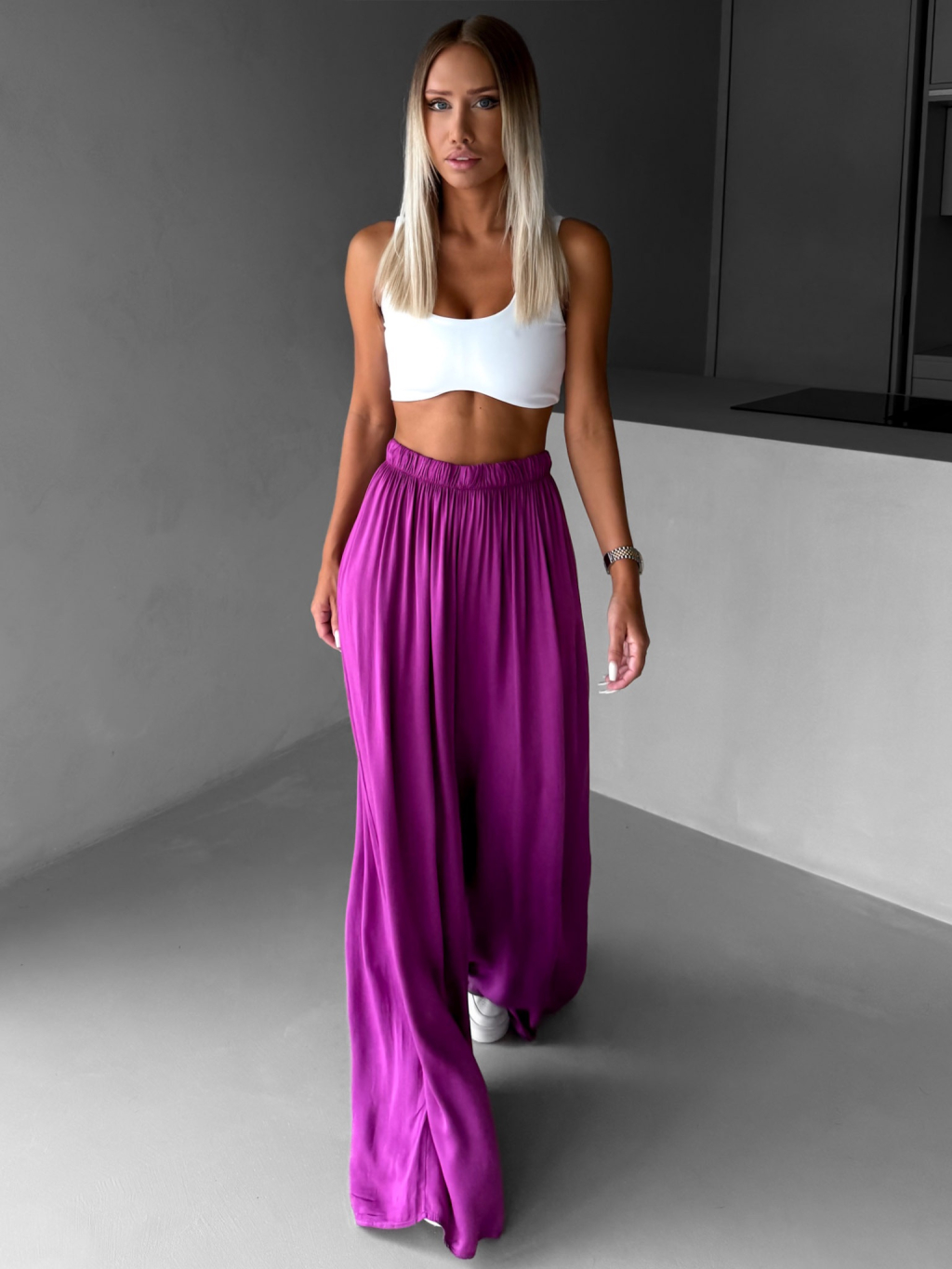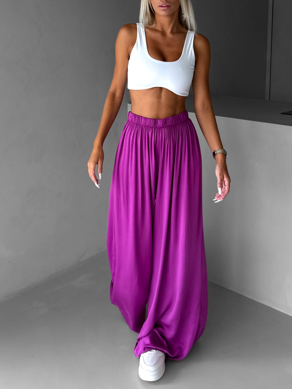 Fialové široké voľné dlhé nohavice OLVIRA