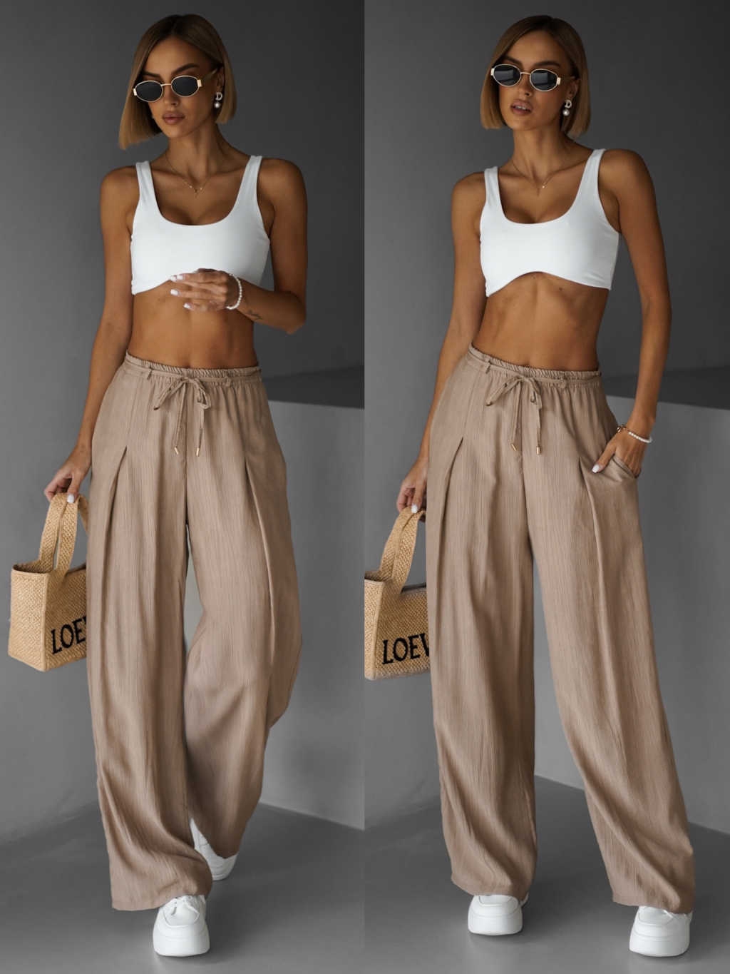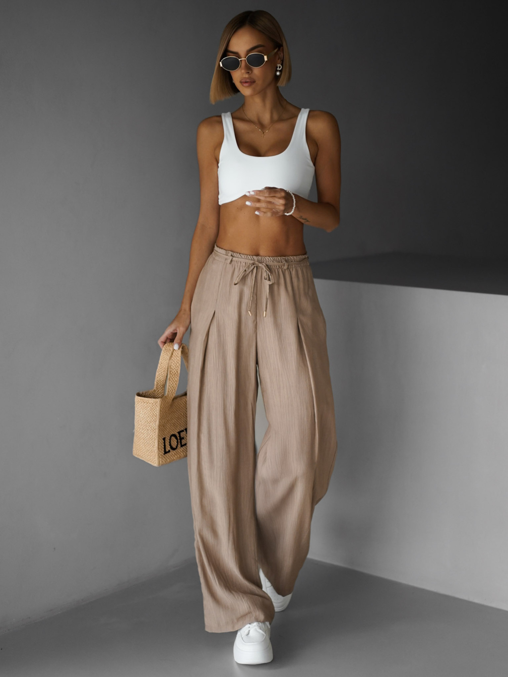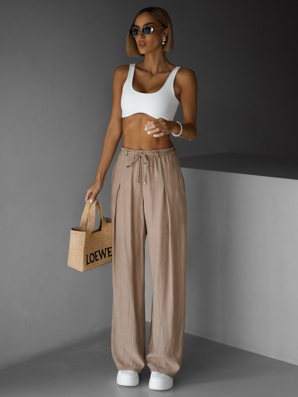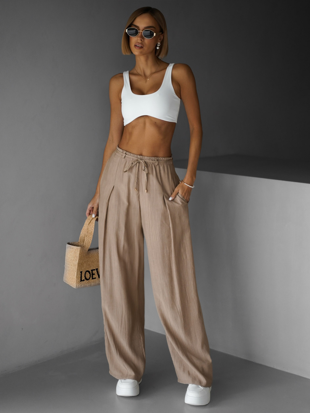 Hnedé ľahké široké nohavice LARYS so šnúrkou