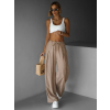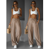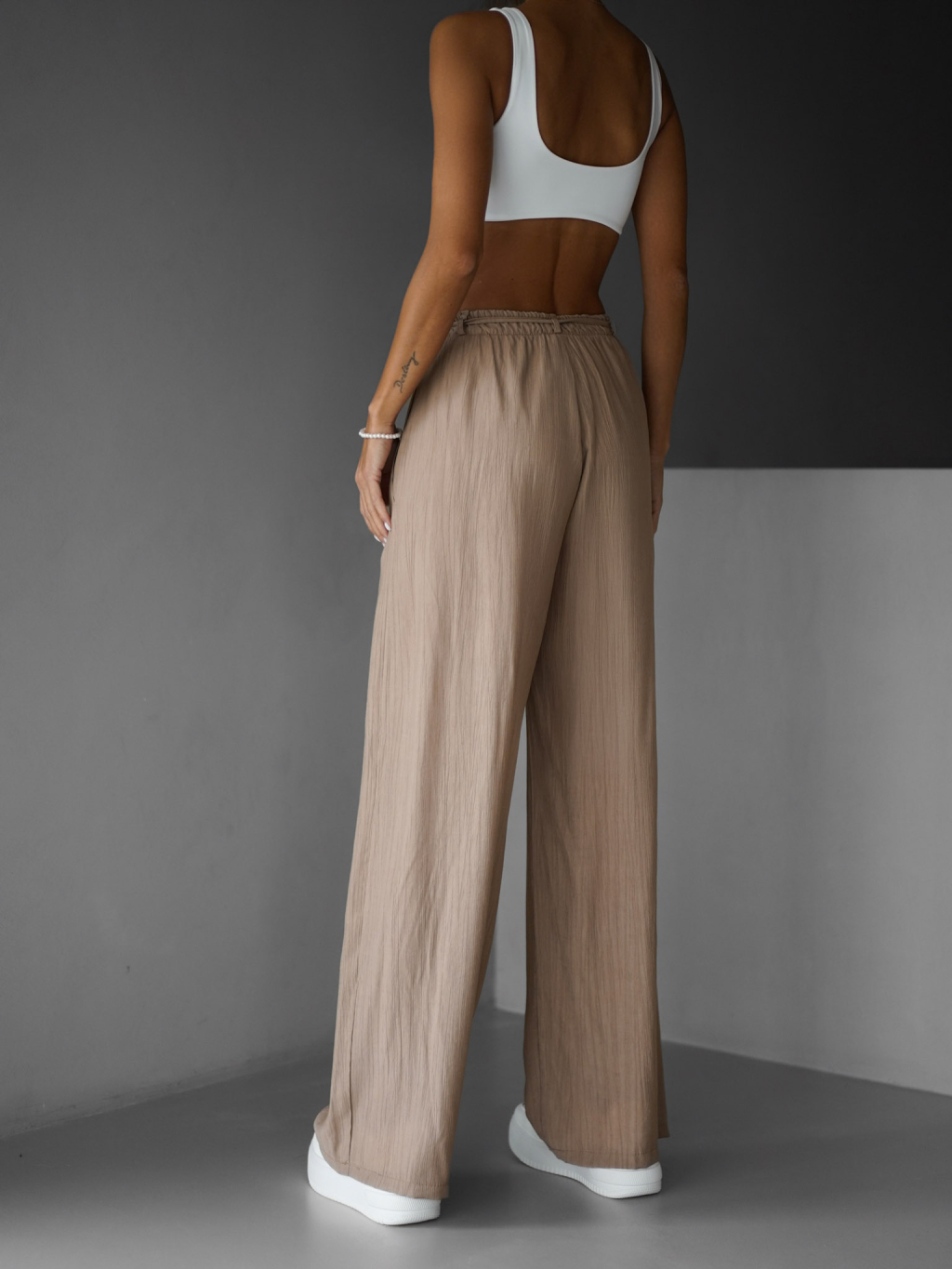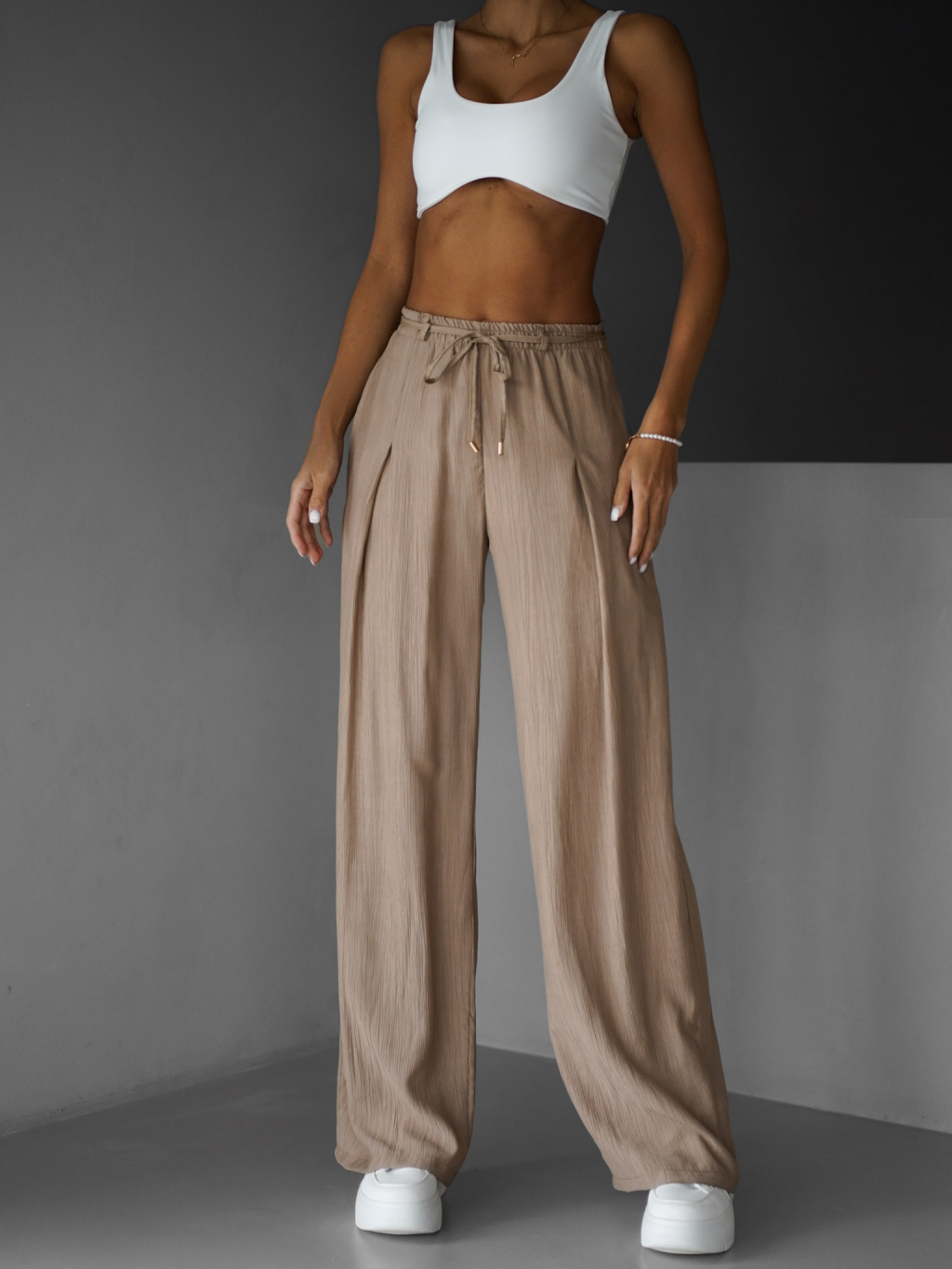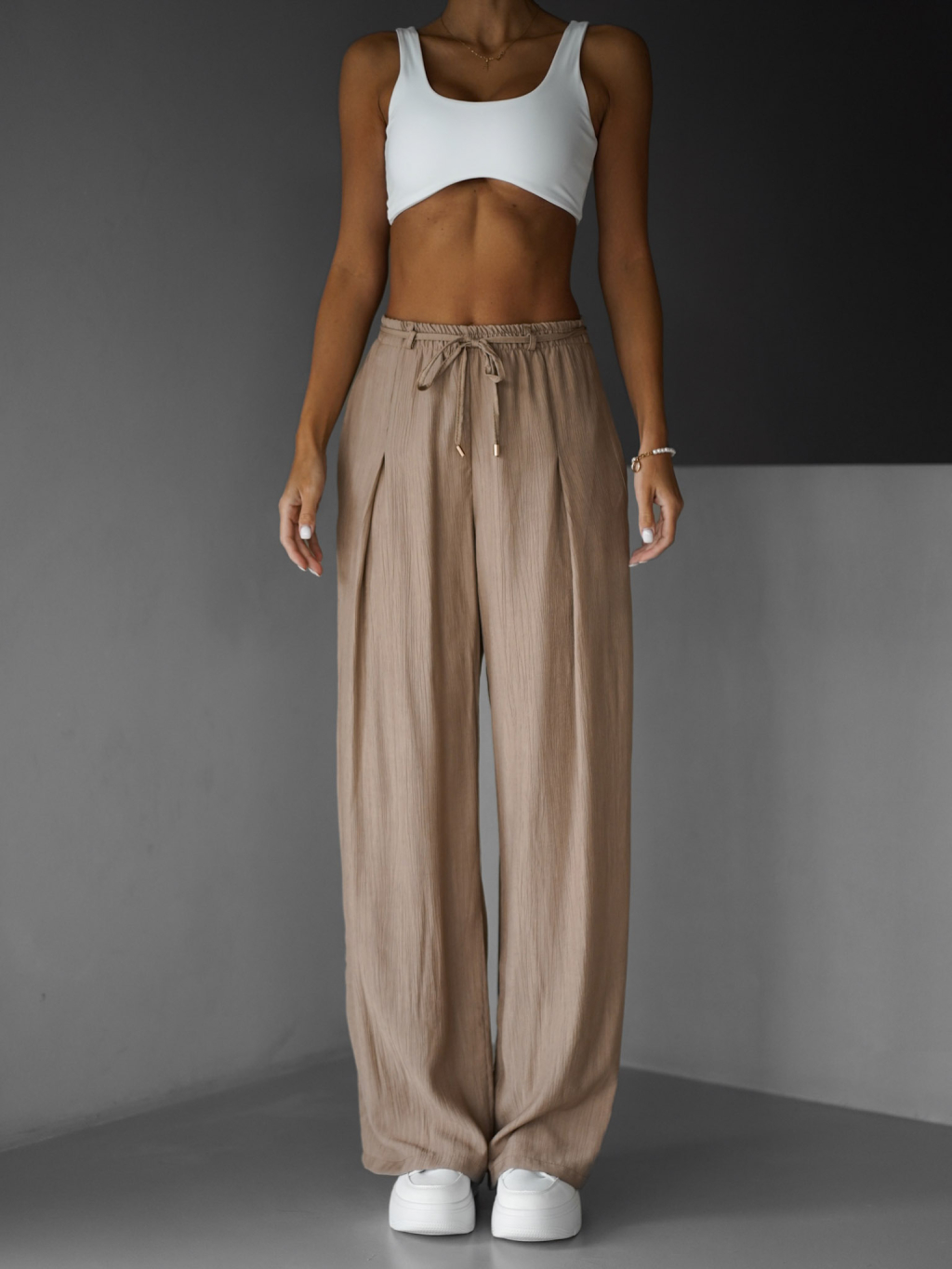 Hnedé ľahké široké nohavice LARYS so šnúrkou