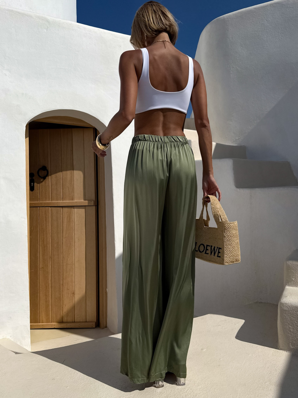 Elegantný kúsok, ktorý využijete ako v lete na akciách, tak v zime na ples. Ľahký a príjemný materiál s jemným leskom pôsobí luxusne, zatiaľ čo pohodlný strih zaistí voľnosť pri každom kroku. Dostupné v štandardnej, predĺženej aj extra predĺženej dĺžke pre perfektné padnutie každej postave.
