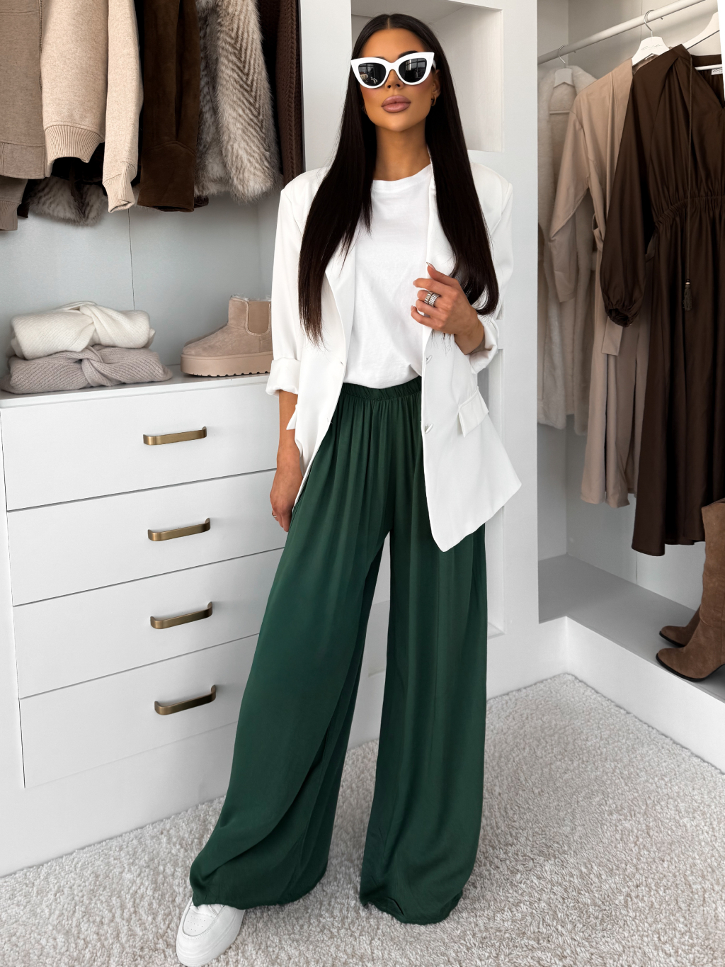 Nadčasové voľné nohavice, ktoré krásne priliehajú k postave. Vďaka svojmu pružnému materiálu v páse a svojej pohodlnosti sú vhodné na každodenné nosenie.
