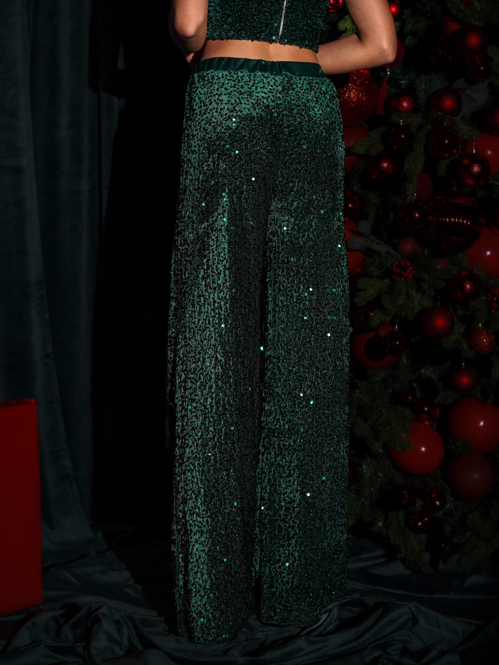 Smaragdové široké trblietavé nohavice ONNILO s flitrami