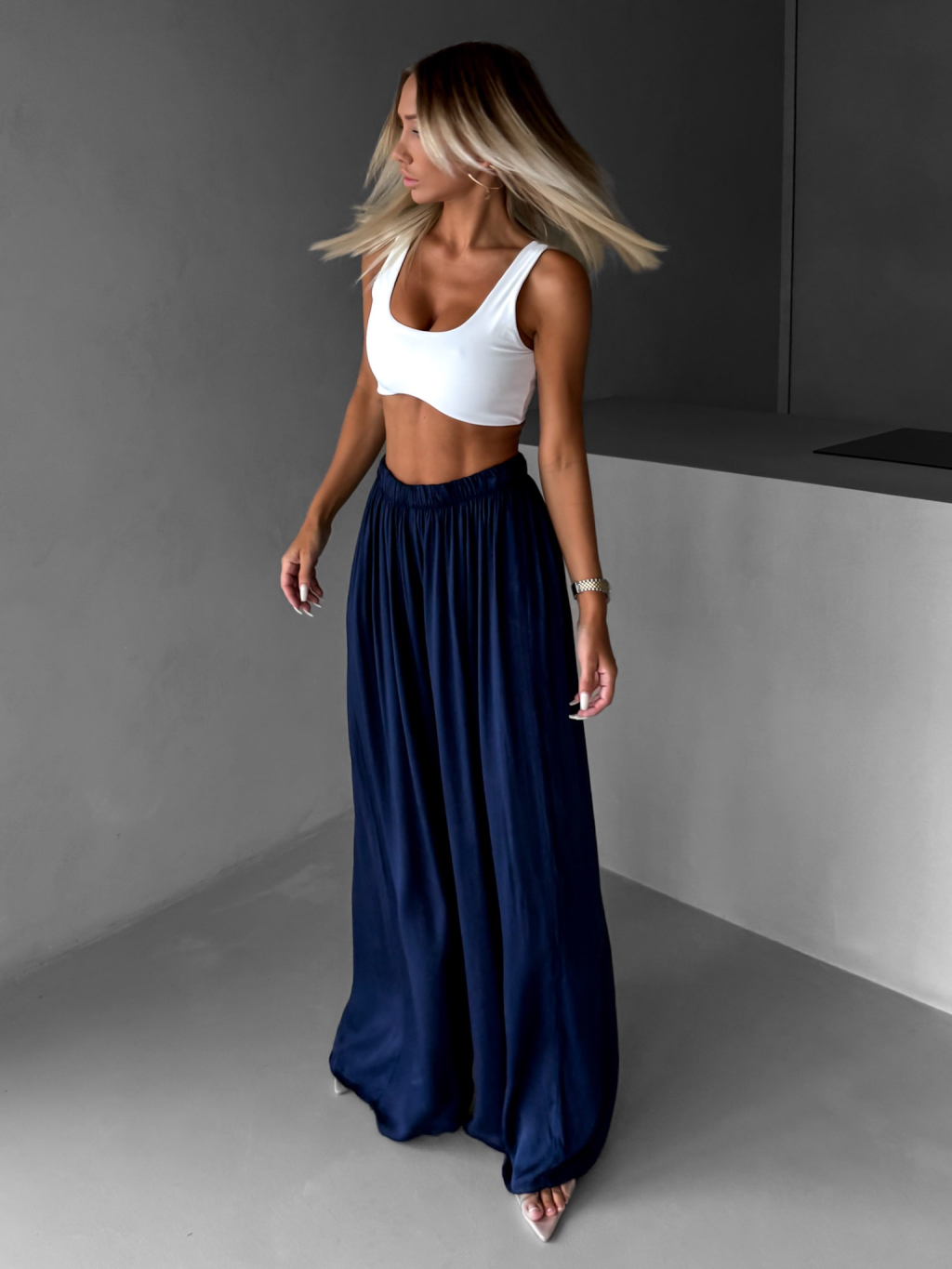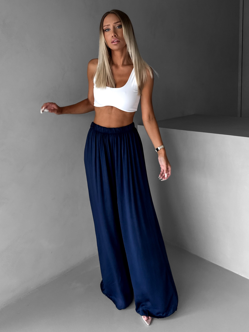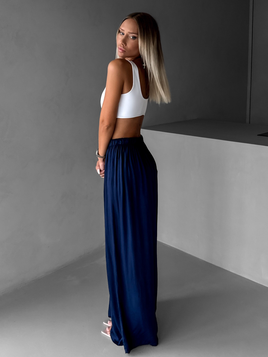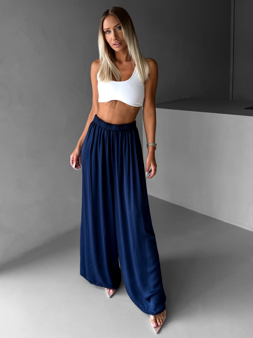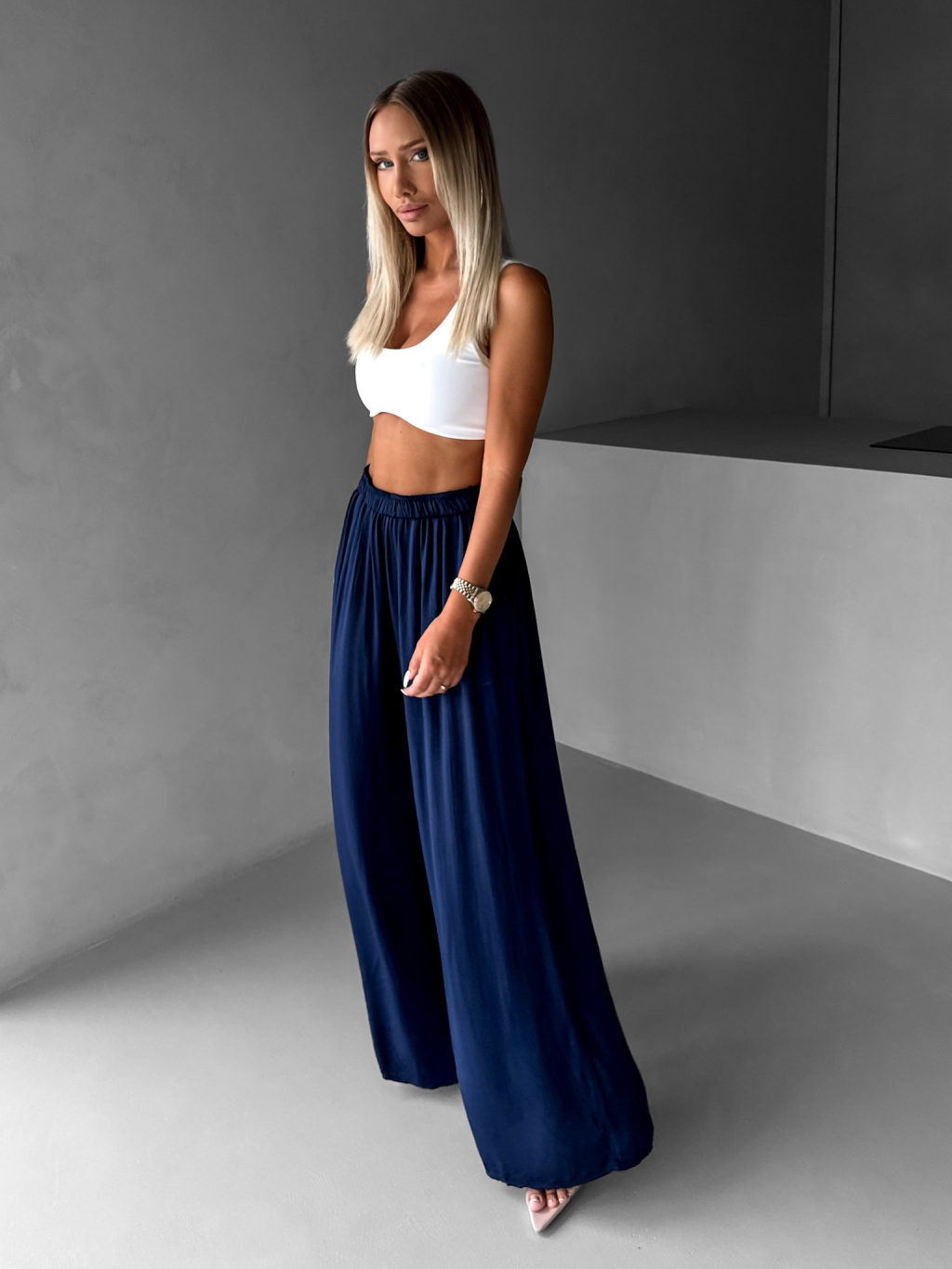 Tmavomodré široké voľné dlhé nohavice OLVIRA