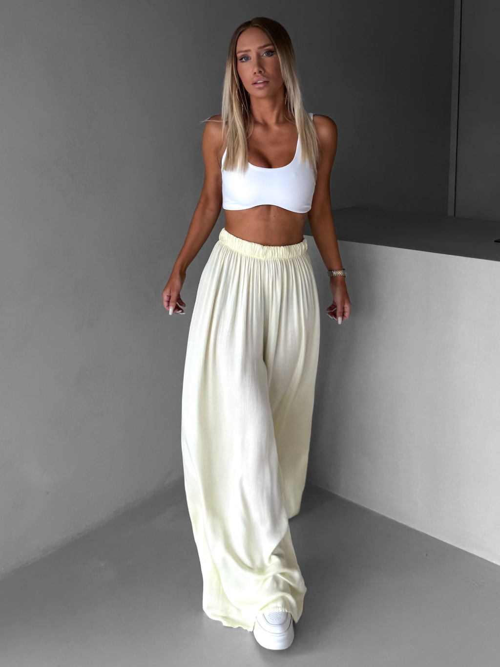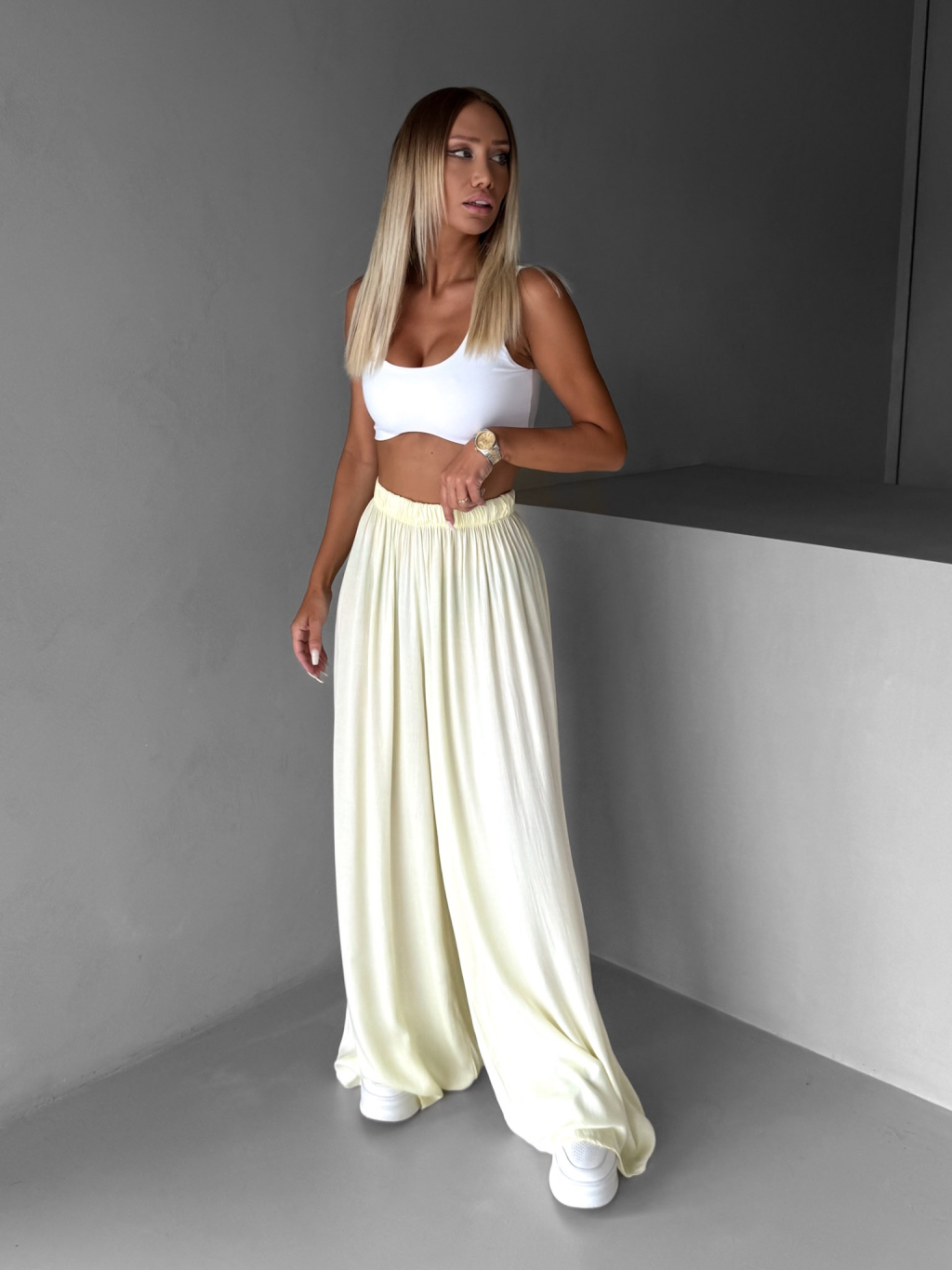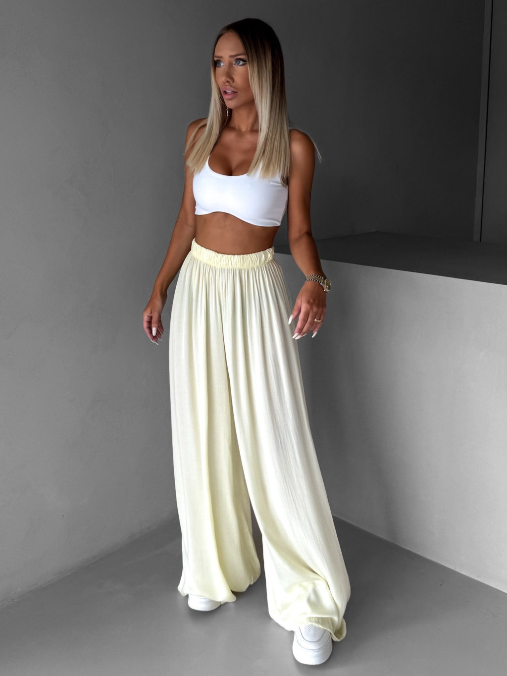 Vanilkové široké voľné dlhé nohavice OLVIRA