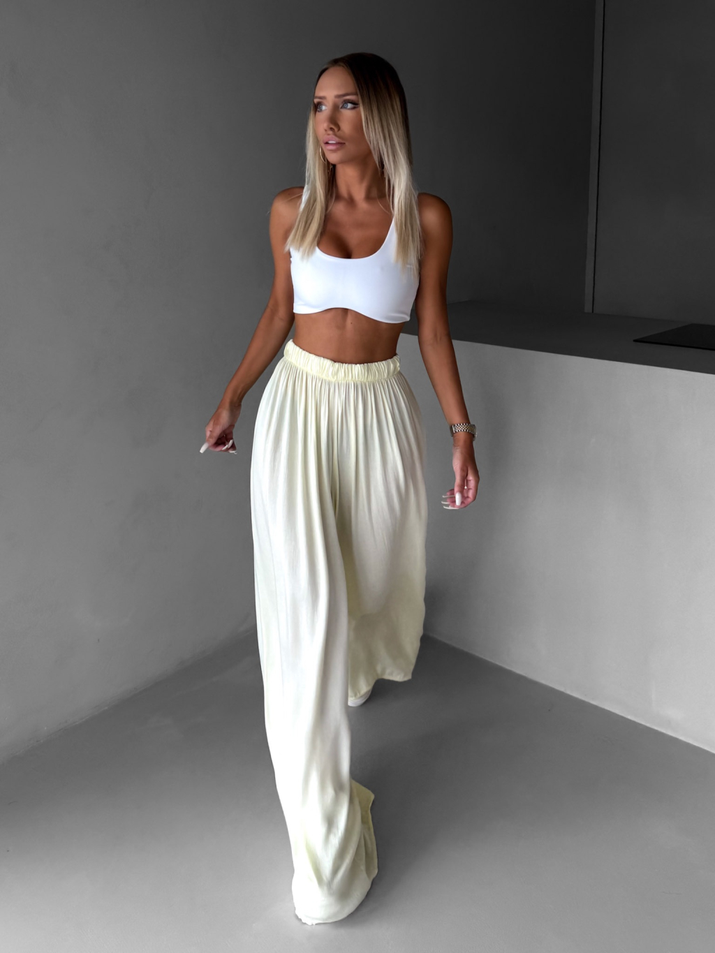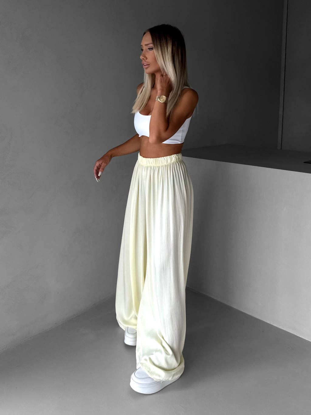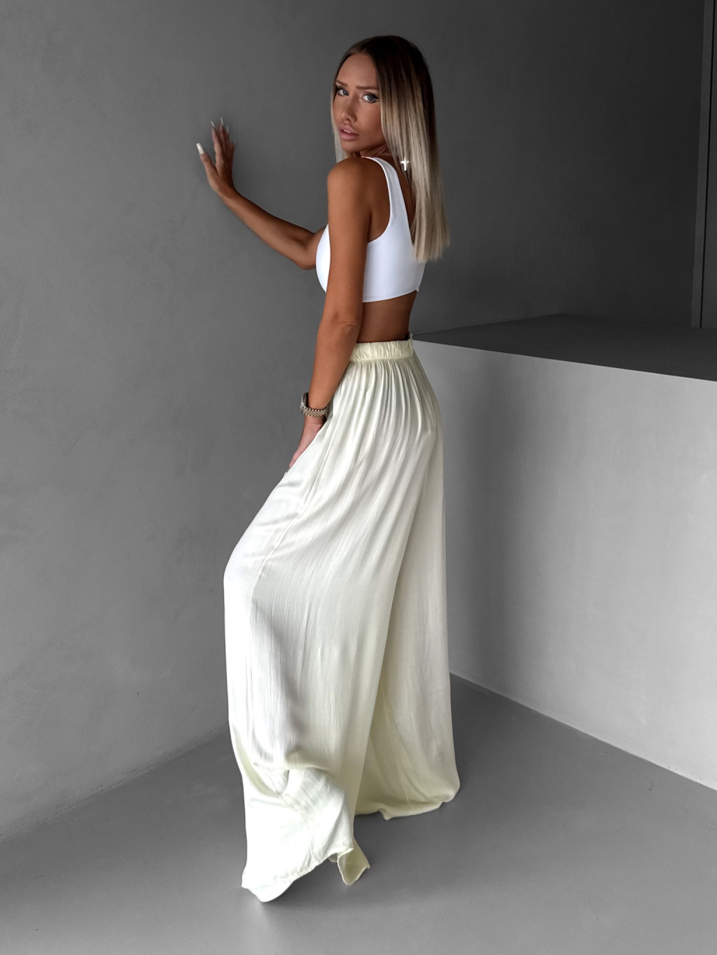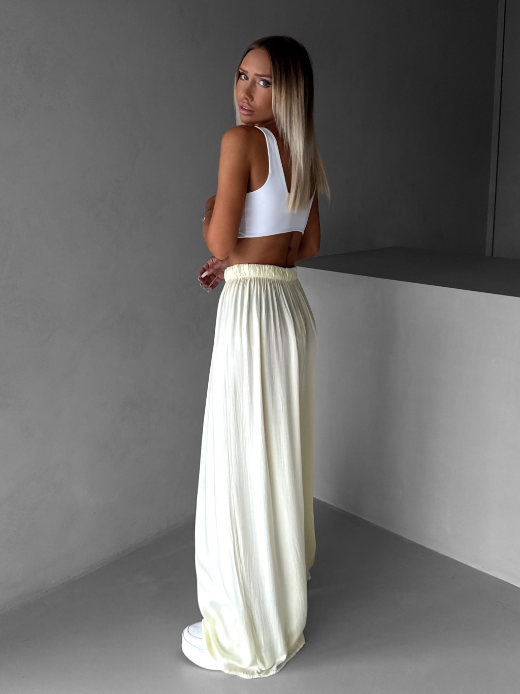 Vanilkové široké voľné dlhé nohavice OLVIRA