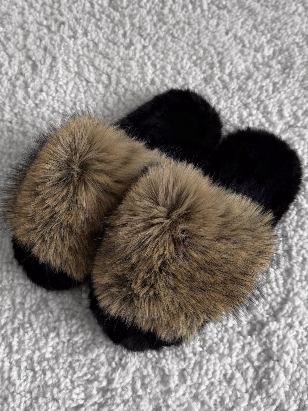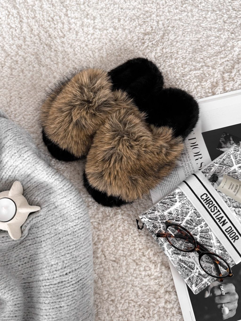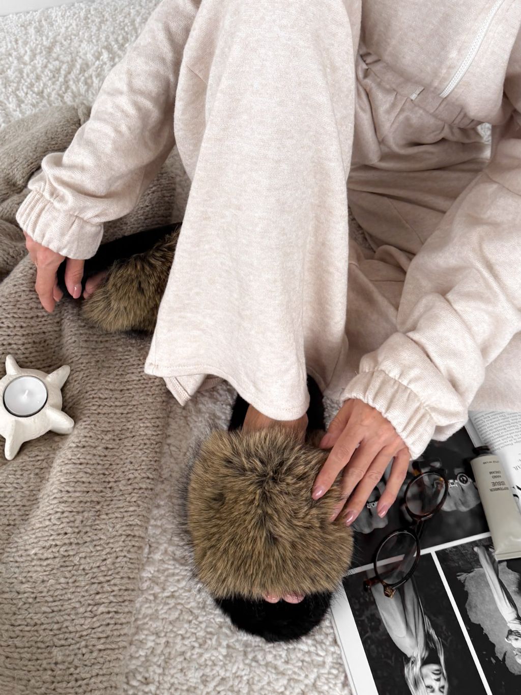 Čiernohnedé domáce šľapky FURLUNY s kožúškom