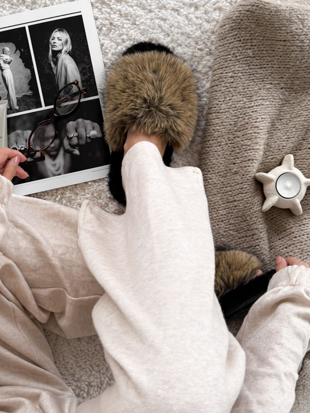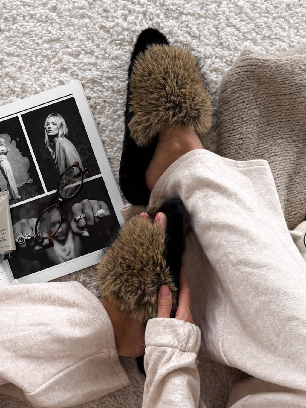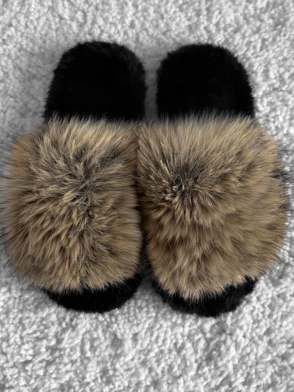 Čiernohnedé domáce šľapky FURLUNY s kožúškom