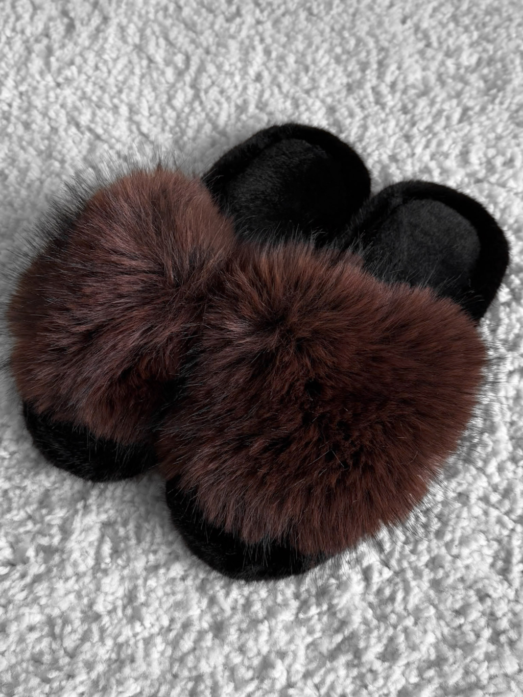 Hnedé domáce huňaté šľapky FURLUNY s kožúškom