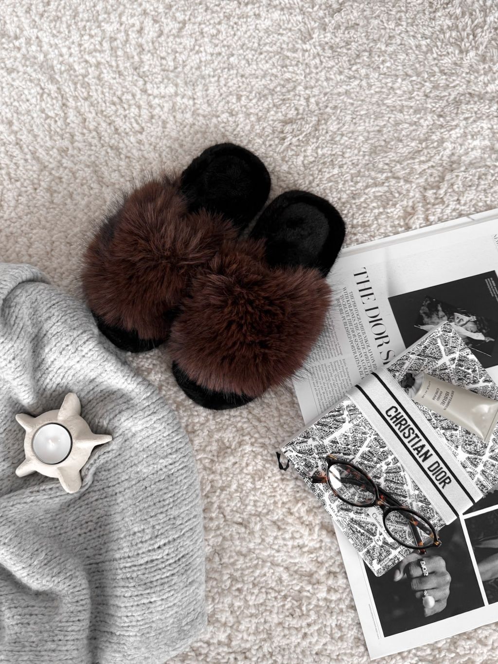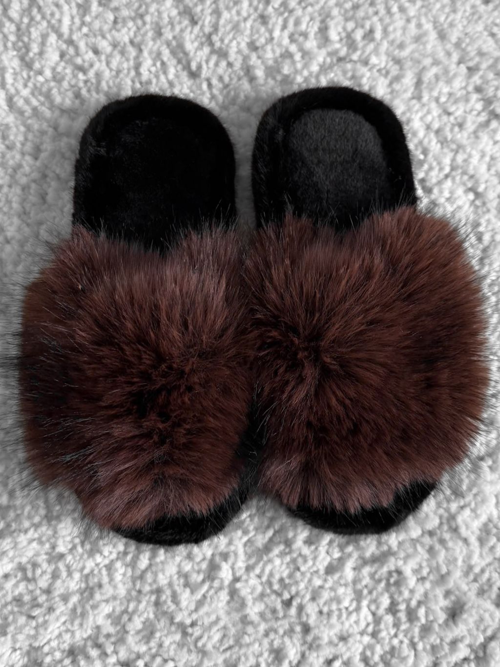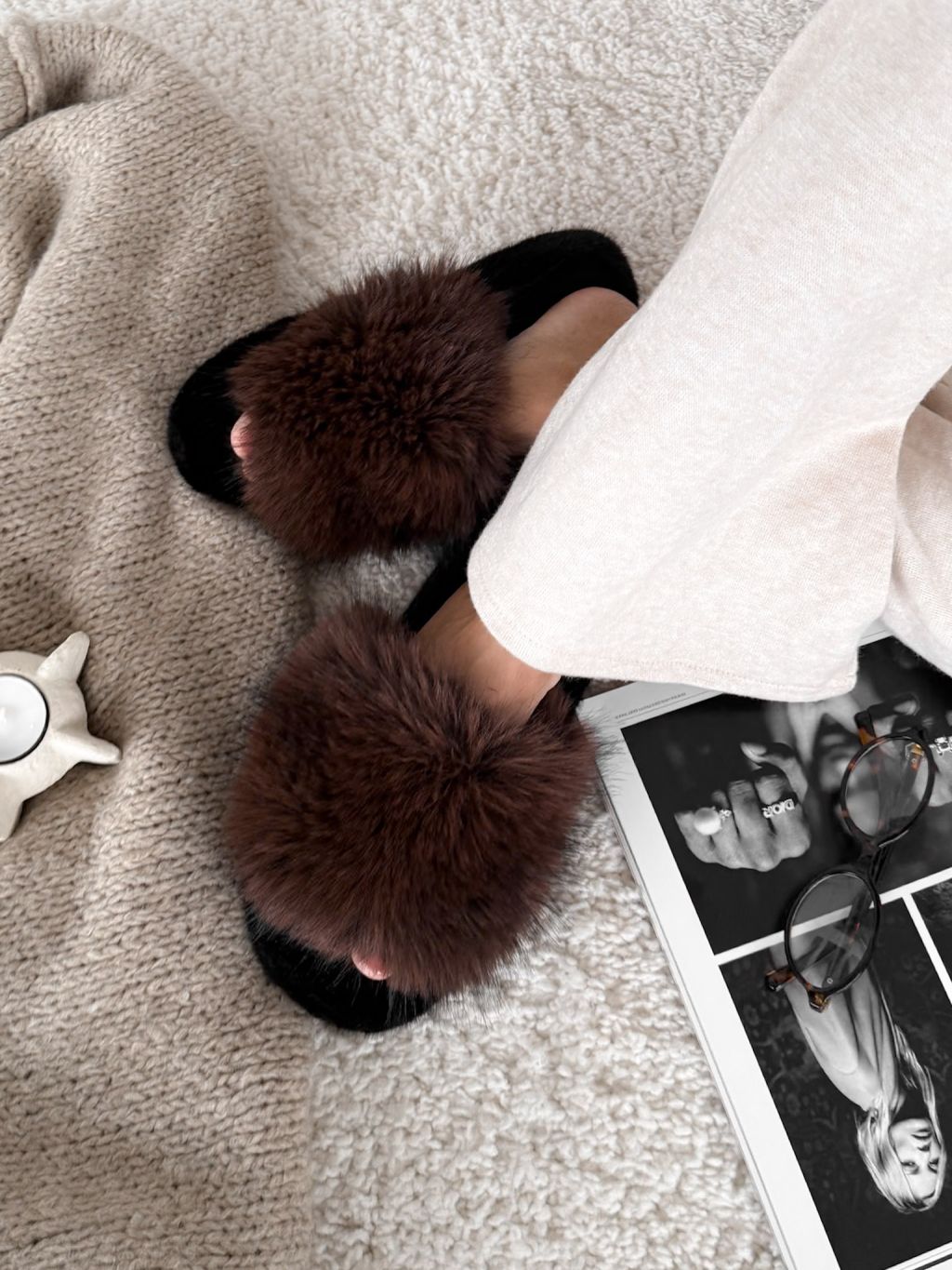 Hnedé domáce huňaté šľapky FURLUNY s kožúškom