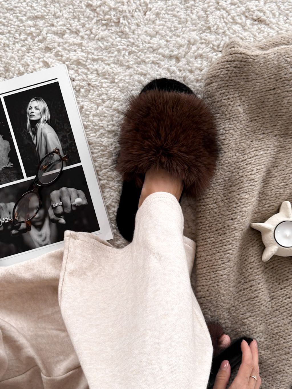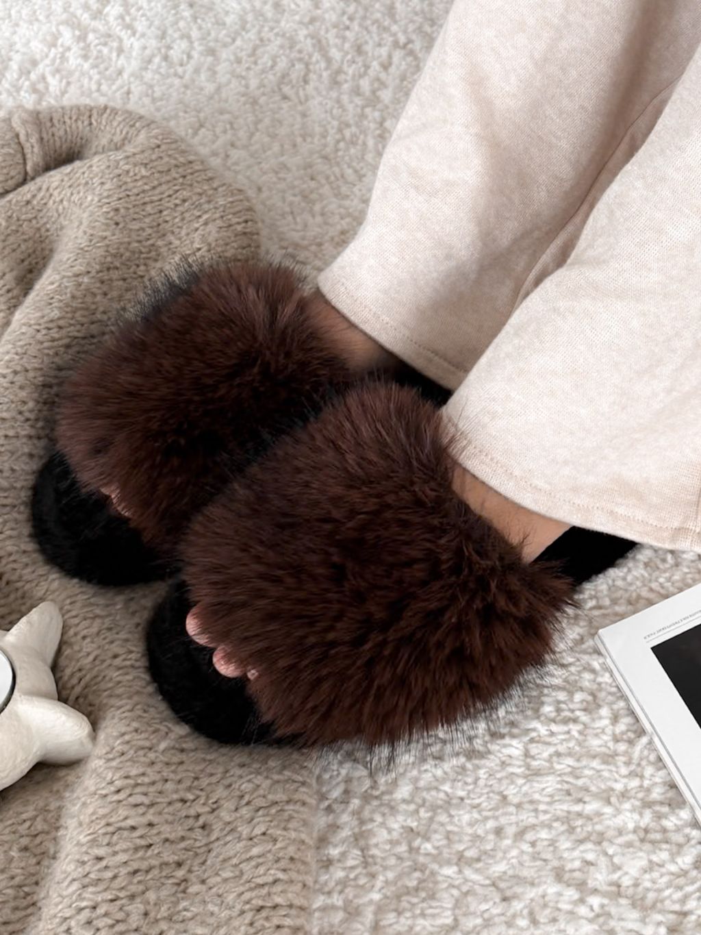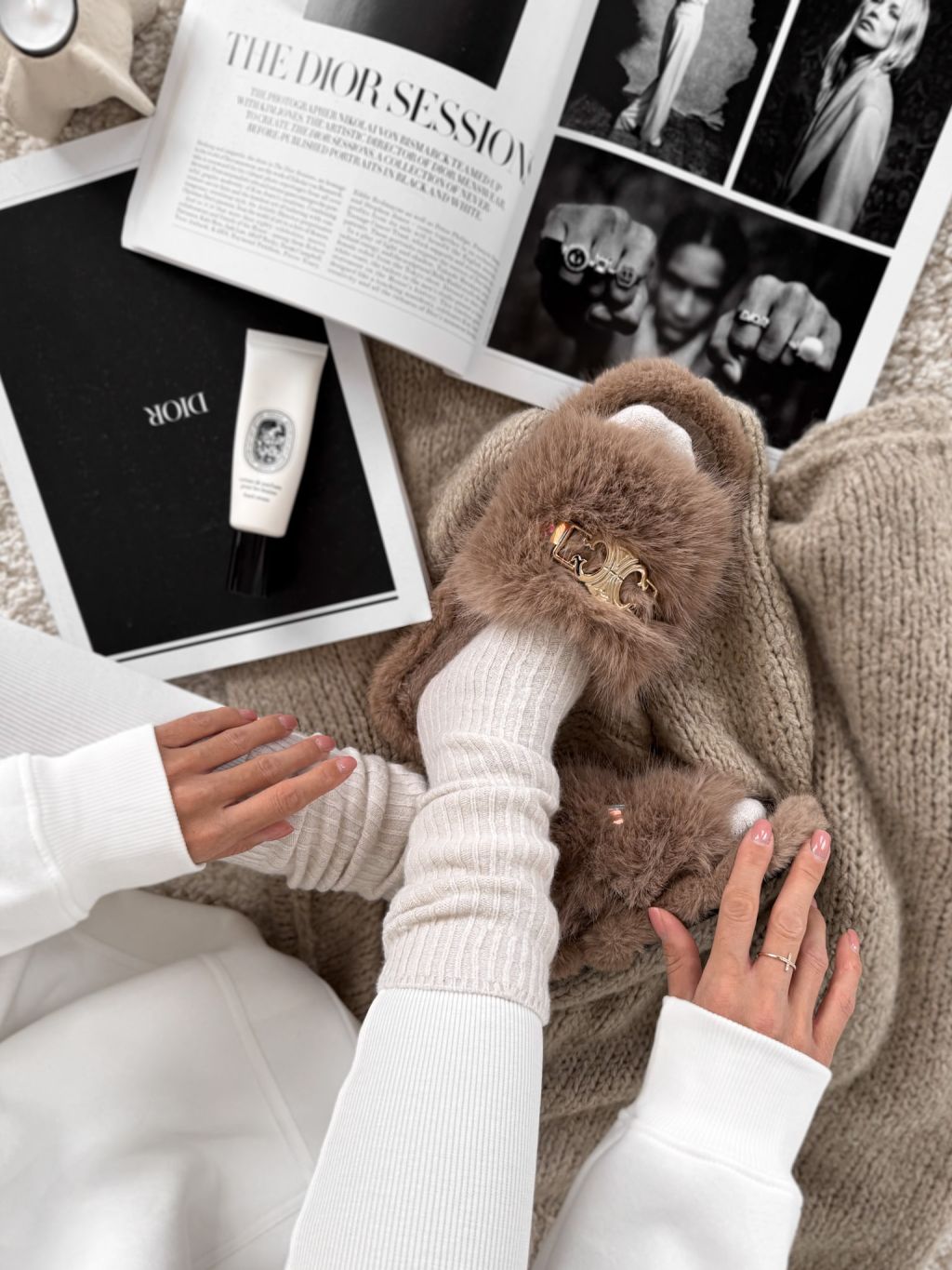 Hnedé domáce huňaté šľapky FURLUNY s kožúškom