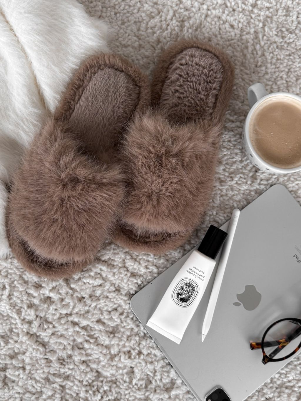 Hnedé huňaté šľapky PUFFY