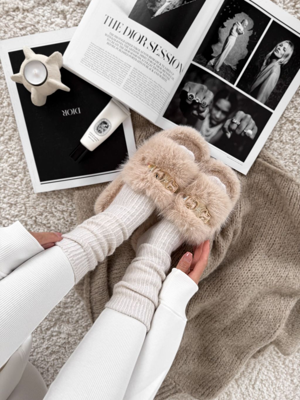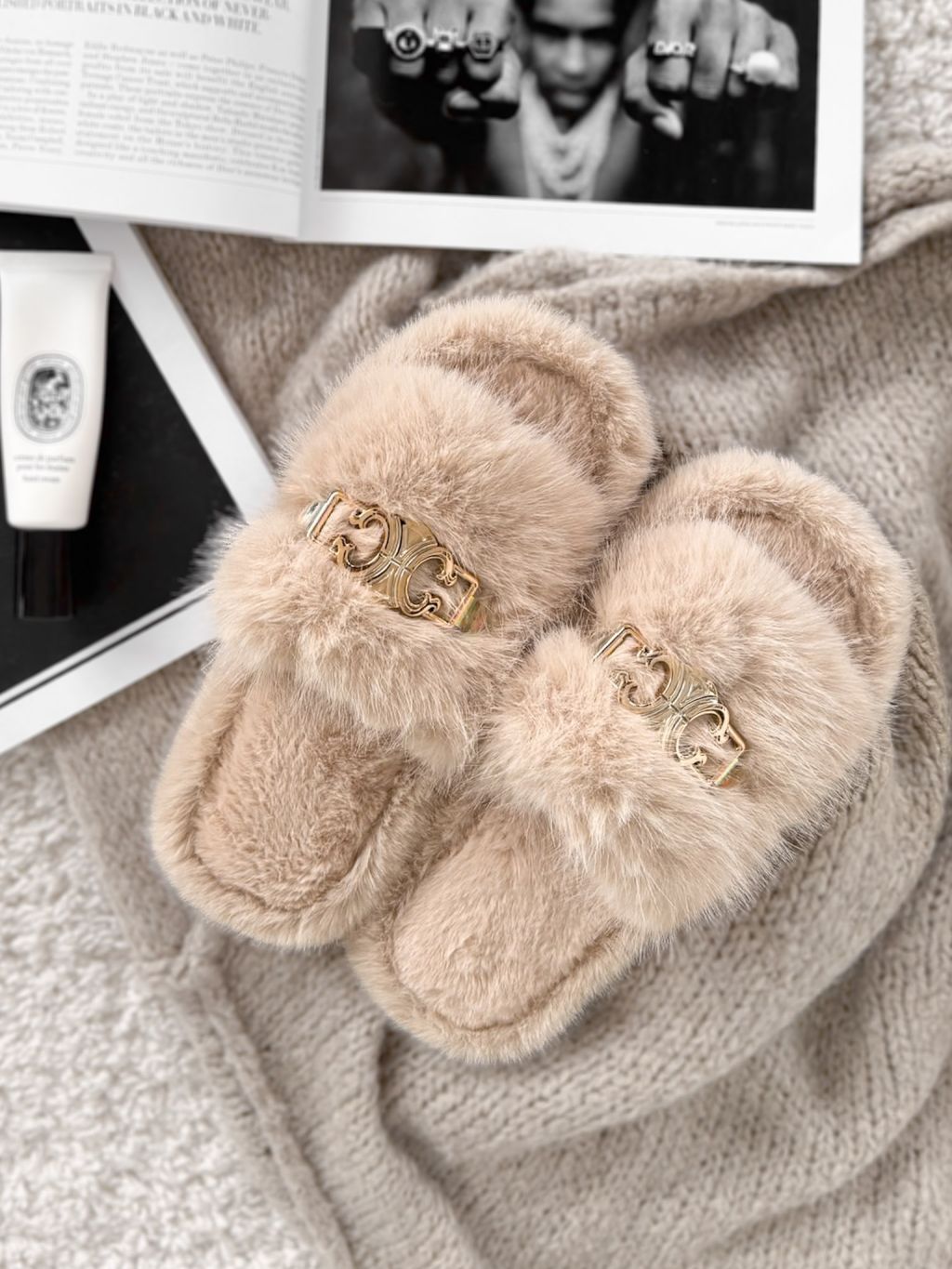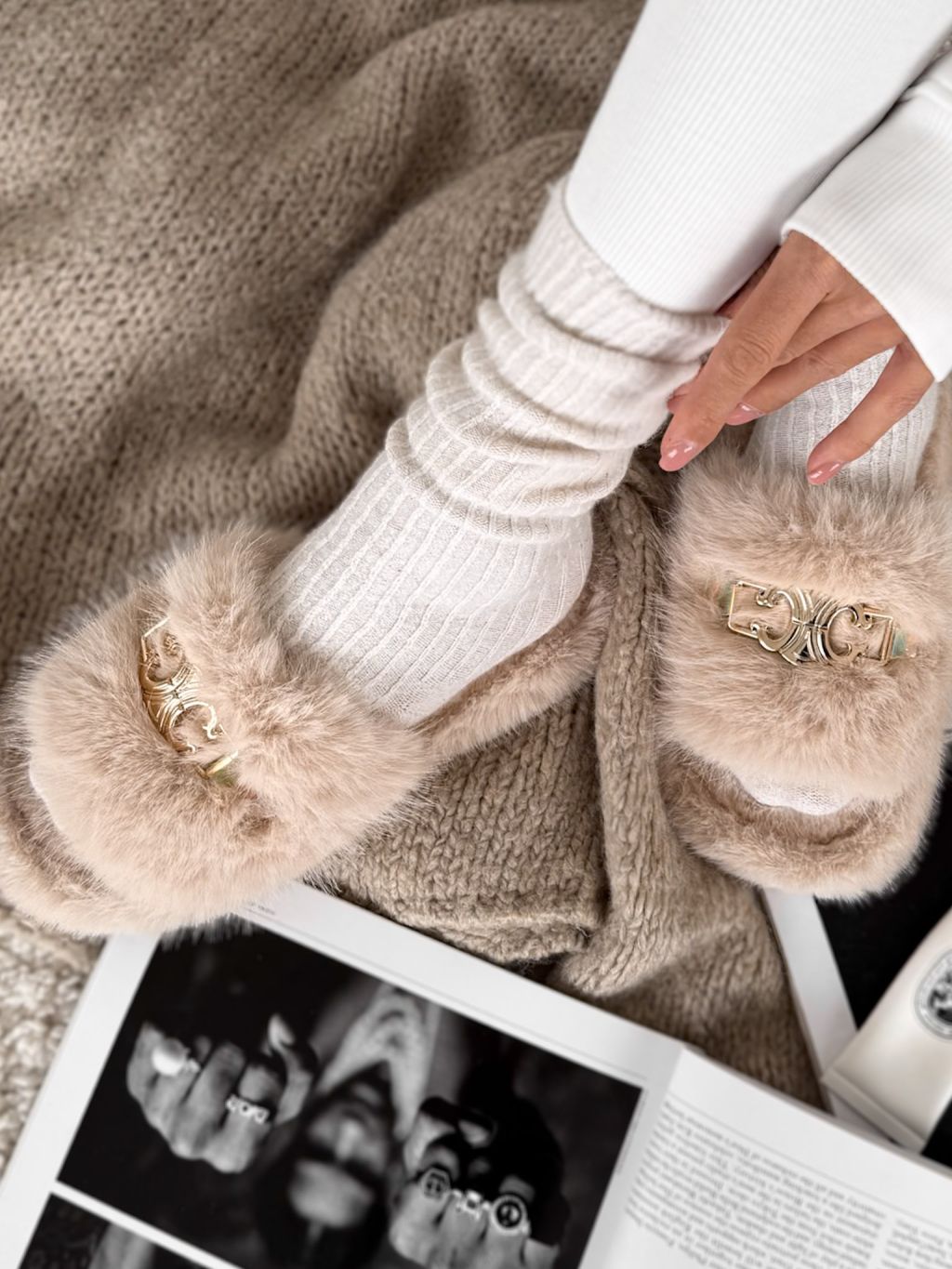 Krémové huňaté domáce šľapky SOFTIES s ozdobou