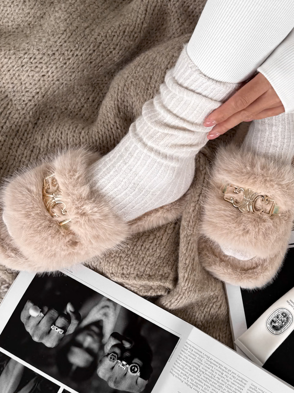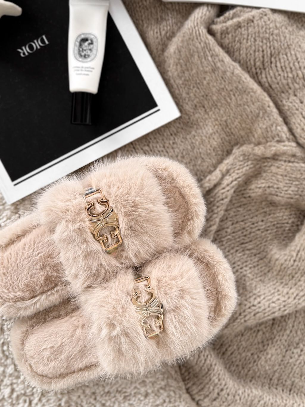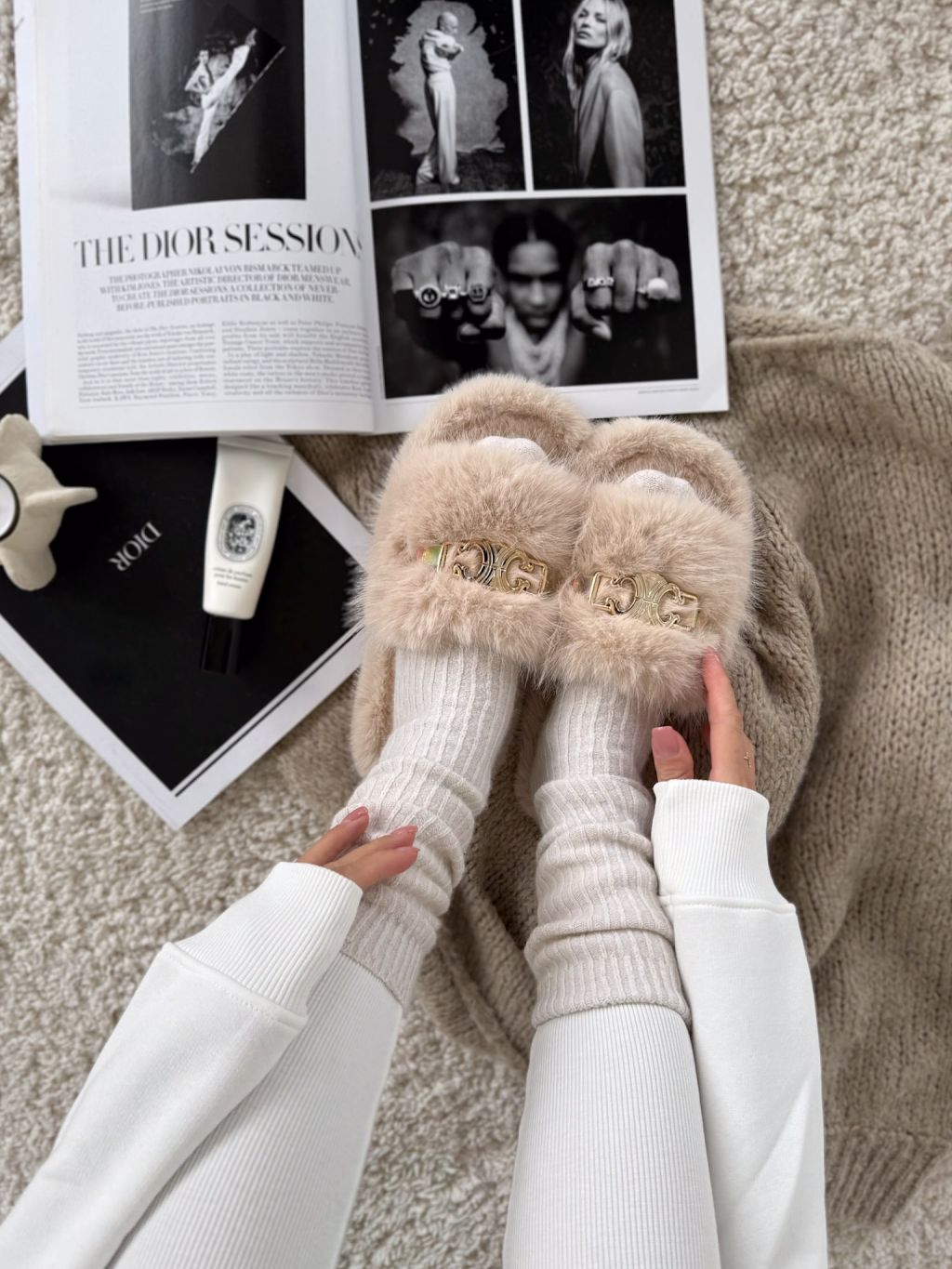 Krémové huňaté domáce šľapky SOFTIES s ozdobou