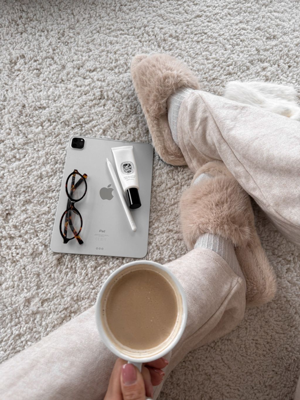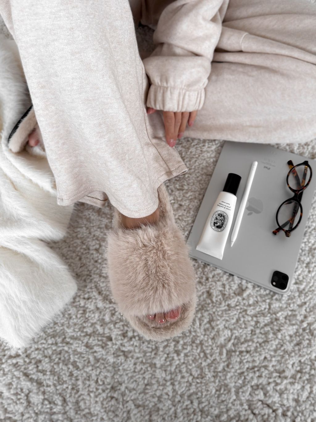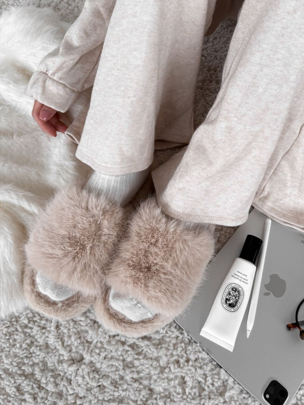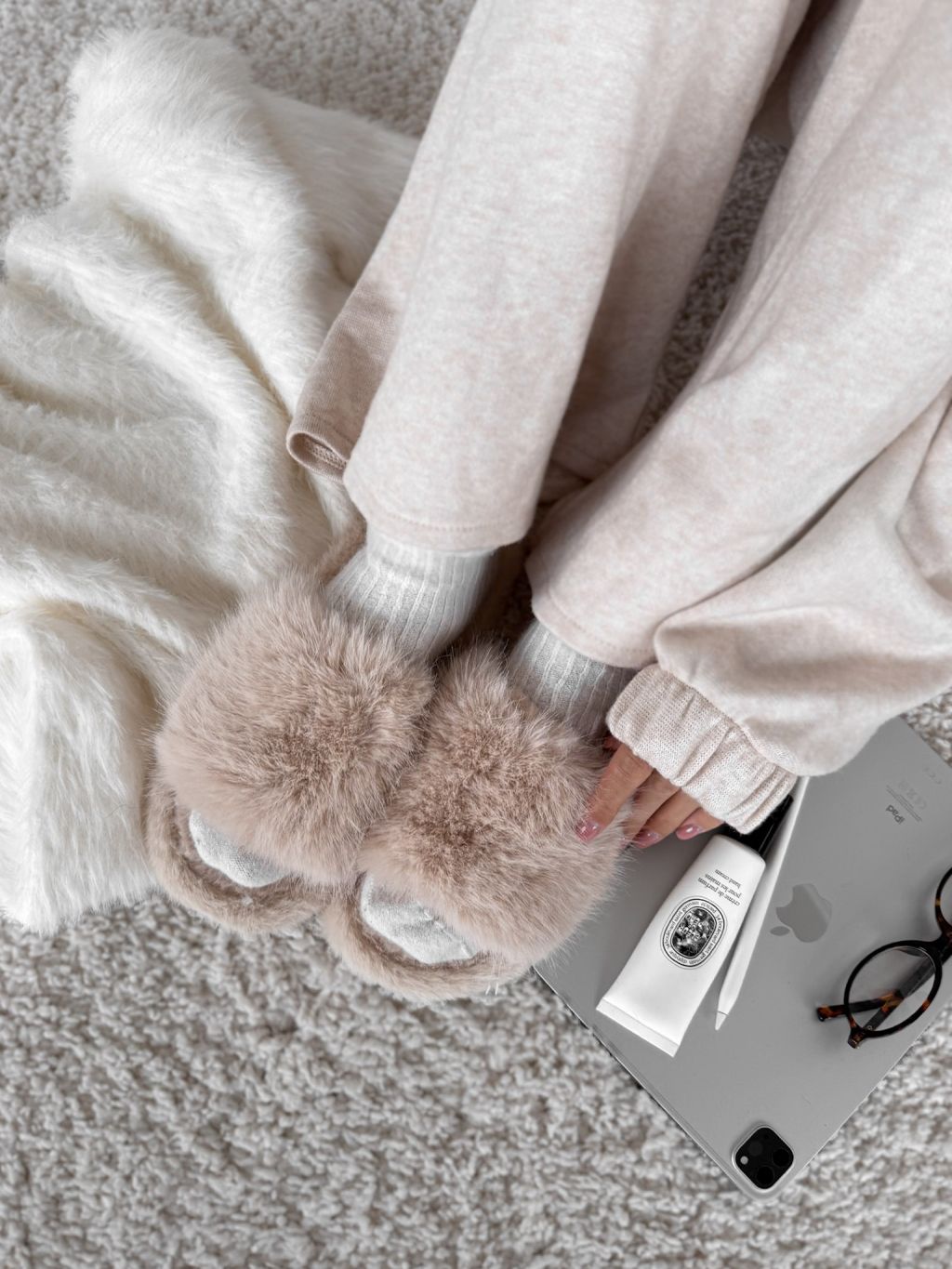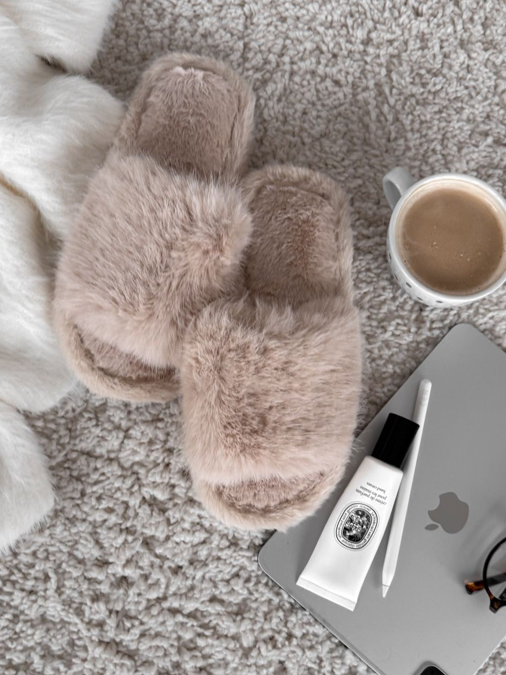 Krémové huňaté šľapky PUFFY