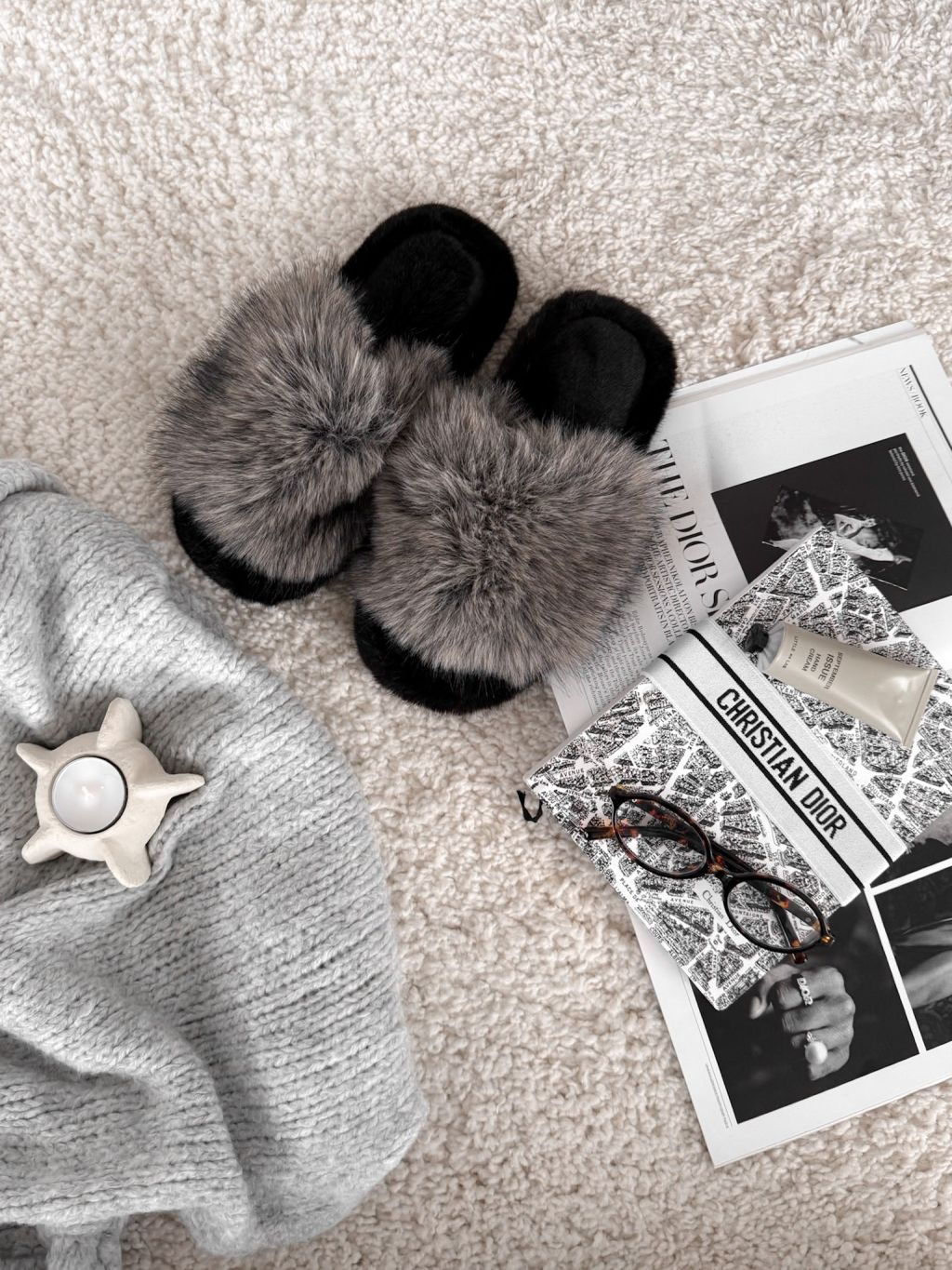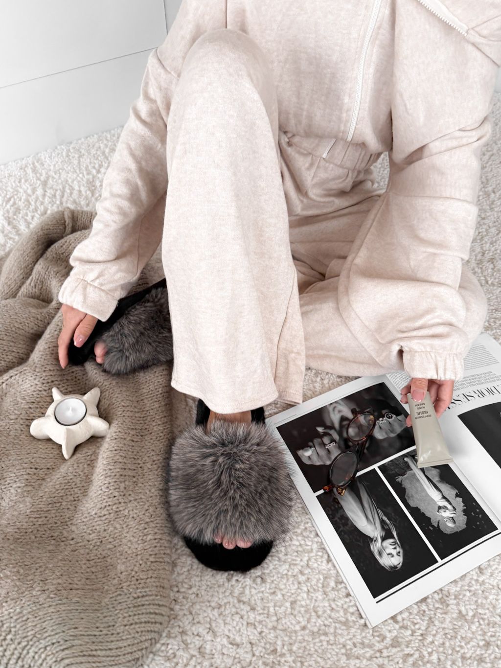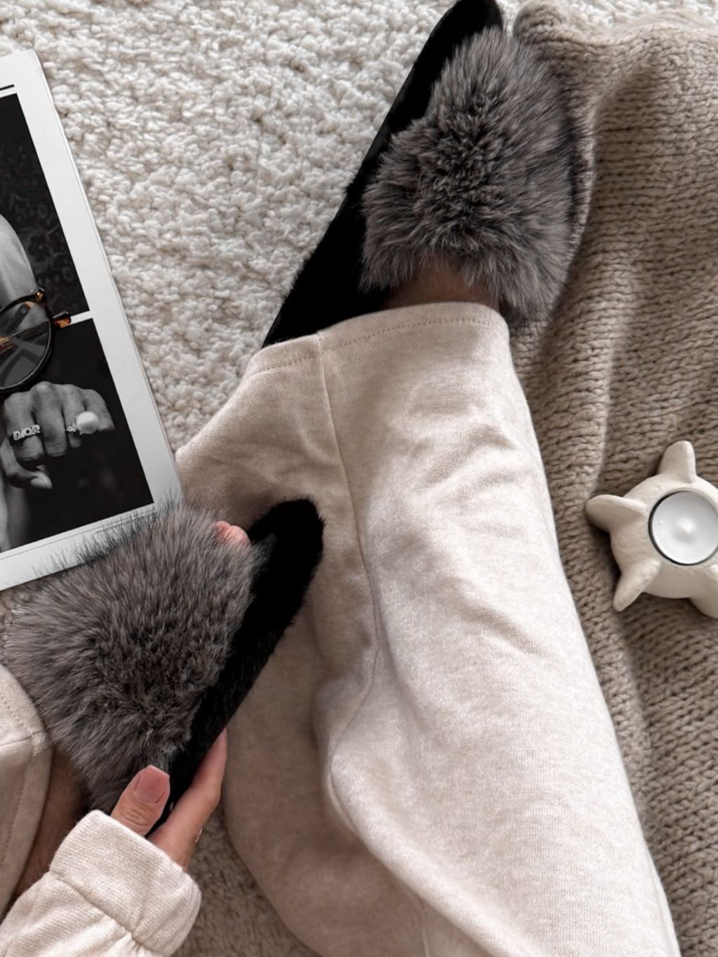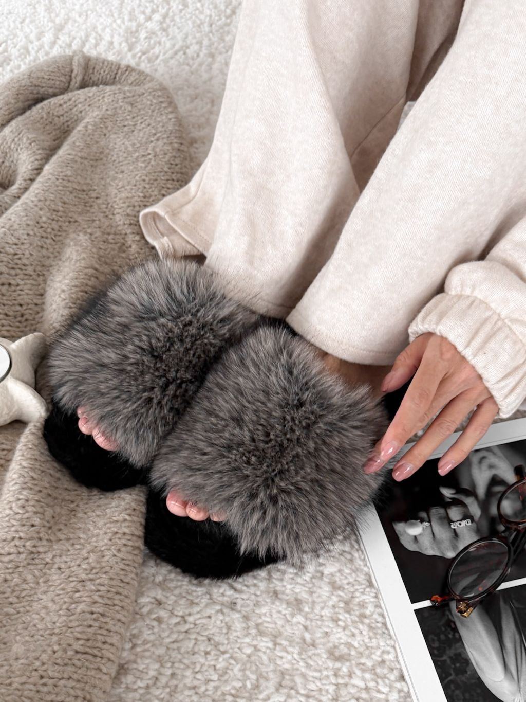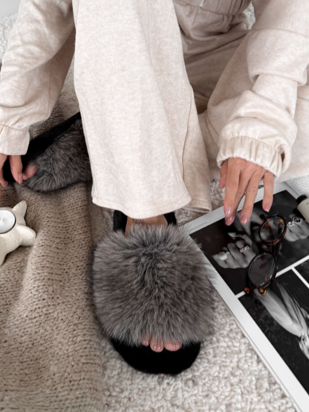 Šedé huňaté domáce šľapky FURLUNY s kožúškom