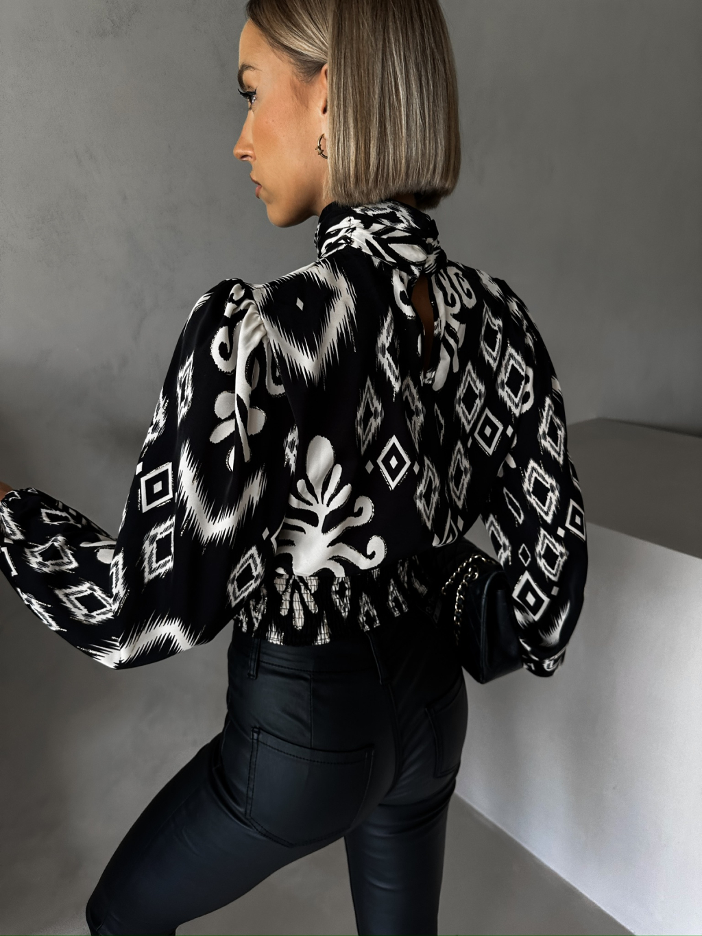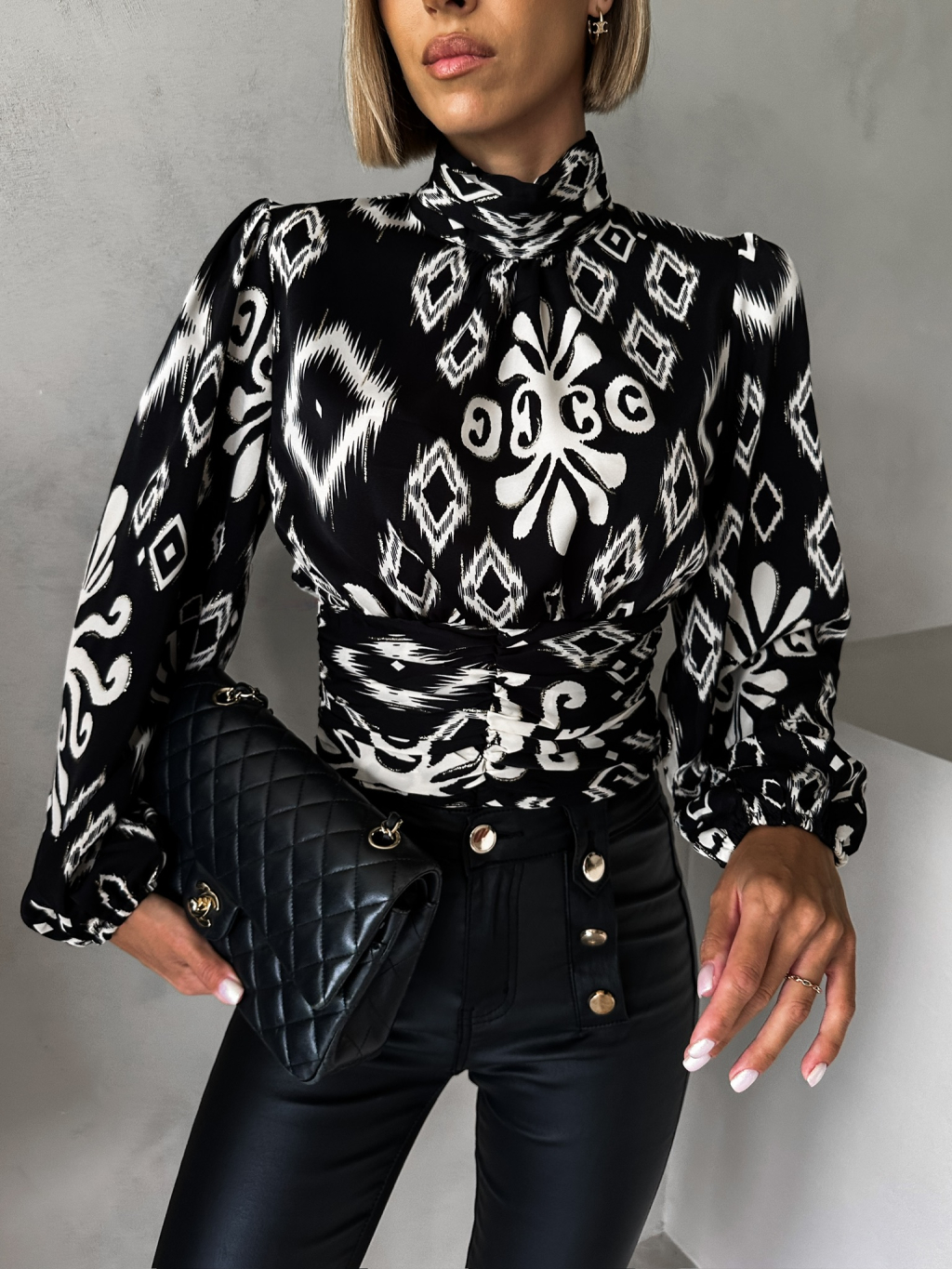 Čierna elegantná blúzka LEXIA s ornamentmi