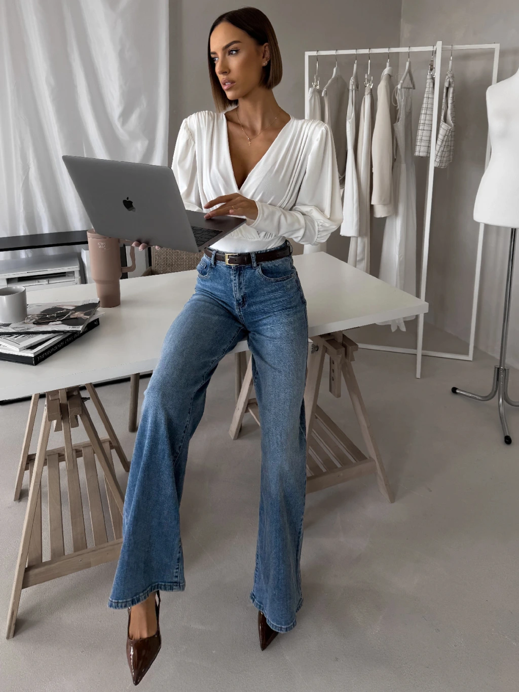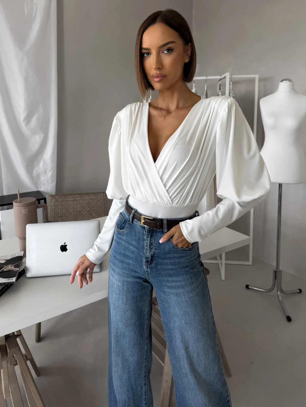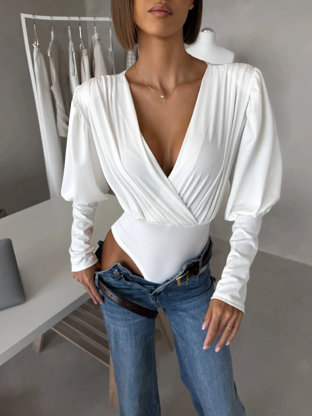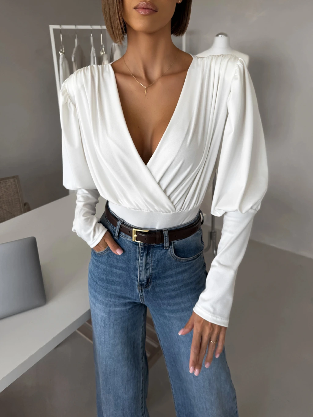 Biele elegantné body KORBIX s výstrihom