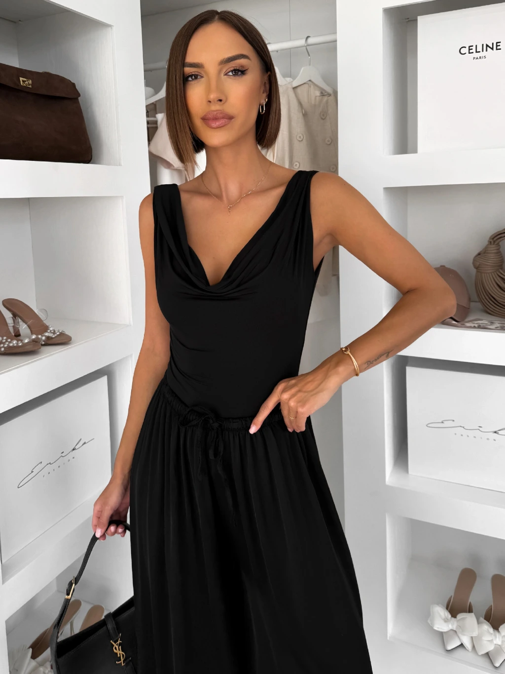 Čierne elegantné body AMETIS bez rukávov s výstrihom