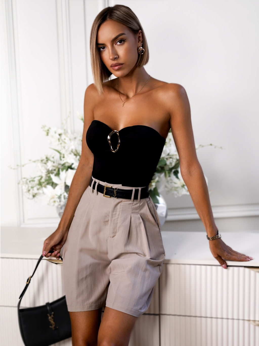 Čierne elegantné body MOGAS bez ramienok