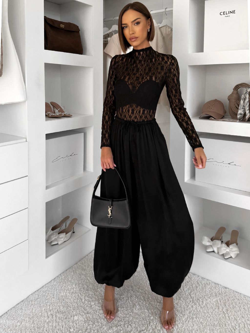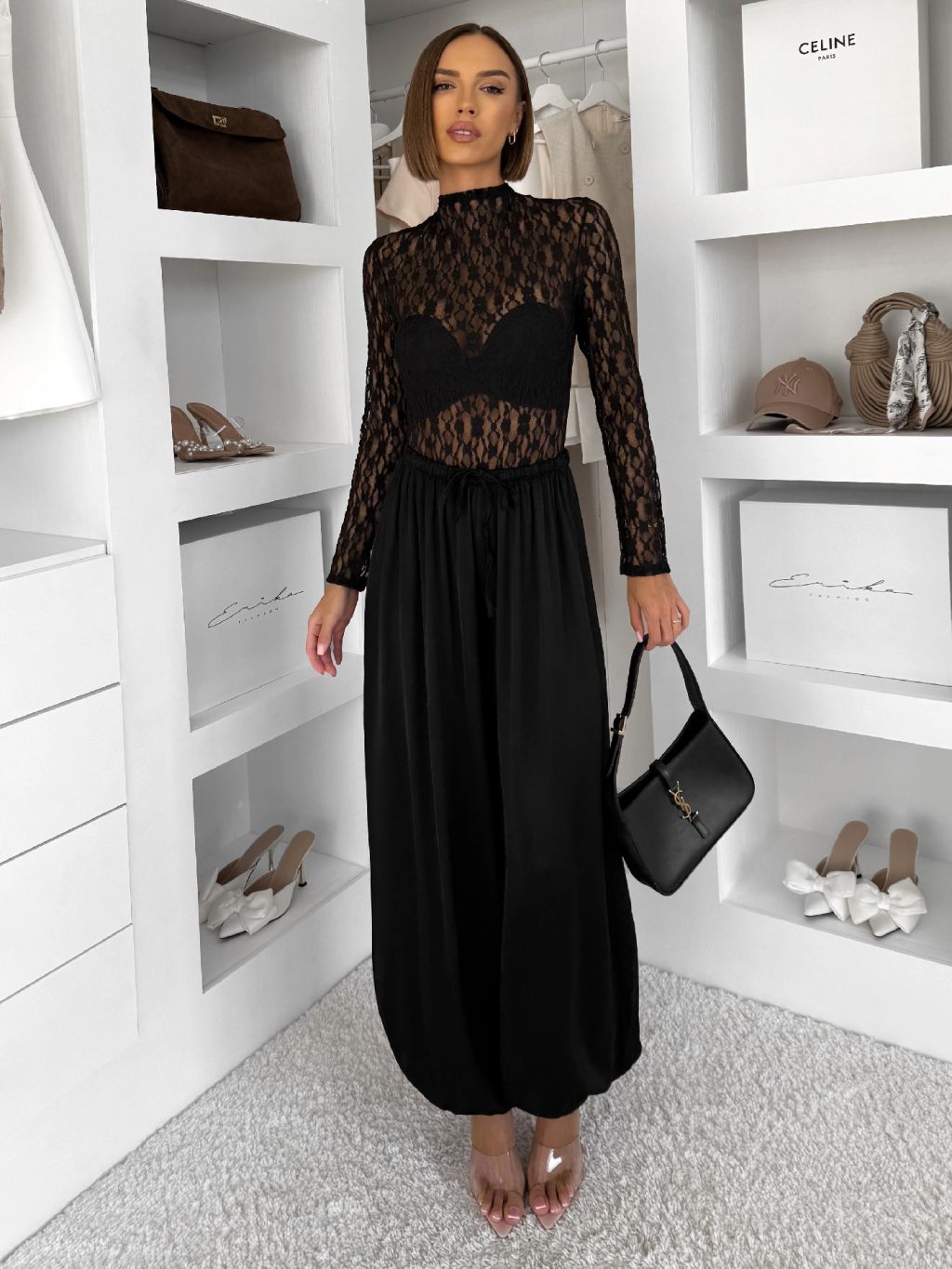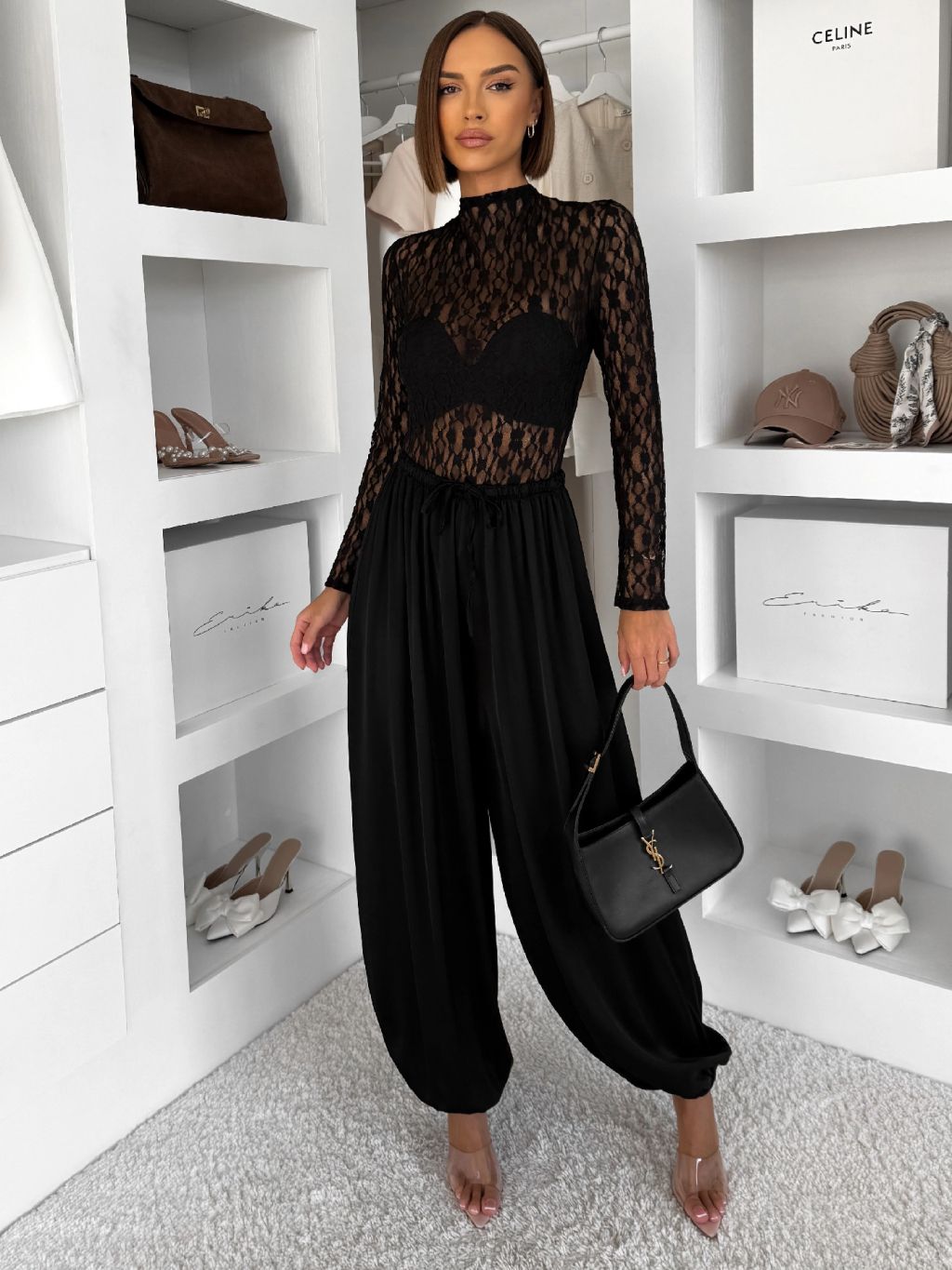 Čierne elegantné priehľadné krajkové body TARELI