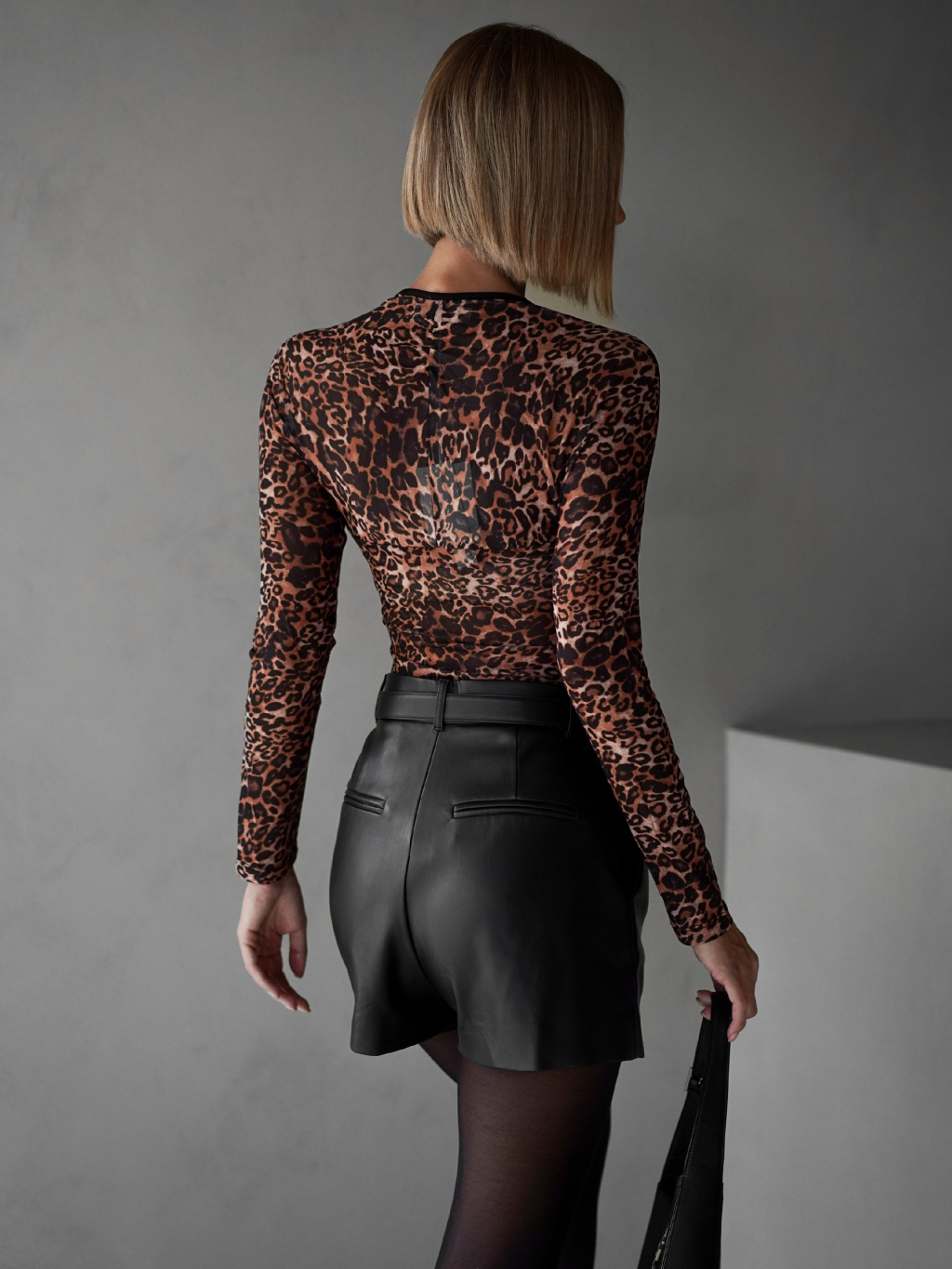 Leopardie korzetové body OLAVAT s dlhým rukávom