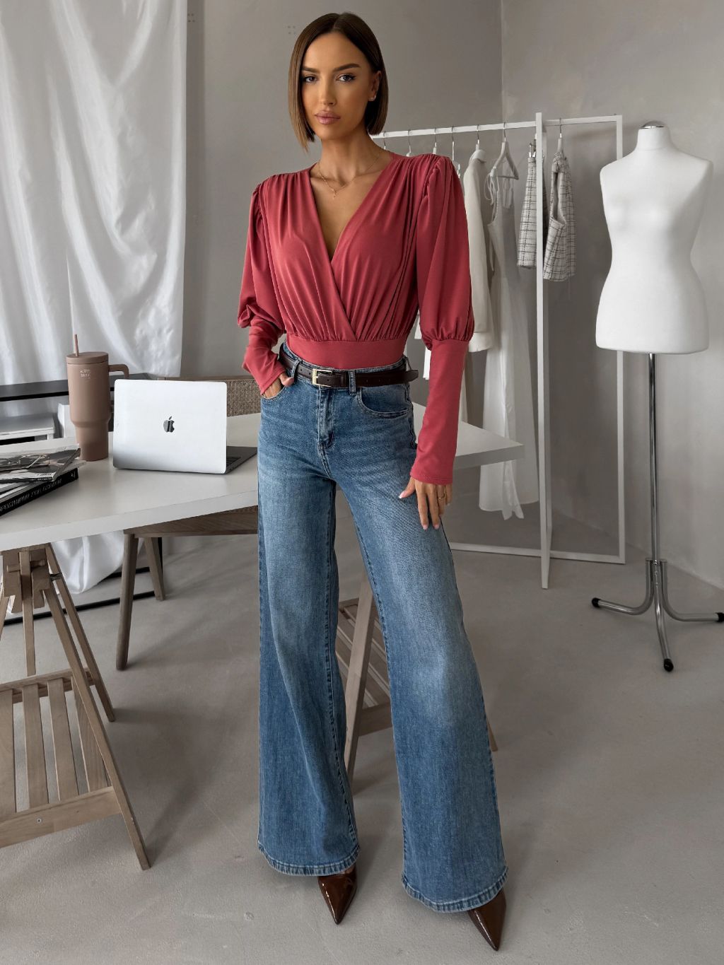Lososové elegantné body KORBIX s výstrihom
