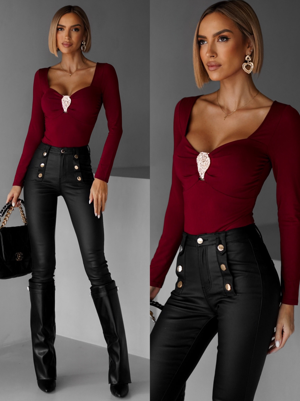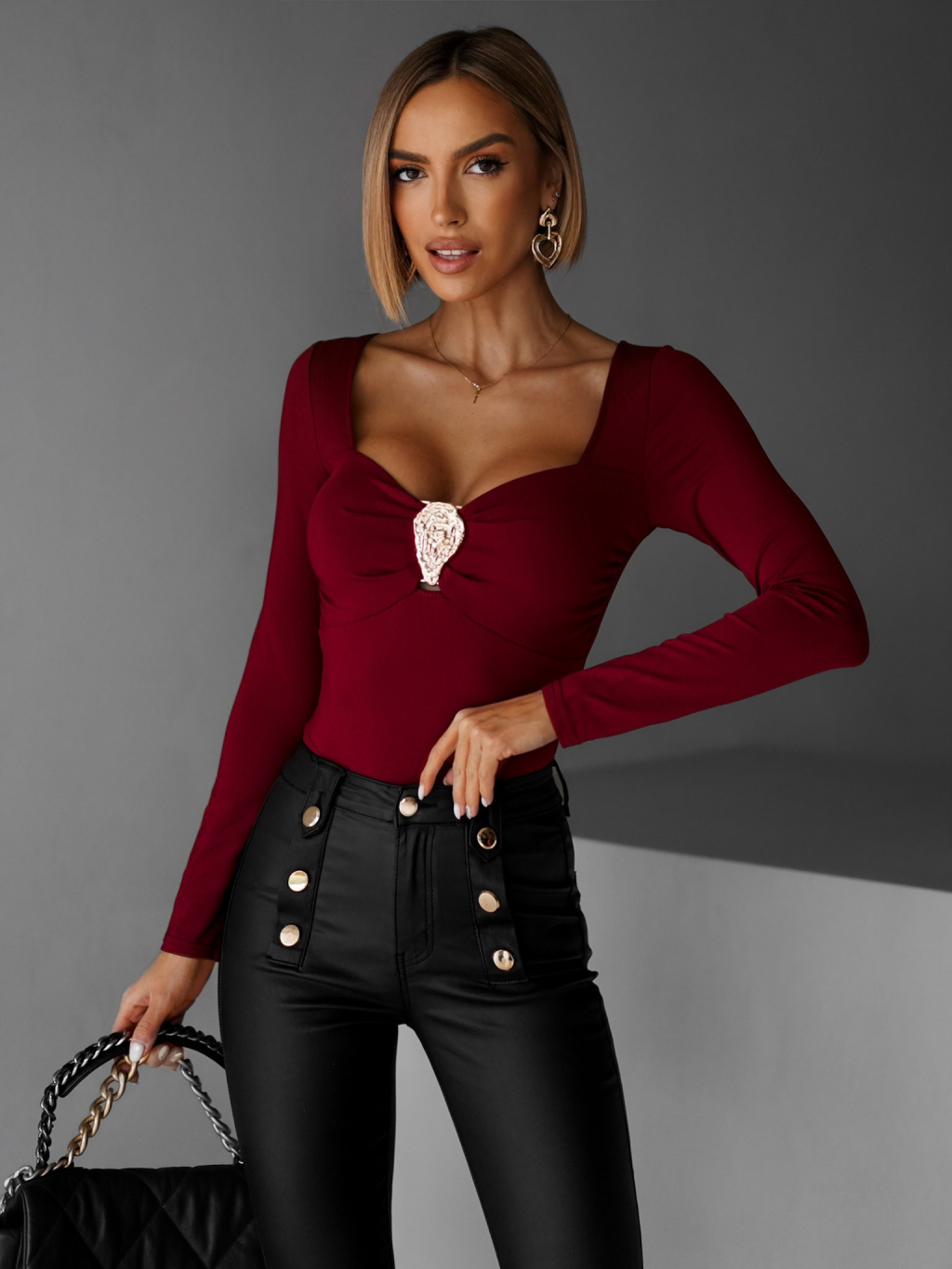 Vínové elegantné body CAPSON s výstrihom