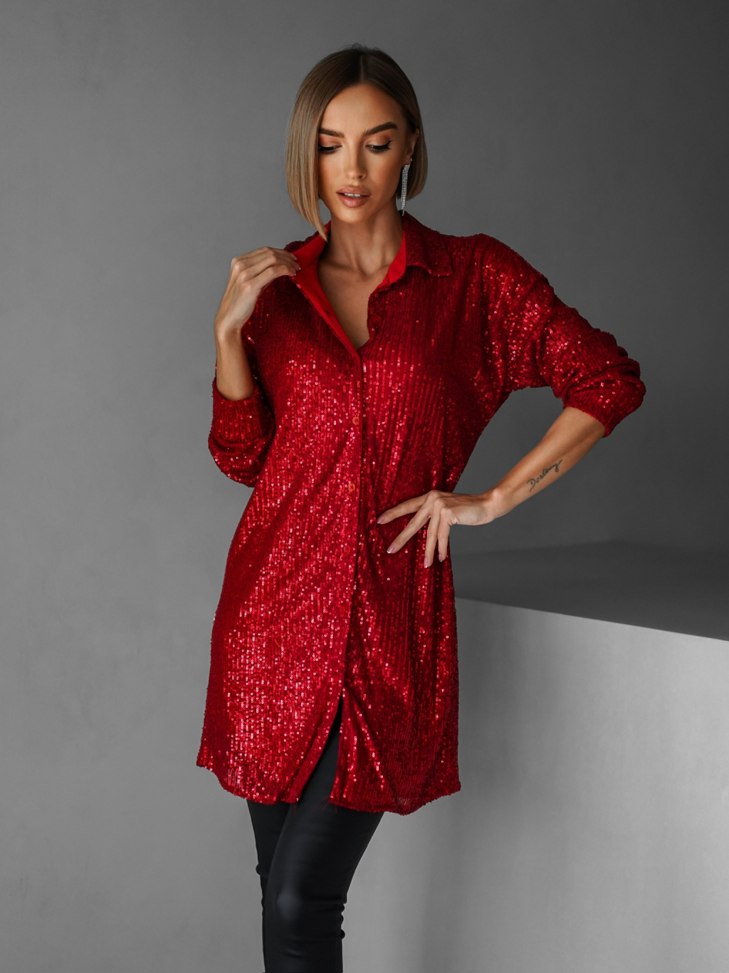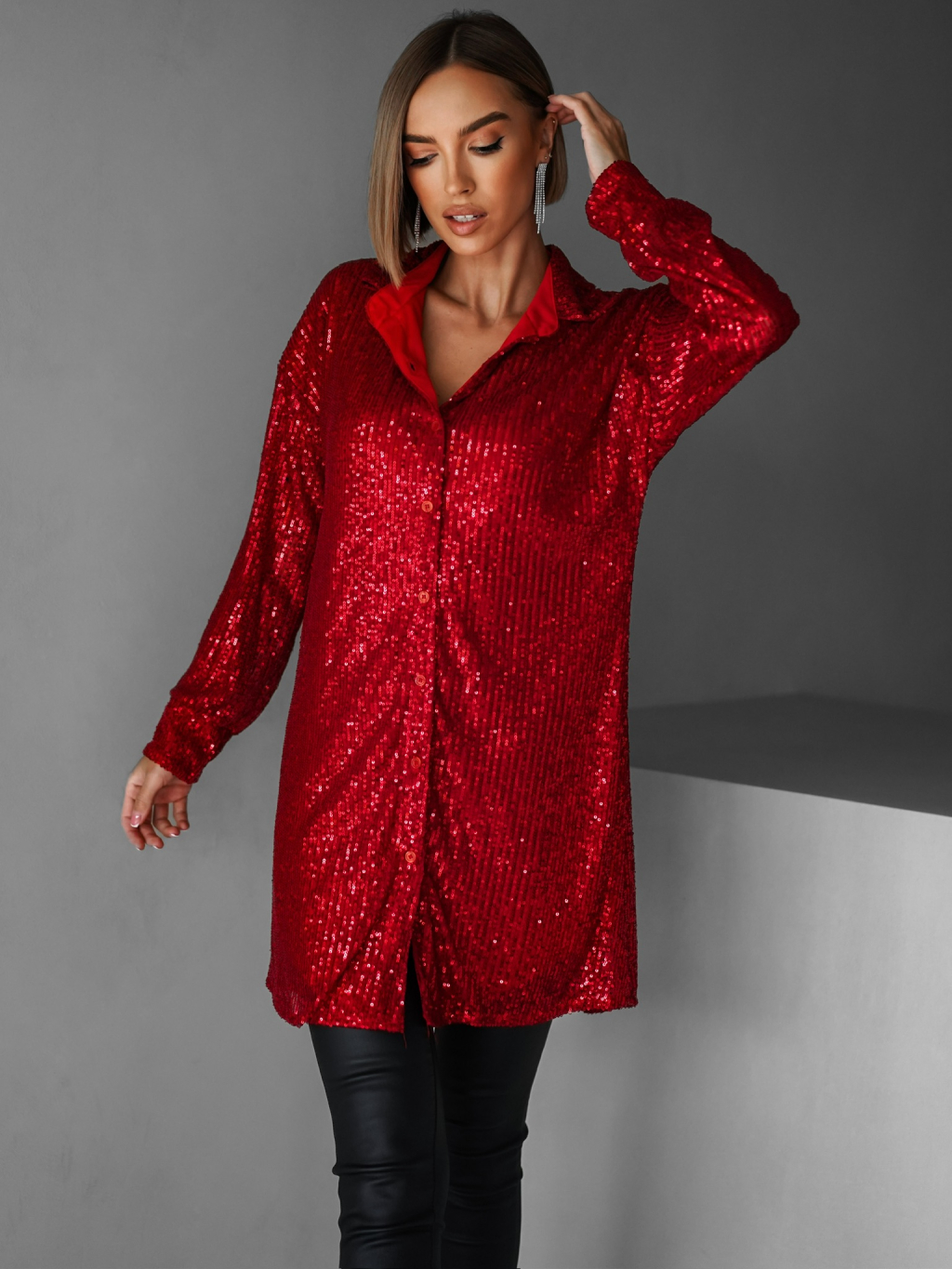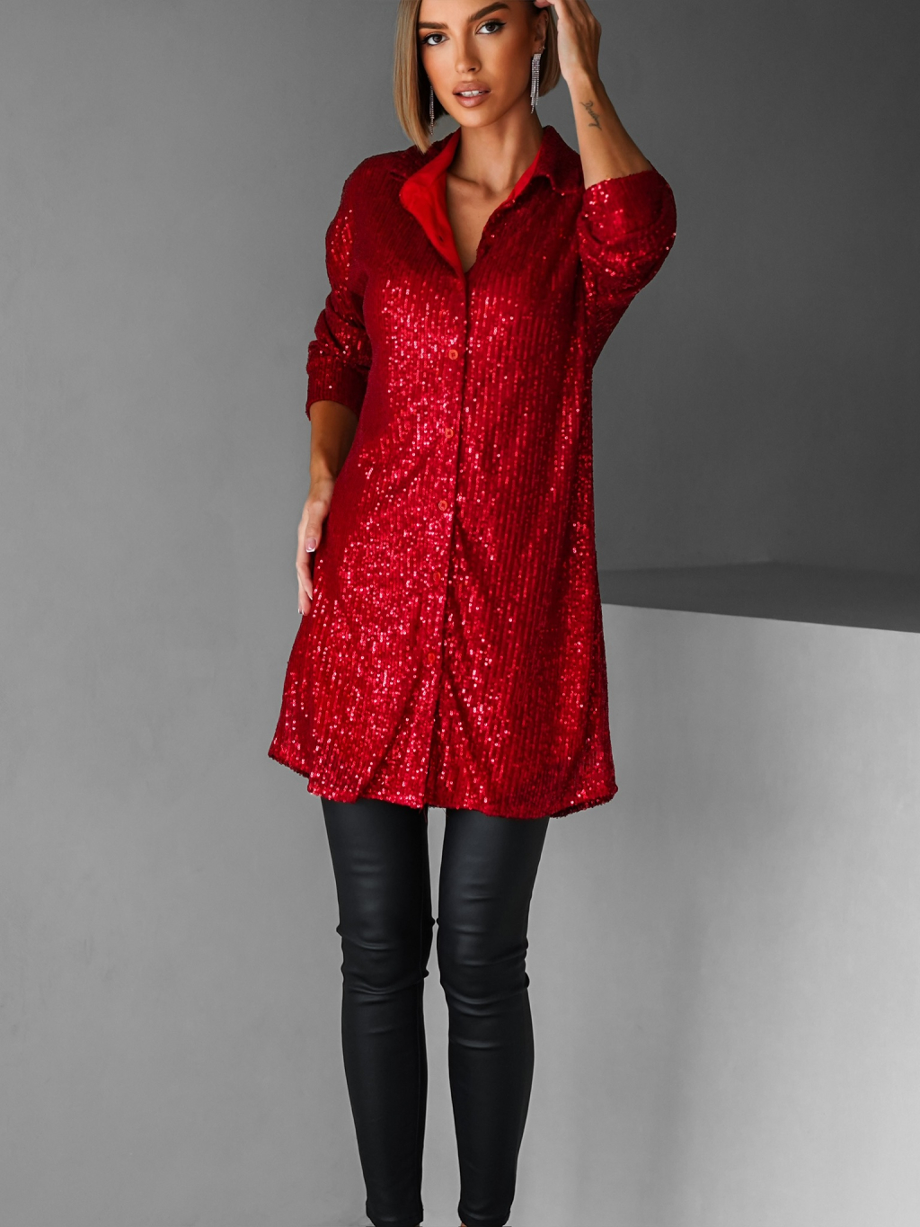 Červené flitrované košeľové šaty LEXURY na gombíky