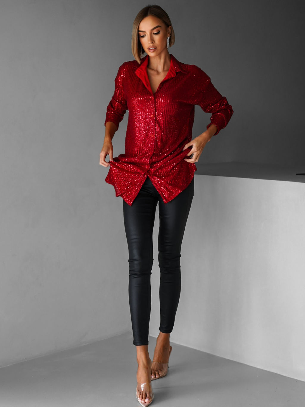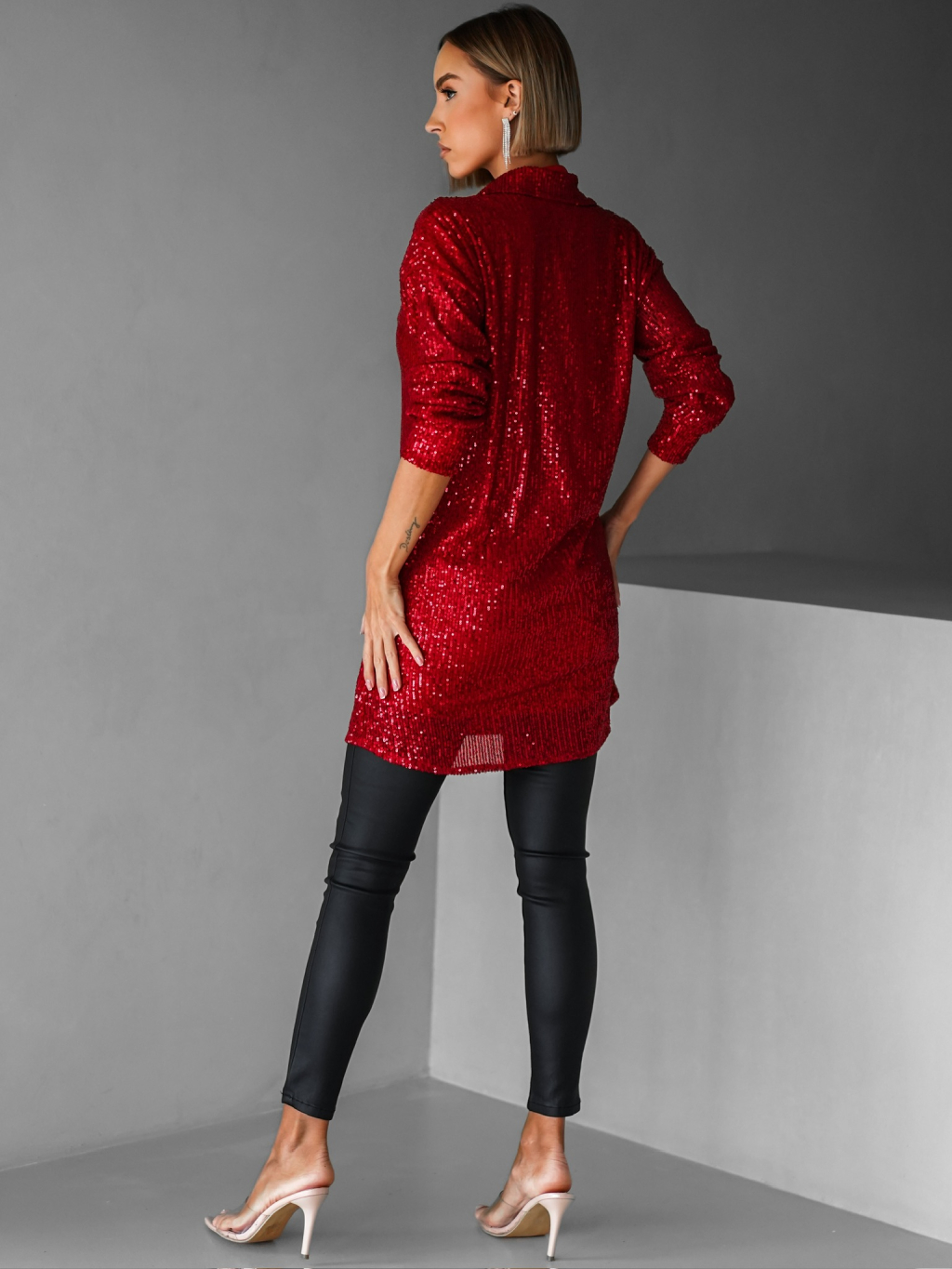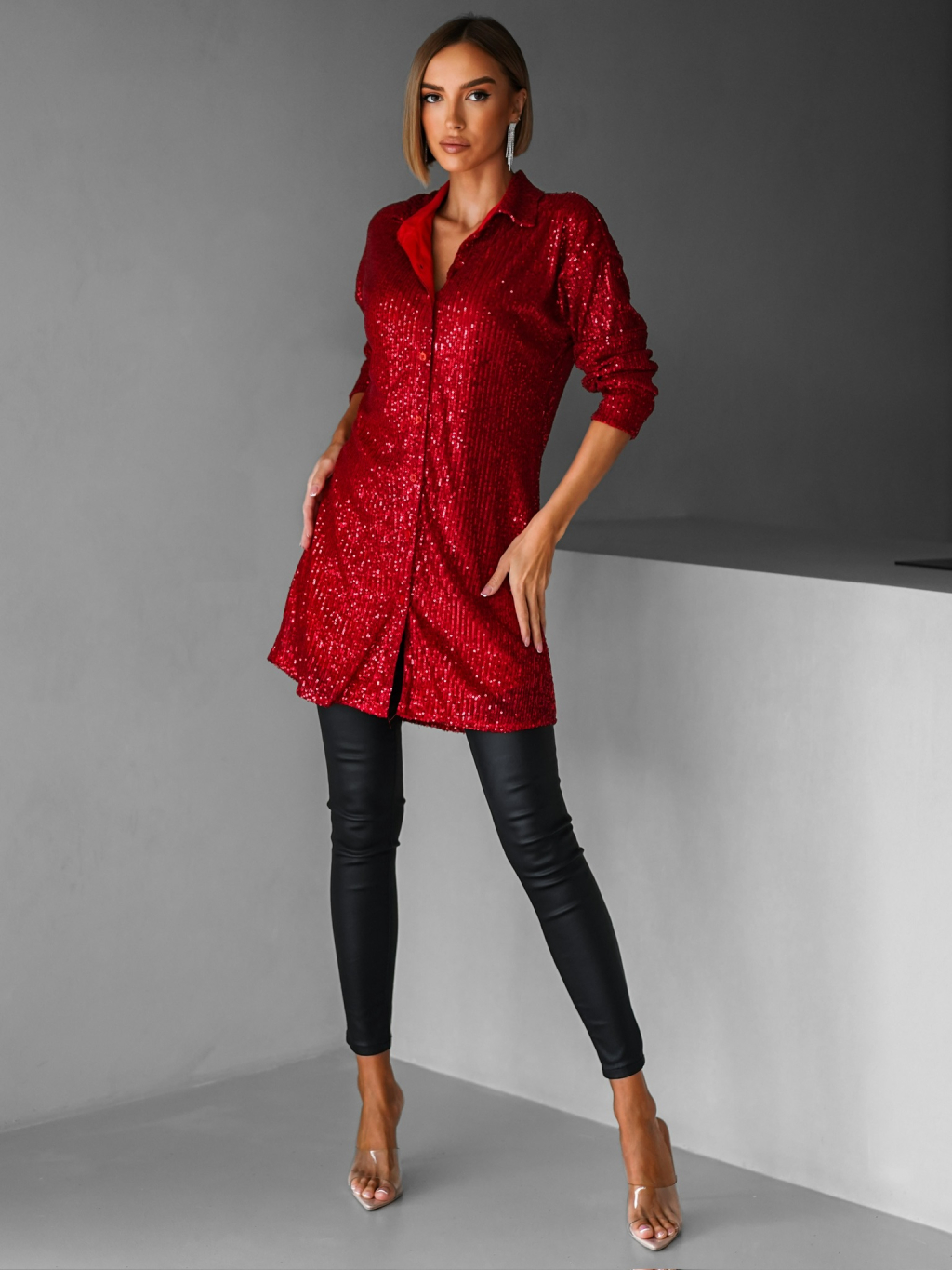 Červené flitrované košeľové šaty LEXURY na gombíky