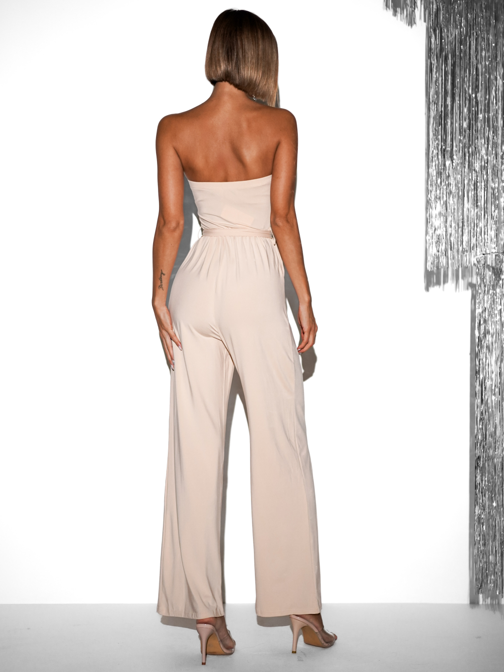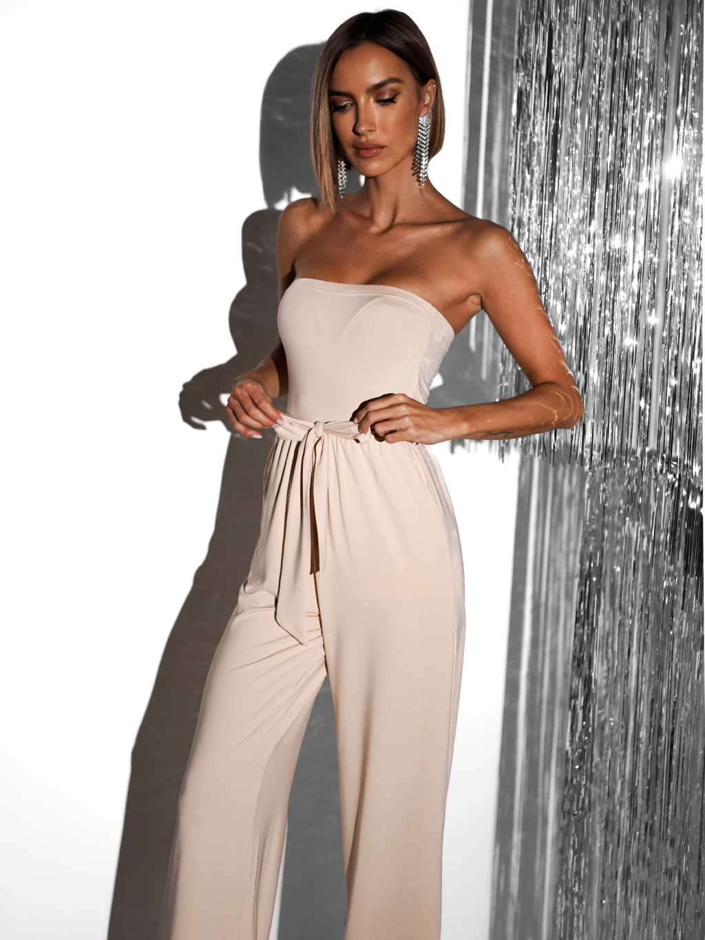 Krémový elegantný overal RALENTI na zaväzovanie