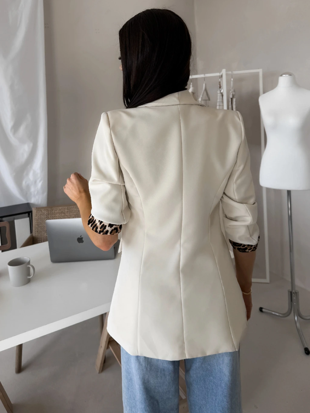Béžové elegantné vypasované sako ZAFINA s leopardným vzorom