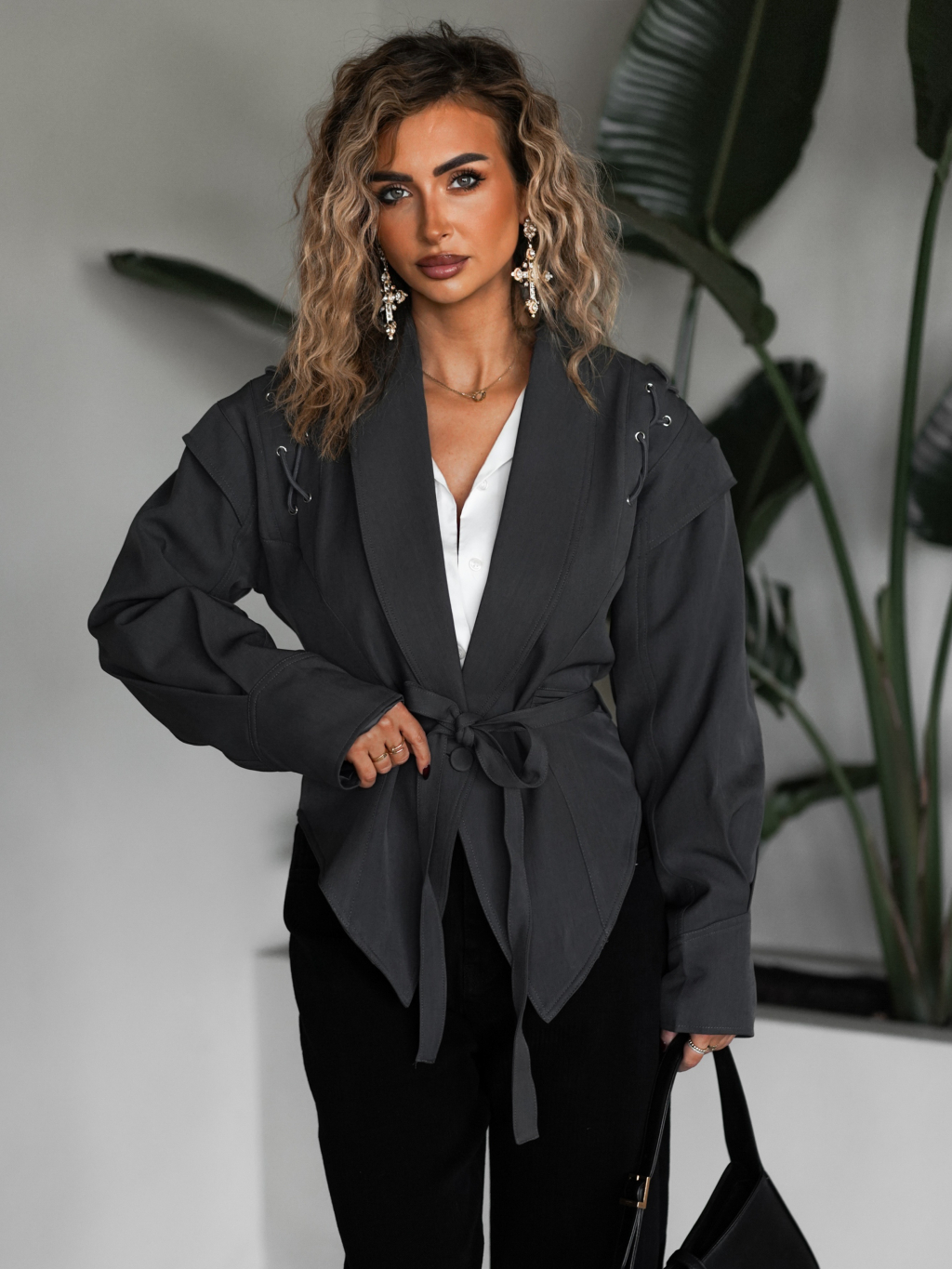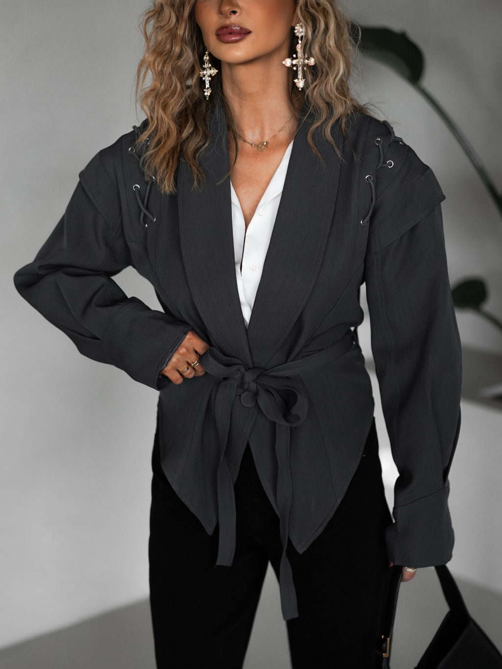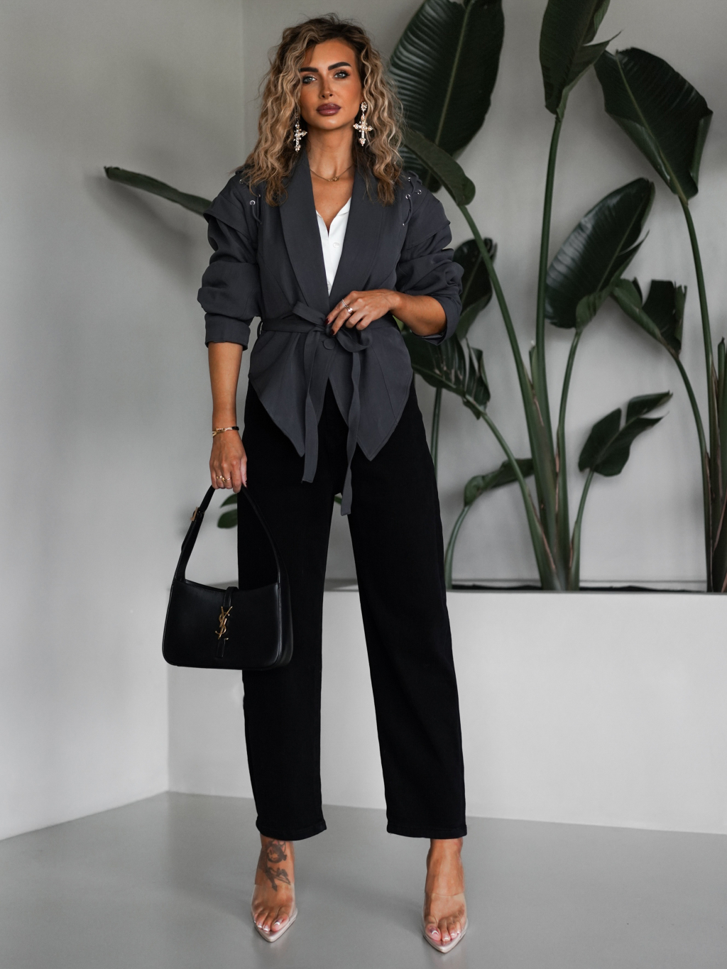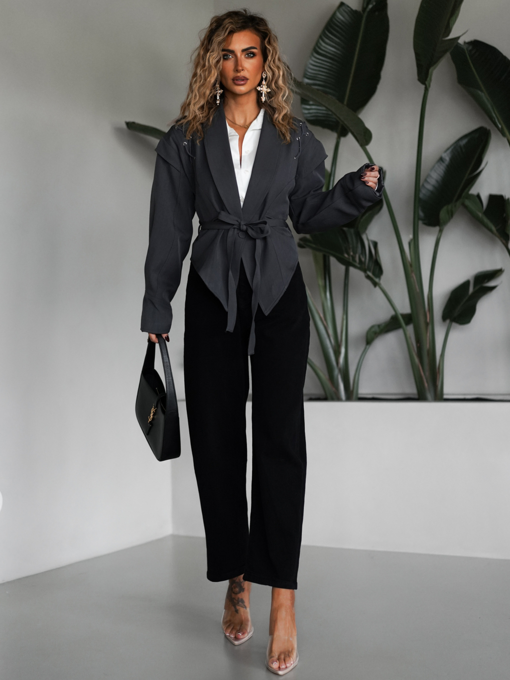 Šedé štýlové vypasované sako GIAMAN