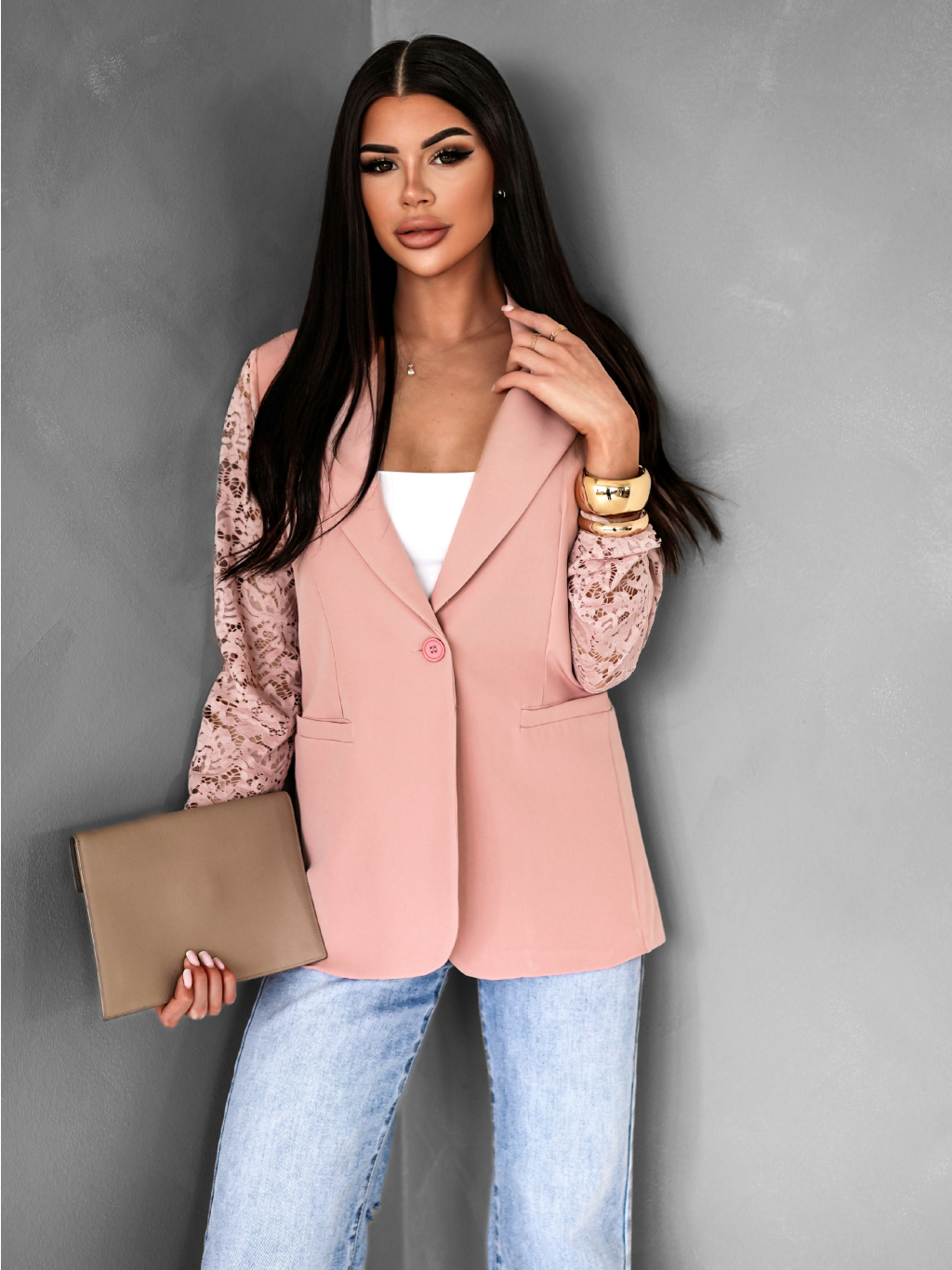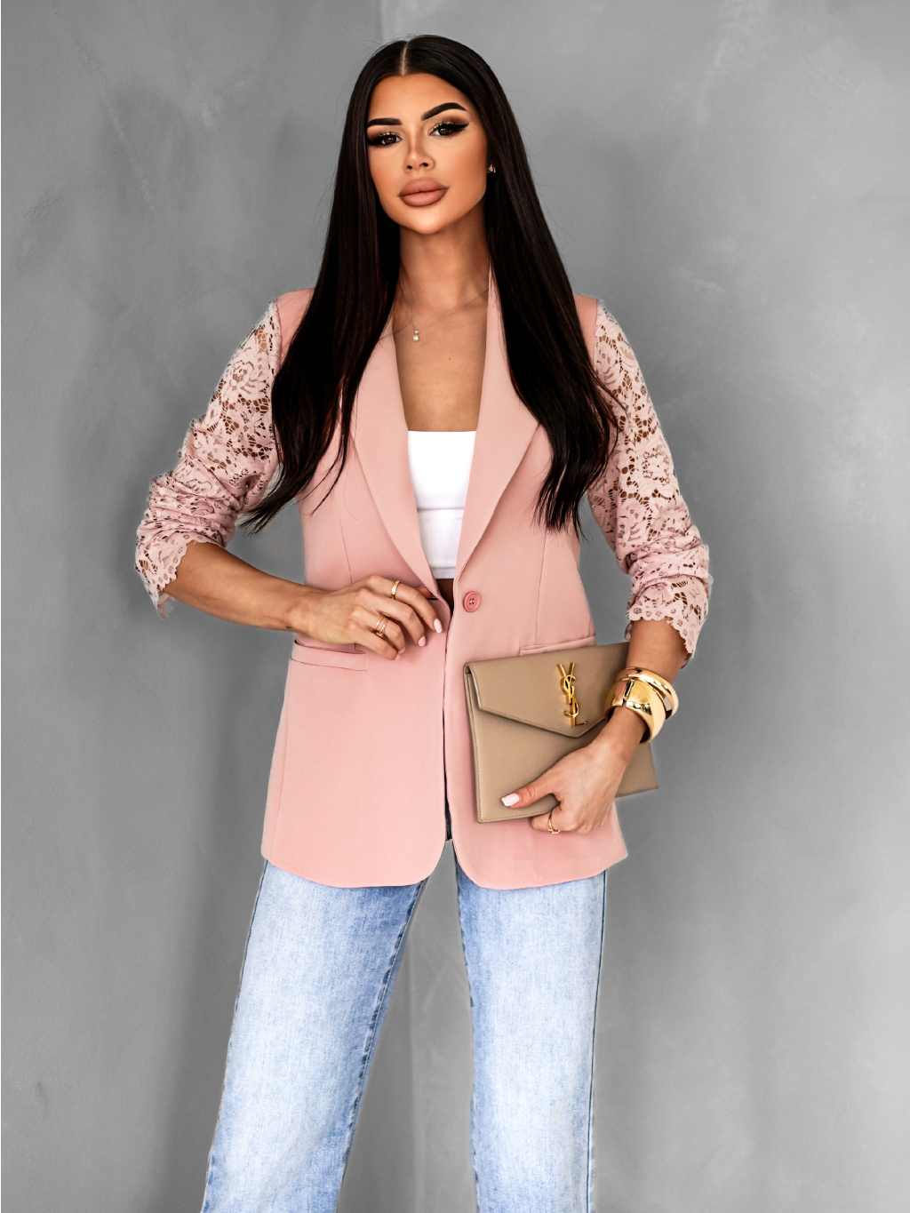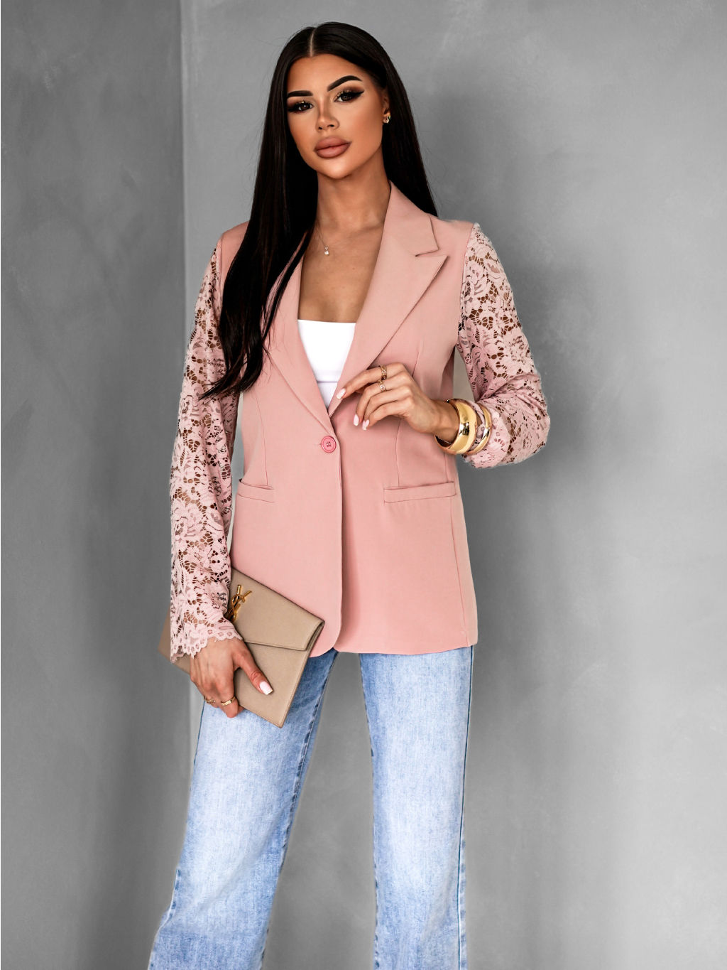 Staroružové elegantné sako APRILA s čipkovými rukávmi