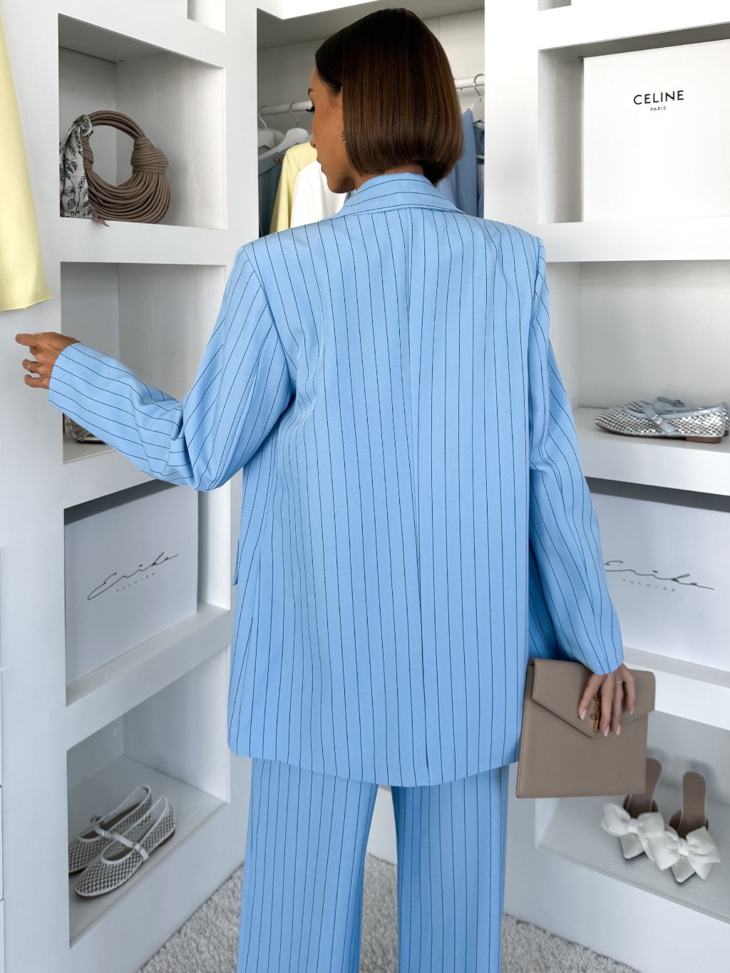 Svetlomodré elegantné pruhované oversize sako ORLENA
