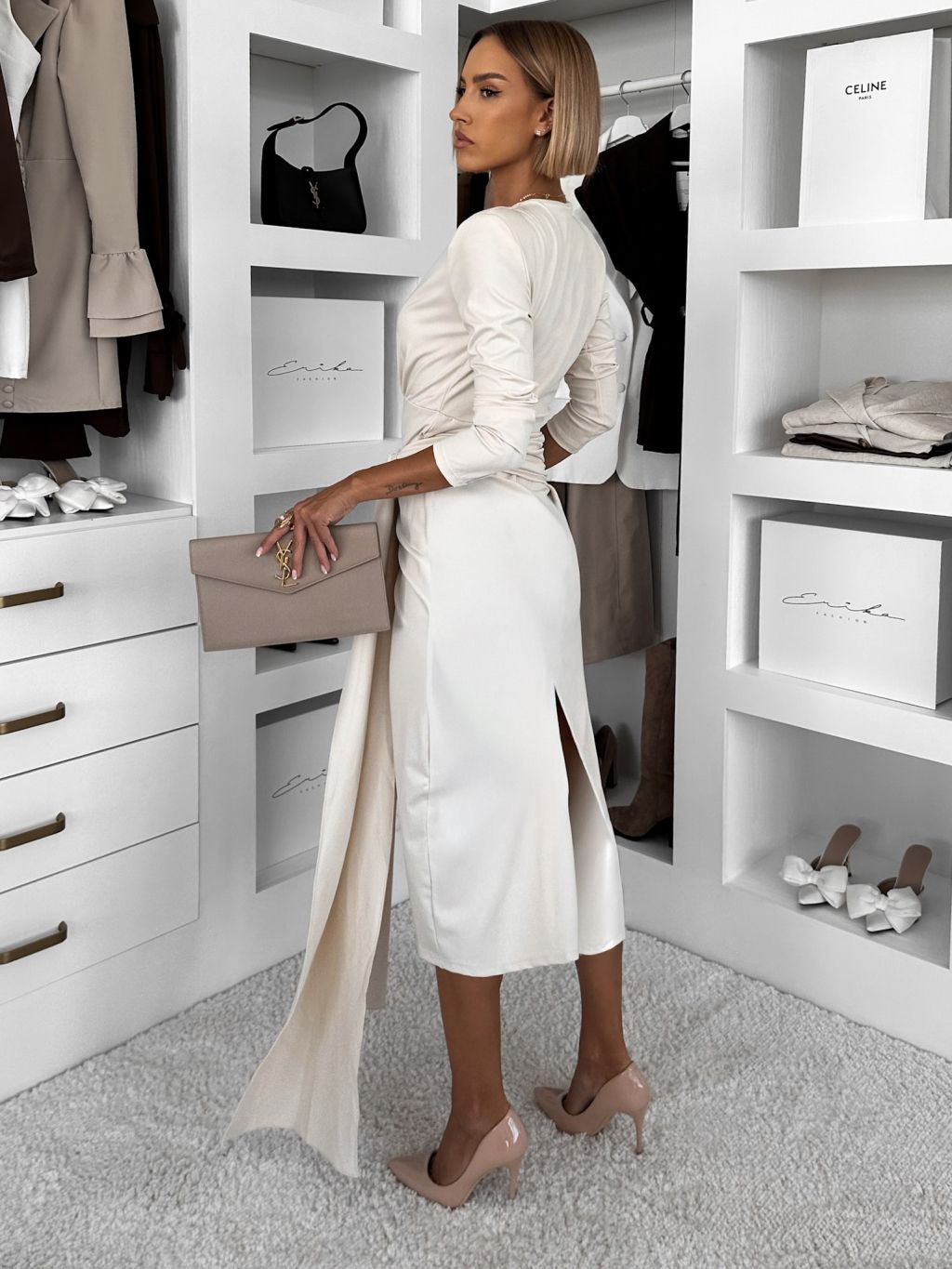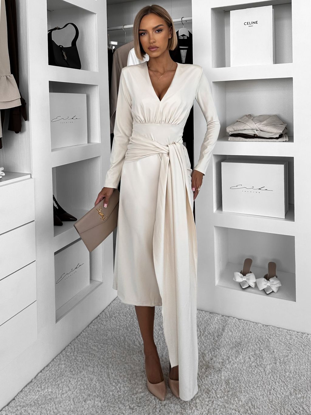 Béžové dlhé spoločenské šaty AUTIS so zaväzovaním