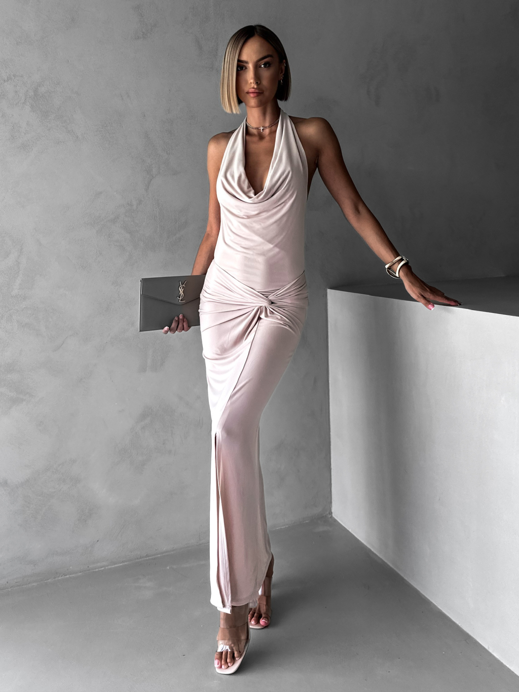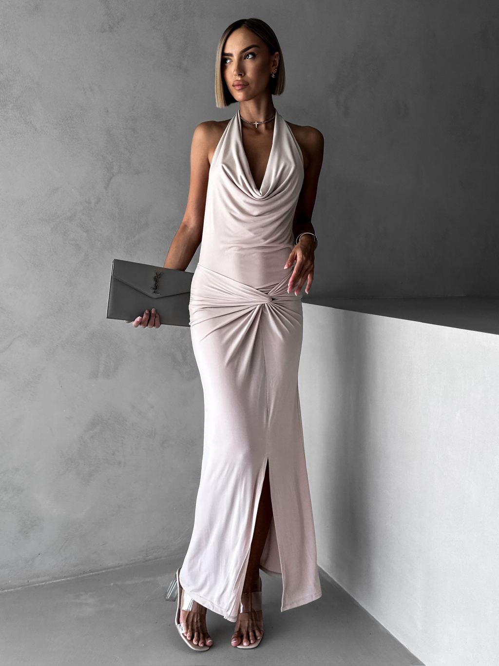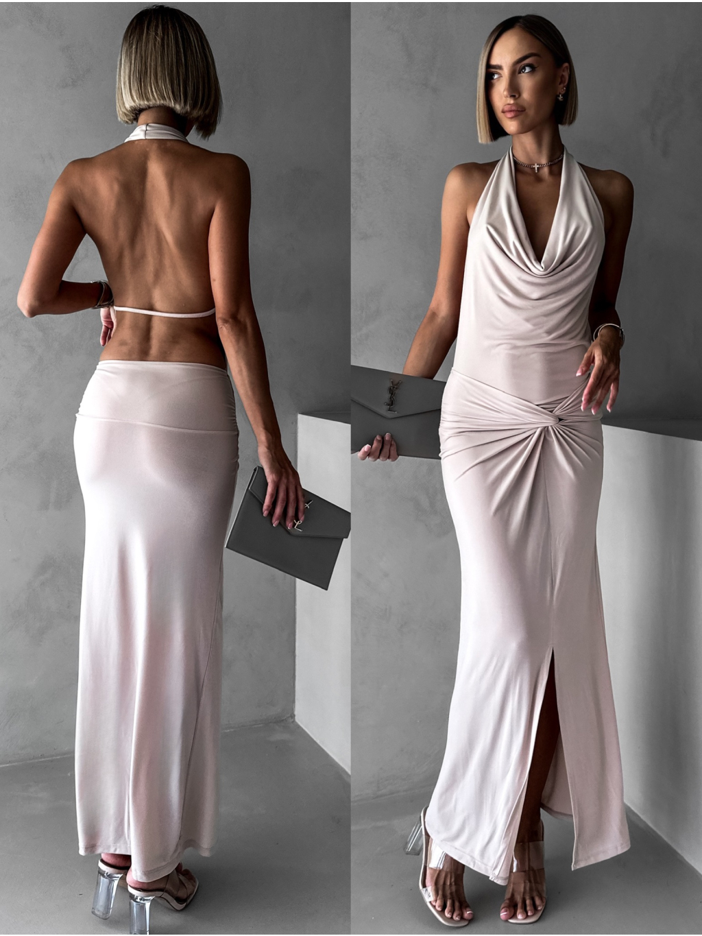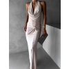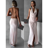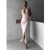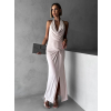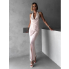 Béžové elegantné šaty RHIANY s odhaleným chrbtom