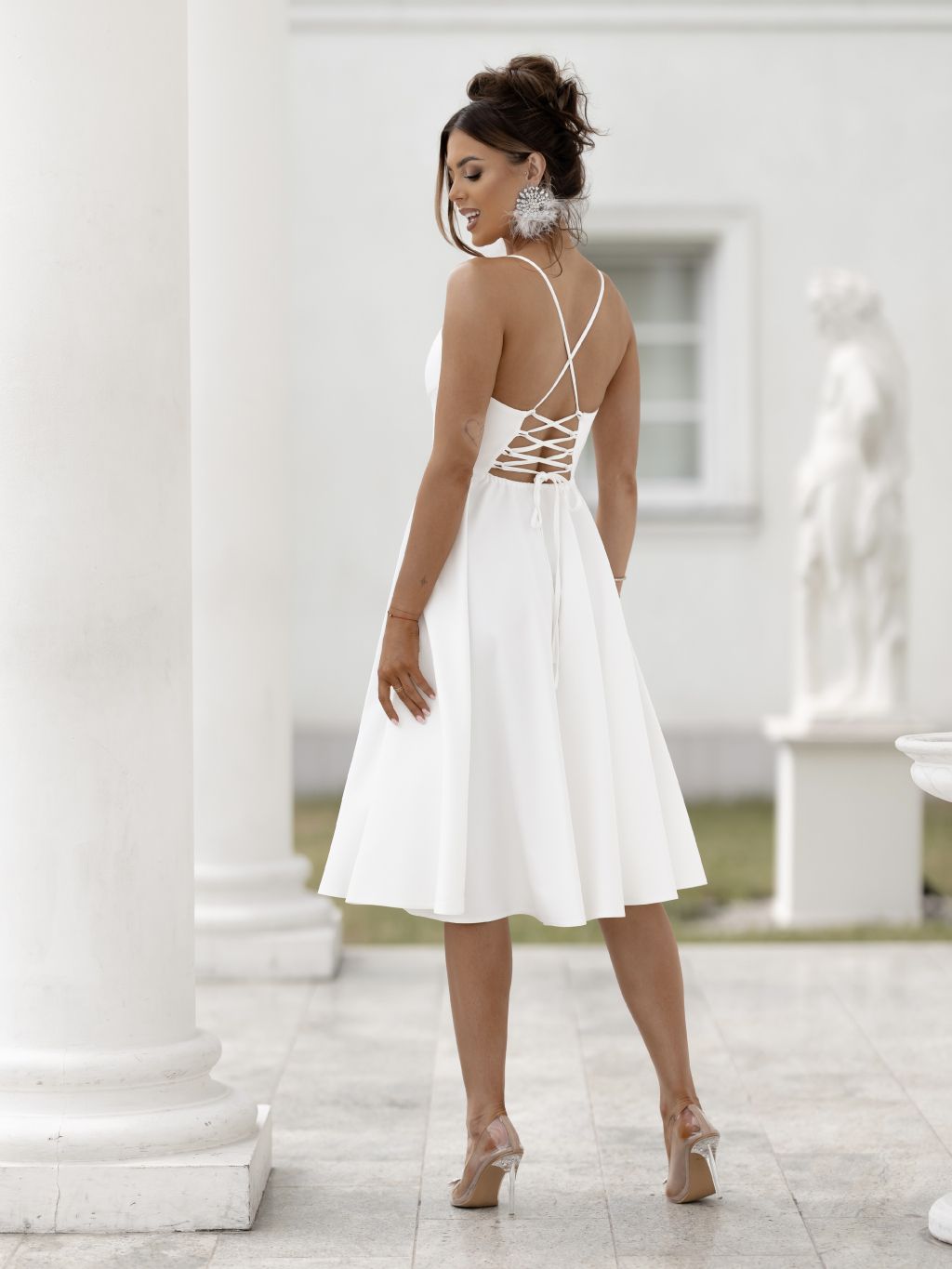 Biele elegantné áčkové spoločenské midi šaty VALENYA