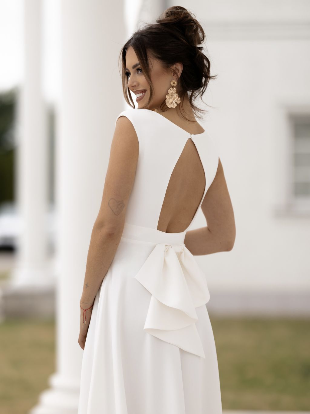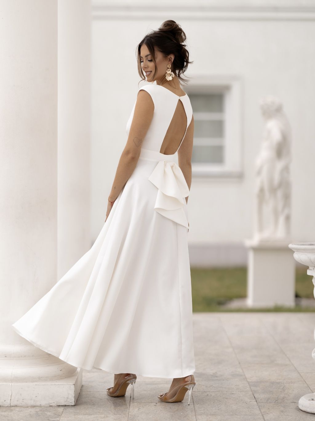 Biele elegantné spoločenské dlhé šaty ELAYA