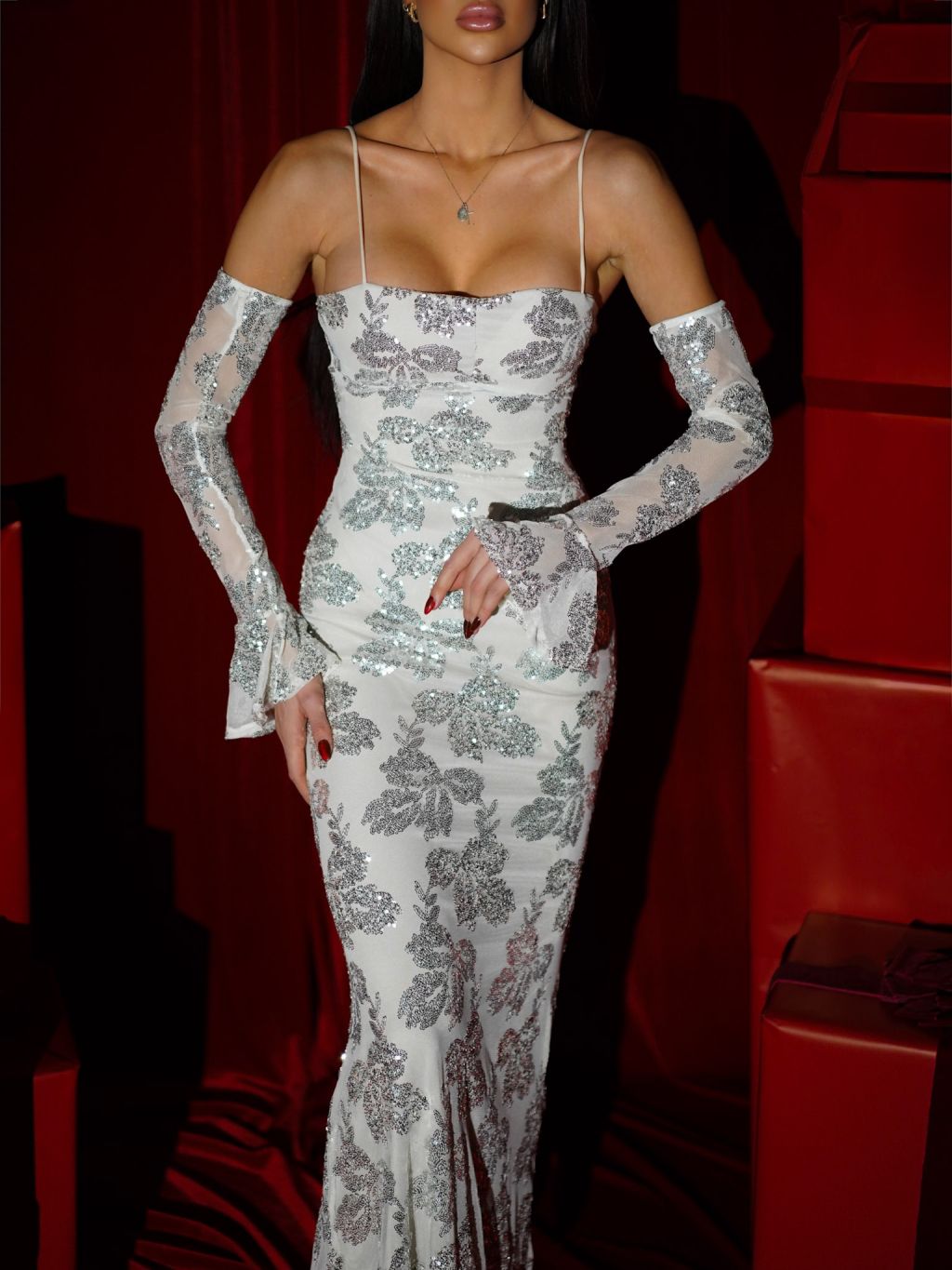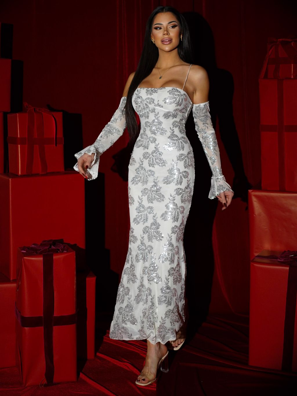 Biele elegantné trblietavé spoločenské šaty LARKINO